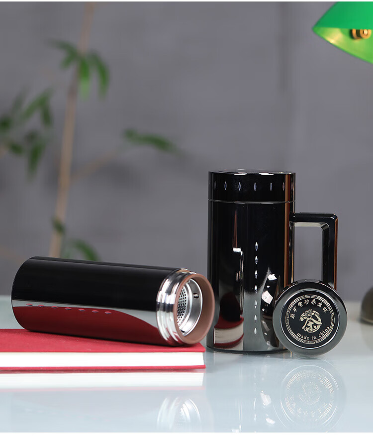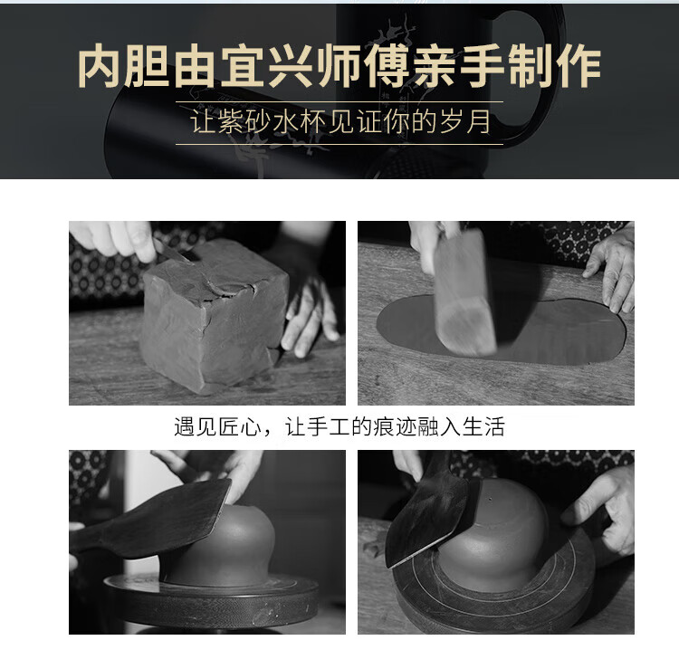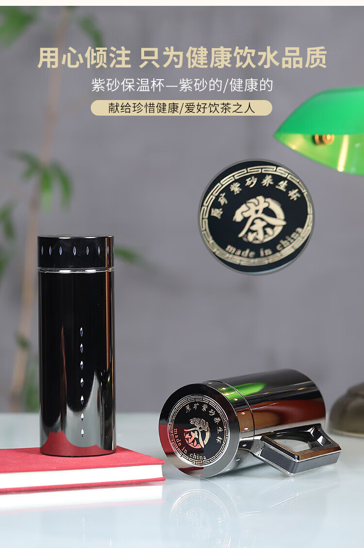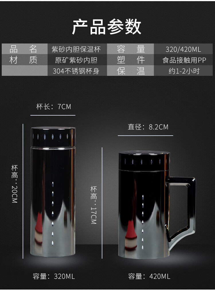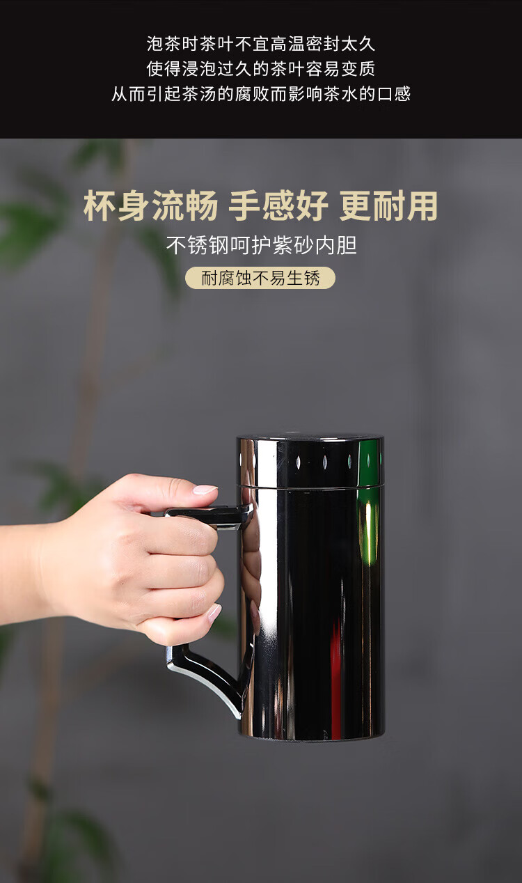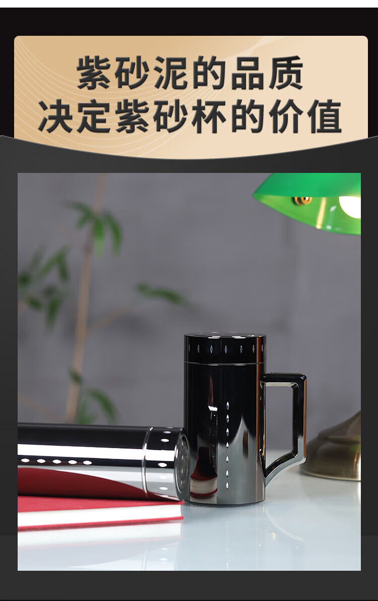 檀轩阁紫砂茶杯保温杯男士款高档紫砂杯送父亲老师礼品水杯定制LOGO刻字 钛金色手把杯(皮盒装)420ml