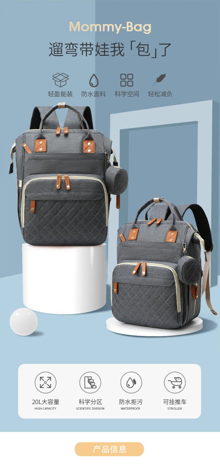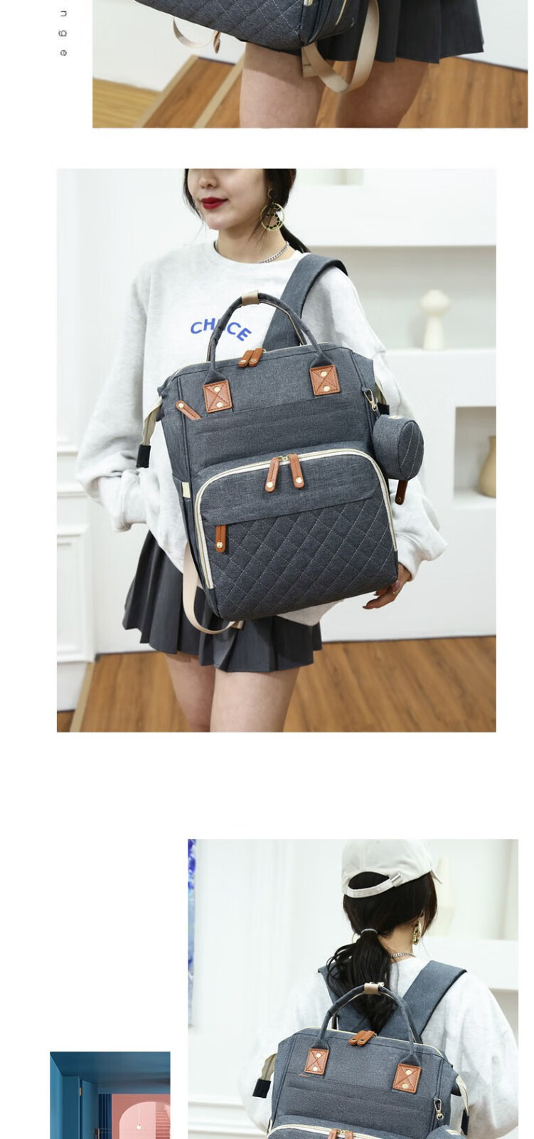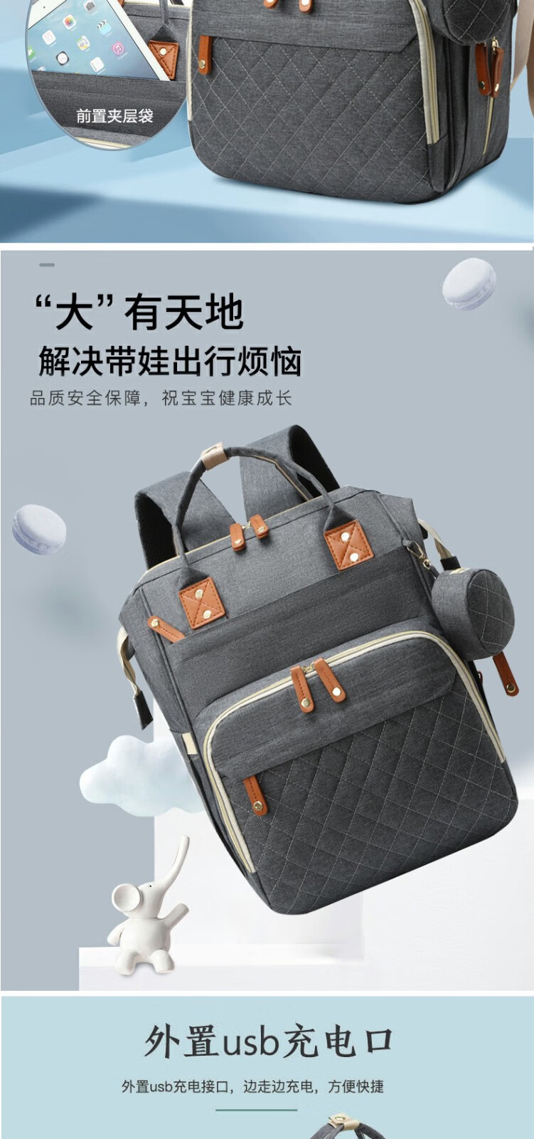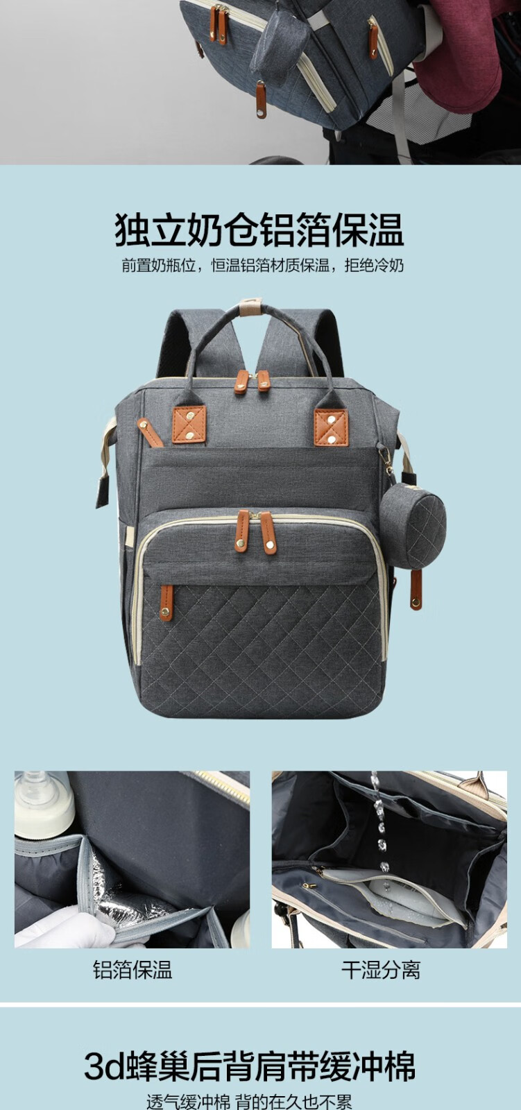 Bangboshi Large Capacity Mummy Bag Multifunctional Portable Mother's Storage Backpack Bottle Diaper Compartment USB Charging Port Large Capacity Mummy Bag Dark Gray