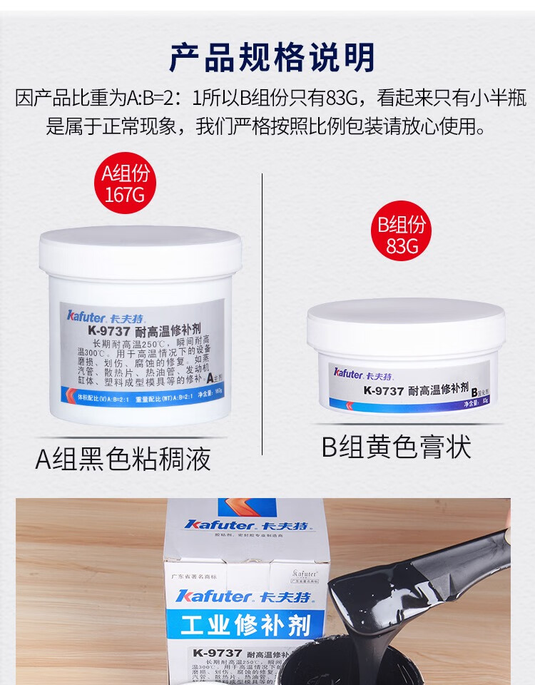 卡夫特k-9737工业修补剂粘发动专用胶水高强度金属铸铁钢质模具缸体裂缝
