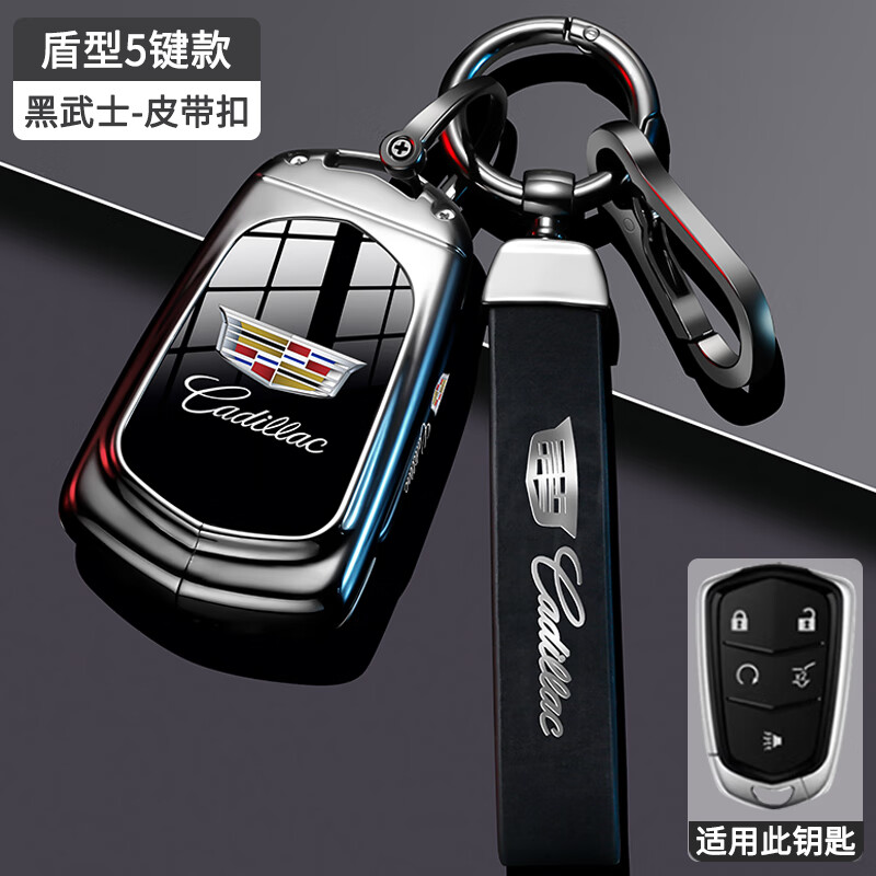 FHAO2023 Cadillac CT5 funda para llave xt5 xt4 atsl xt6 ct6 xts hebilla de carcasa de coche bolso para hombres y mujeres pistola de hoja estilo C cuero negro + hebilla de cuerda de mano con logotipo de coche