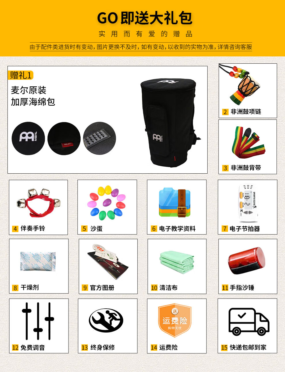 MEINL非洲鼓实木 德国麦尔羊皮专业手鼓乐器成人初学者PVC印尼鼓 12英寸ADJ2-L金石之声