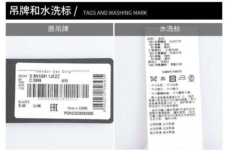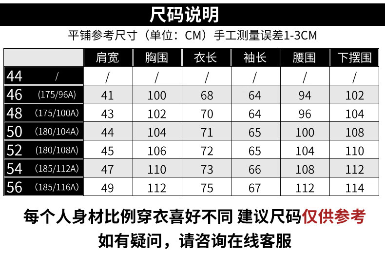 China (cm) 165 / 88-90 170 / 96-98 175 / 108-110 180 / 118-122 185 / 126-130