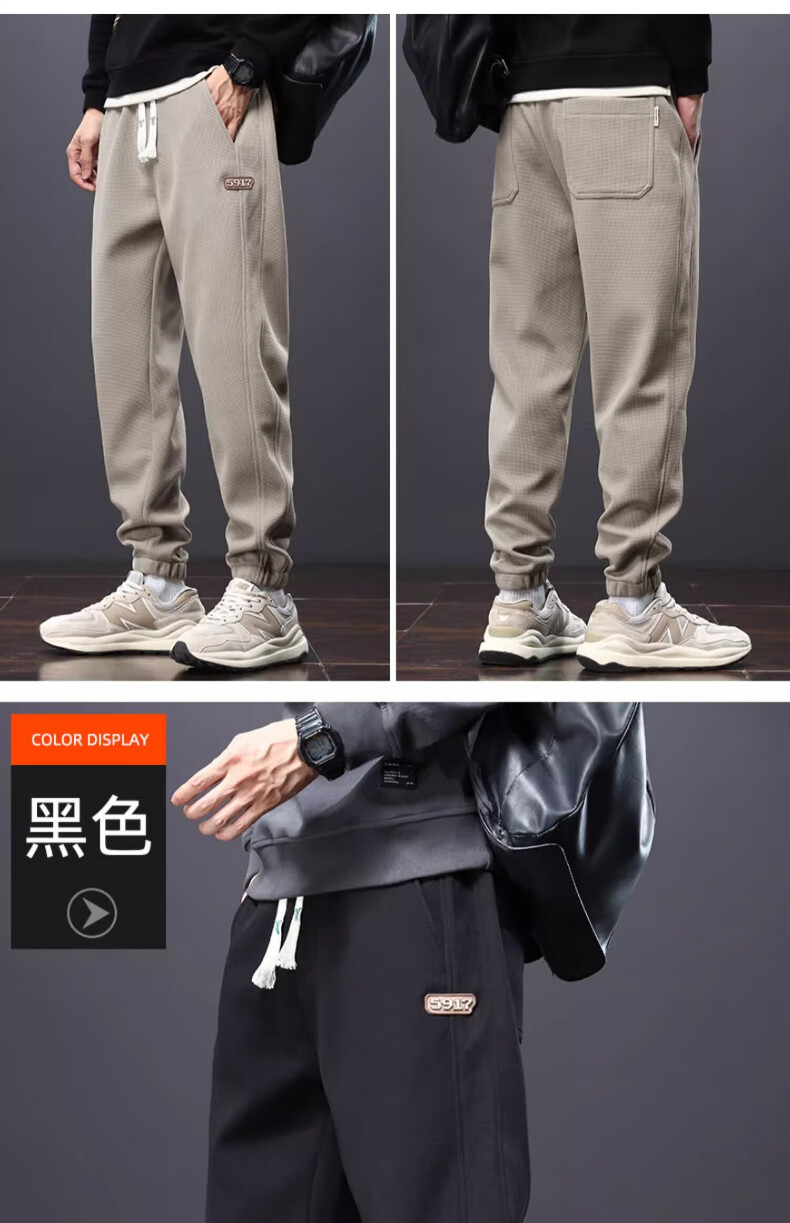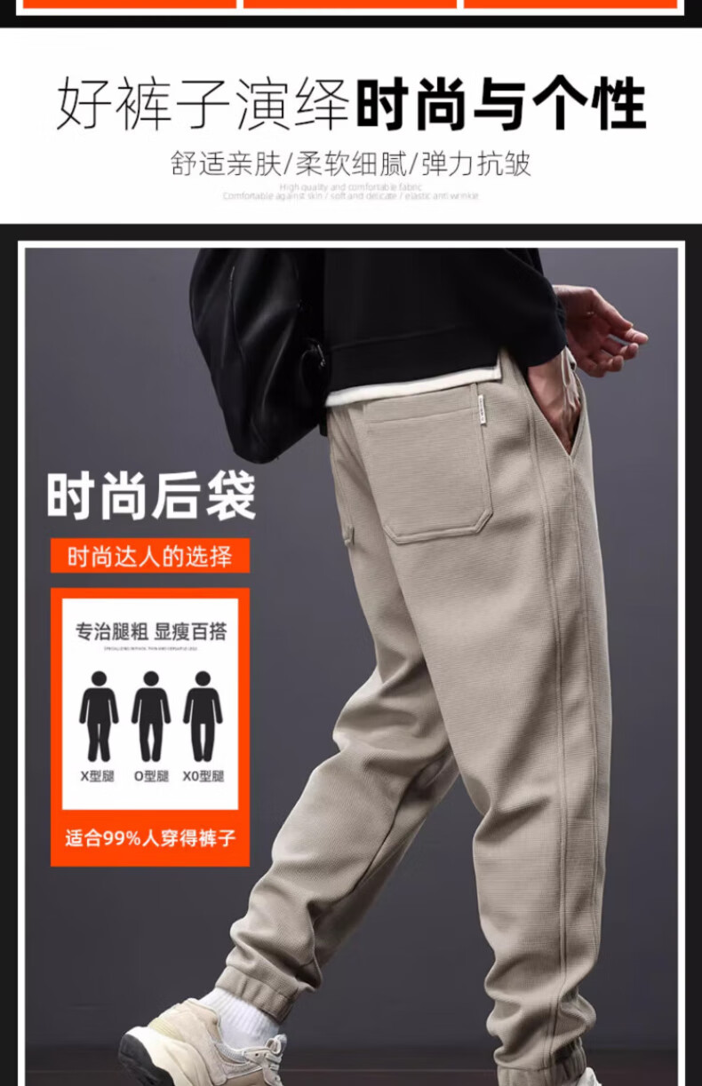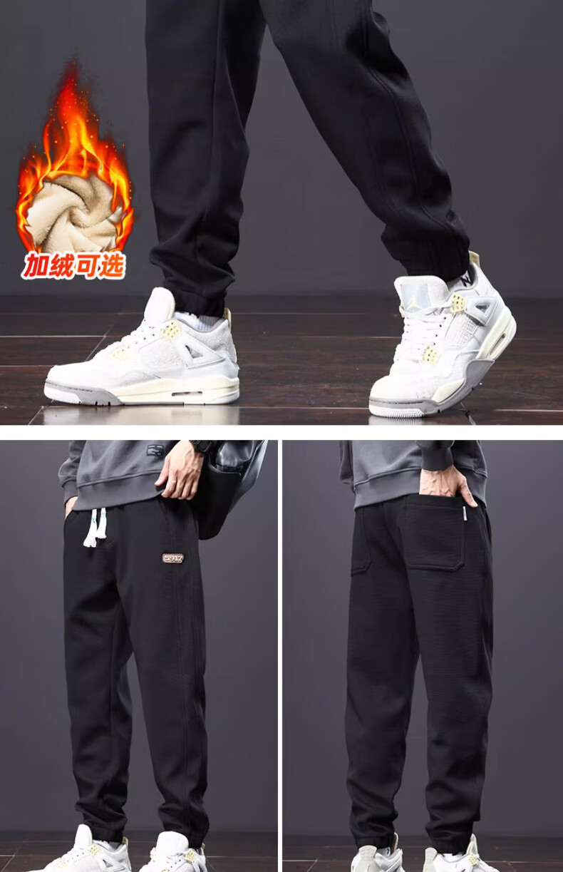 YOOOURTHING2025春秋新款宽松束脚运动卫裤男士男生秋冬加绒工装休闲裤男 黑色【单件装】 常规 XL 【115-130斤】