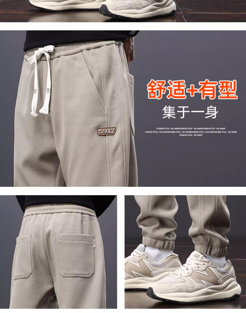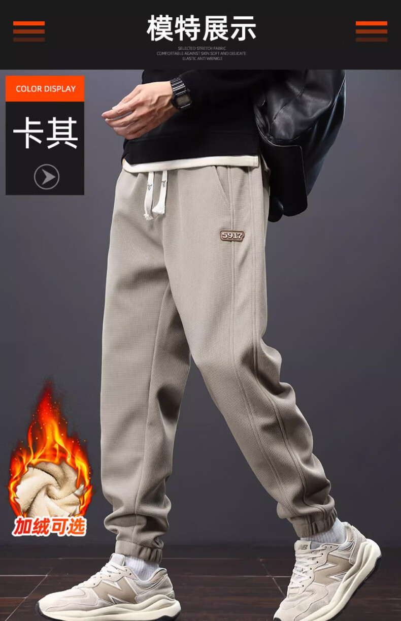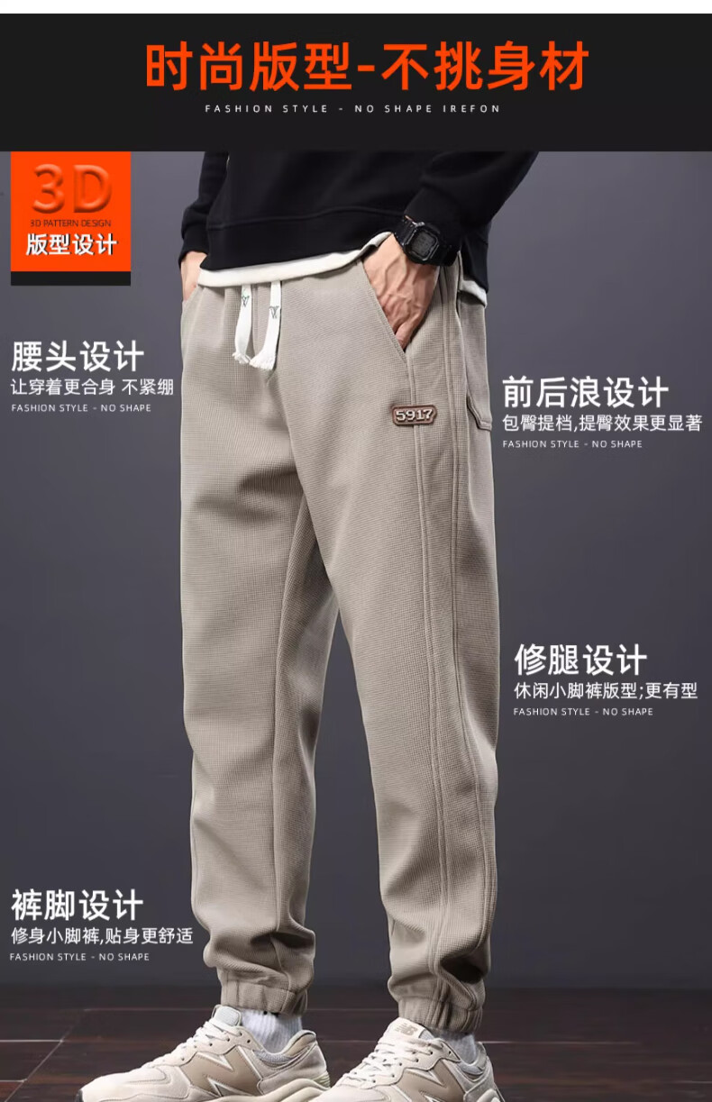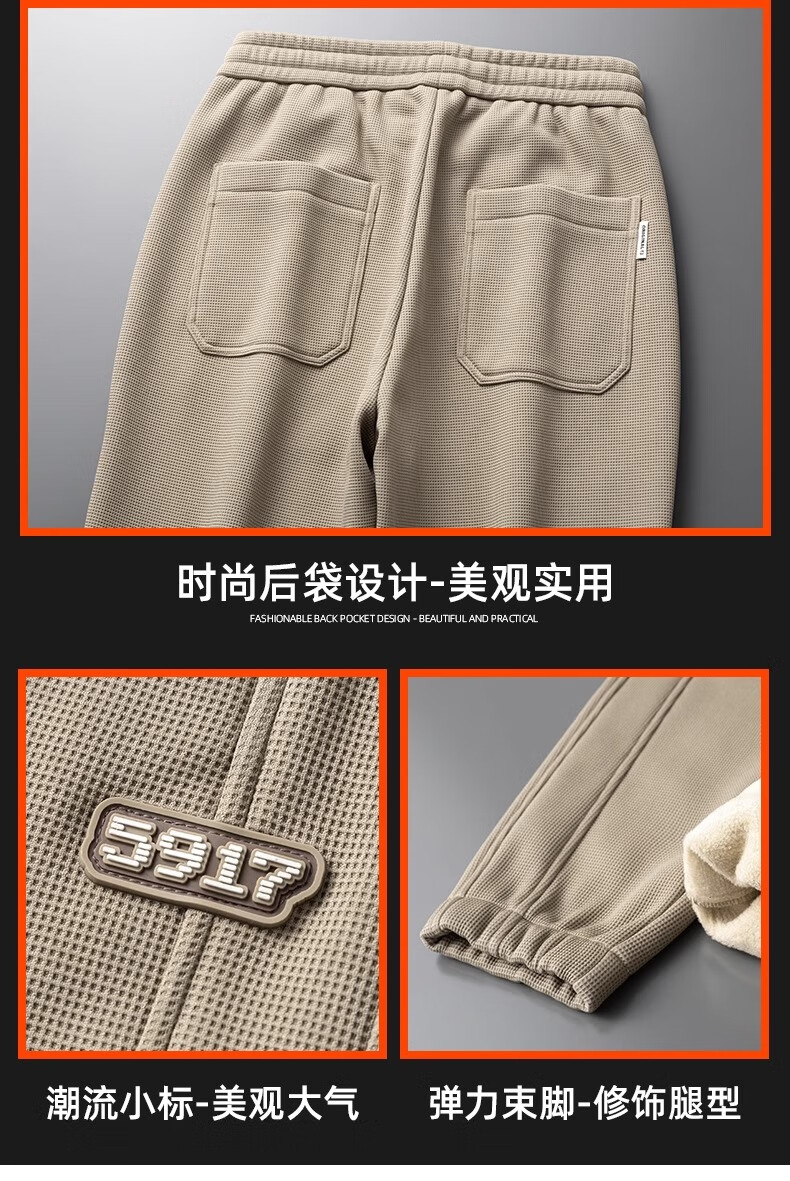 YOOOURTHING2025春秋新款宽松束脚运动卫裤男士男生秋冬加绒工装休闲裤男 黑色【单件装】 常规 XL 【115-130斤】