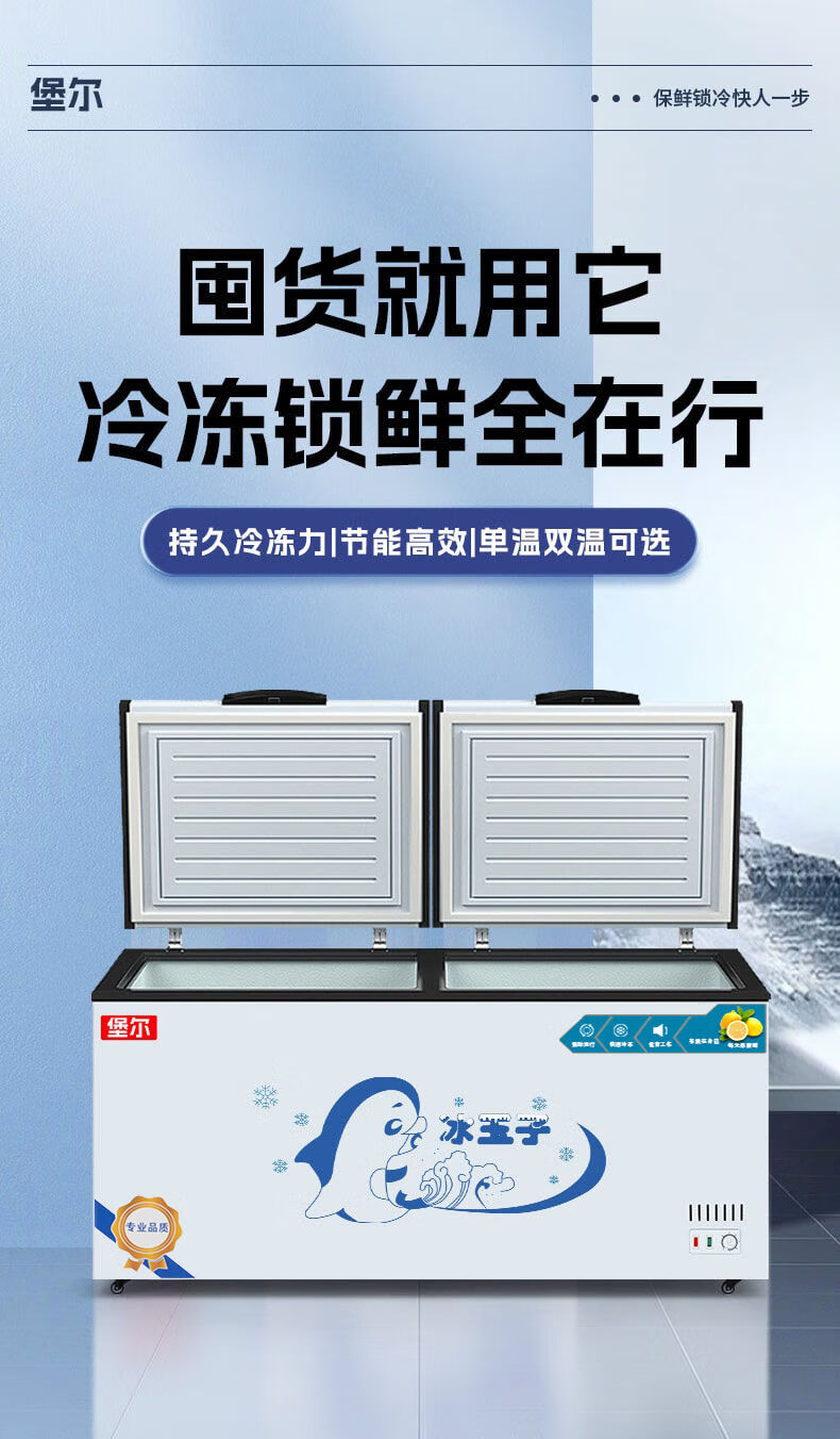 堡尔BAOER冰柜商用大容量全冷冻家用双温卧式冷柜展示柜家商两用囤货大冷柜 厨房餐饮后厨冷藏冷冻转换冰柜 728单温铜管/长1.43米×宽0.63米
