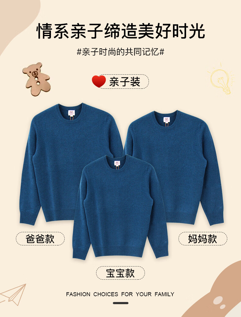 鹿王【宠粉福利】羊绒衫圆领针织套头打底纯色毛衣保暖男女亲子同款 粉色 L 170/88A
