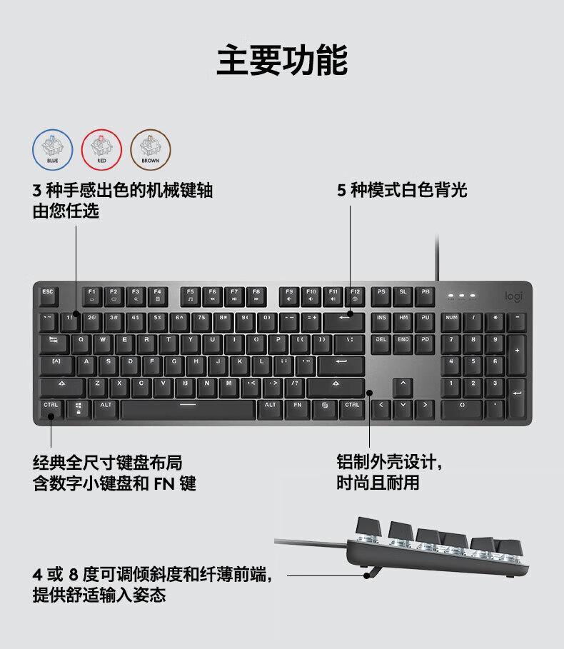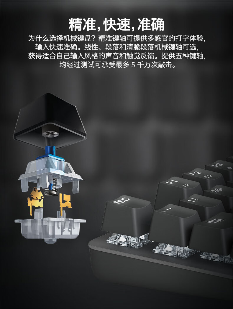罗技(Logitech)K845机械键盘游戏电竞有线键盘电脑办公键盘个性定制键帽版送男生女友礼物新年圣诞礼物 K845英雄联盟金克丝限定版 红轴
