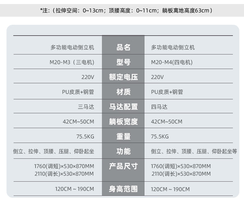 杰森(LEDONG)电动倒立机家用 倒挂器倒吊器颈腰椎牵引拉伸器 室内运动健身器材 M20-M4配四电机