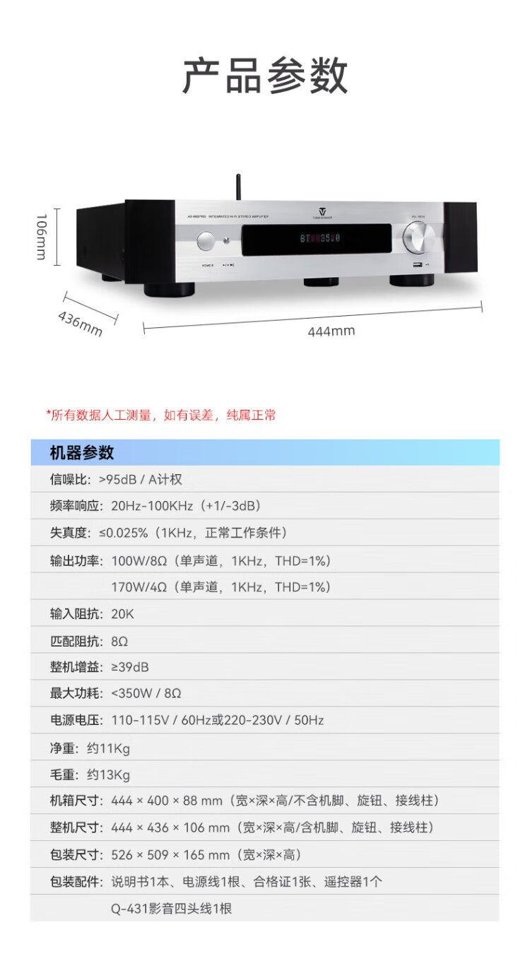 天逸(Winner)AD-66DPRO超甲类合并一体机数字功放机大功率发烧级家用高保真hifi功放音响套装 AD-66DPRO+达尼博睿3