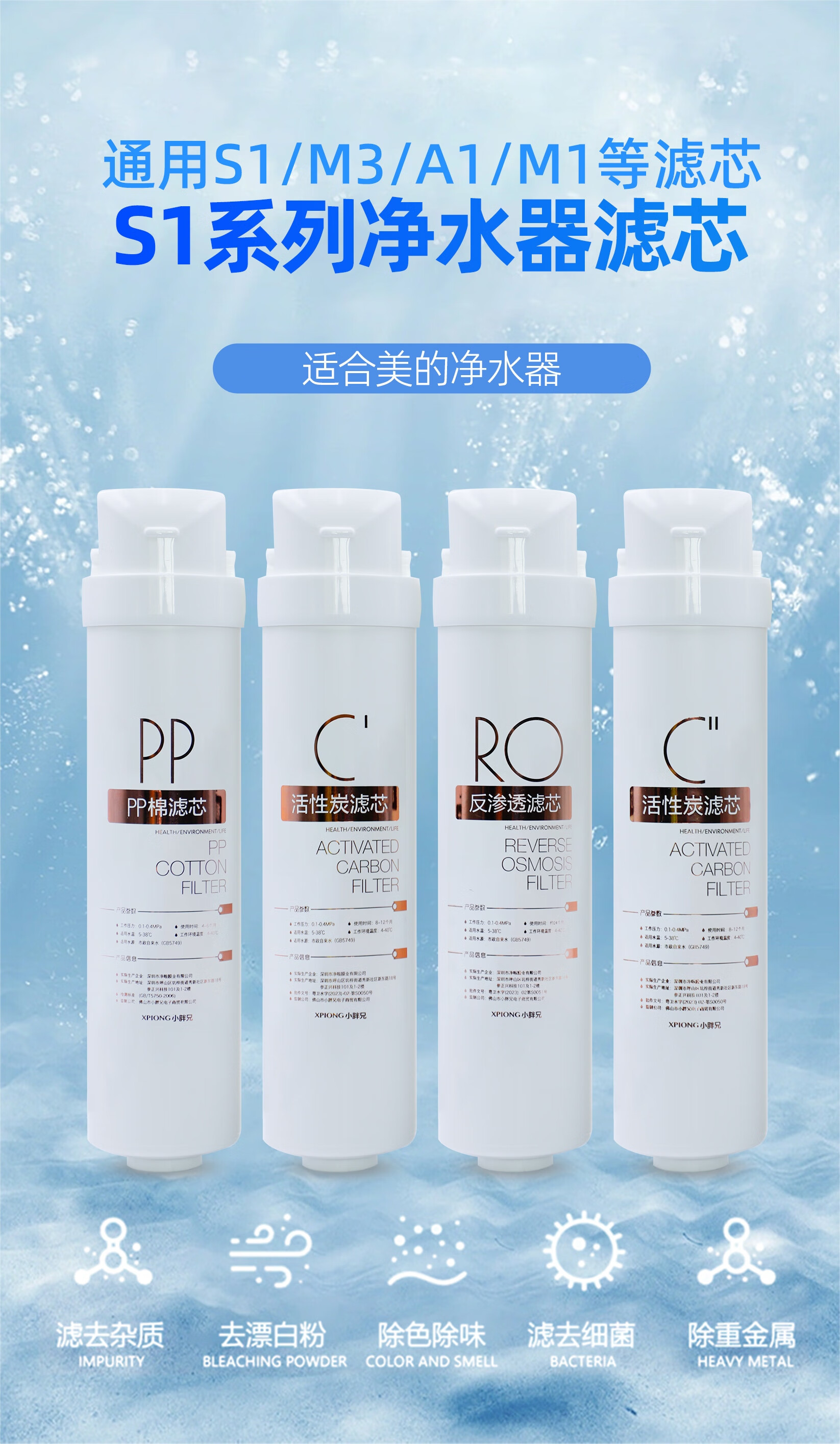 适用美的S1滤芯pac通用M3净水器MRC1790A/215/136/1593/1693/Y7 S1全套四支【215/1692/1693/1592