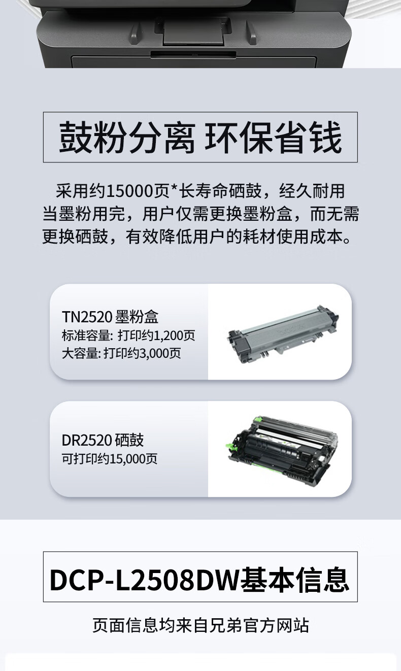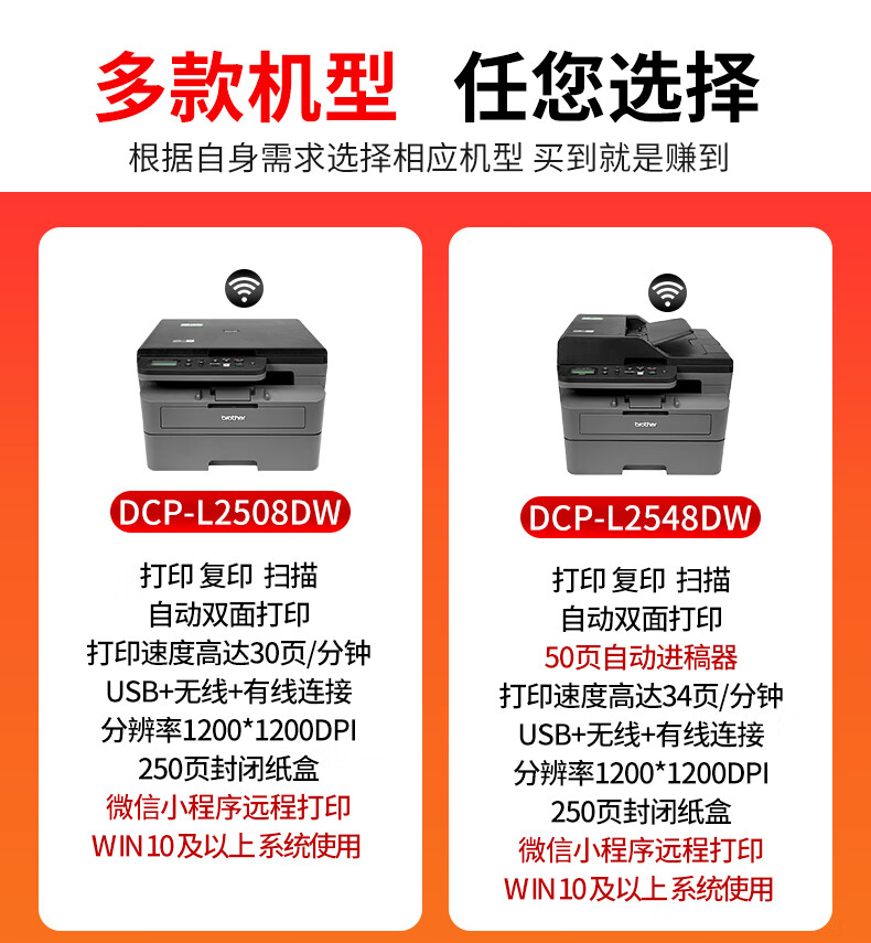 兄弟(brother)DCP-L2508DW/L2548DW黑白激光打印机一体机多功能复印扫描双打印面家用办公三合一作业打印机 L2548DW【双面打印+远程打印+连续复印扫描】 官方标配+品质易加粉粉盒1支+2瓶粉