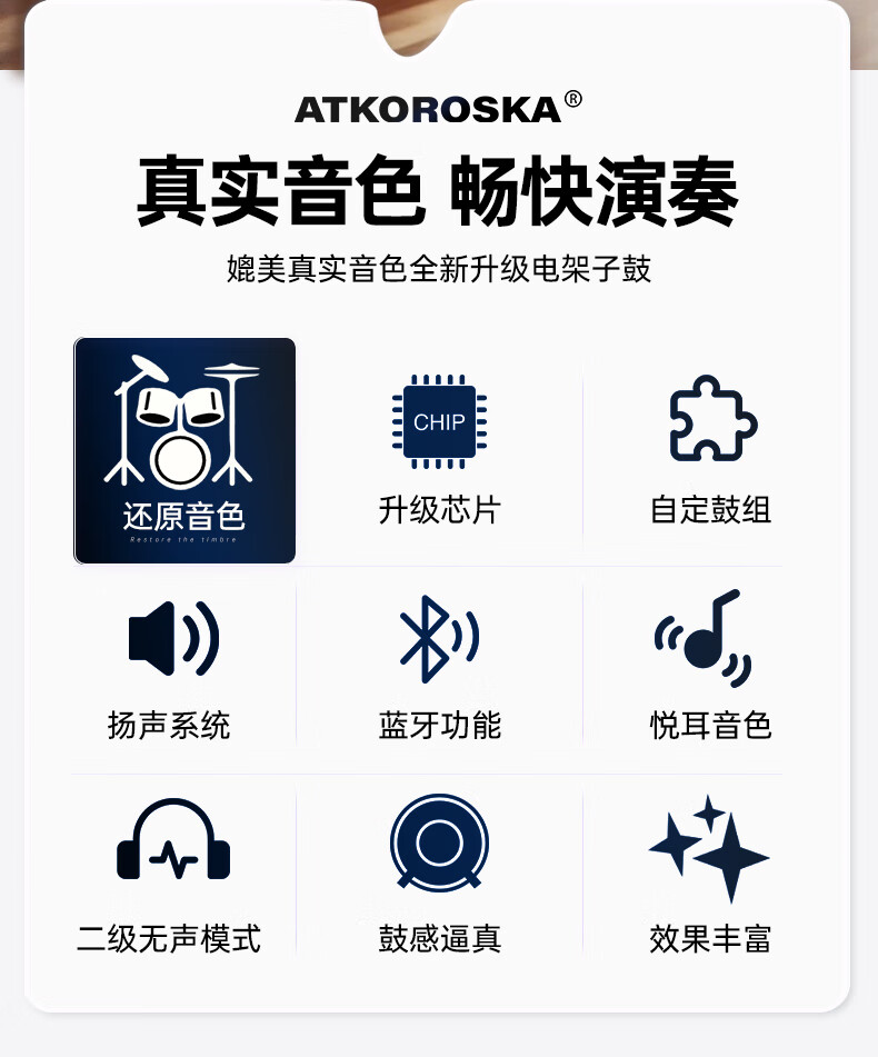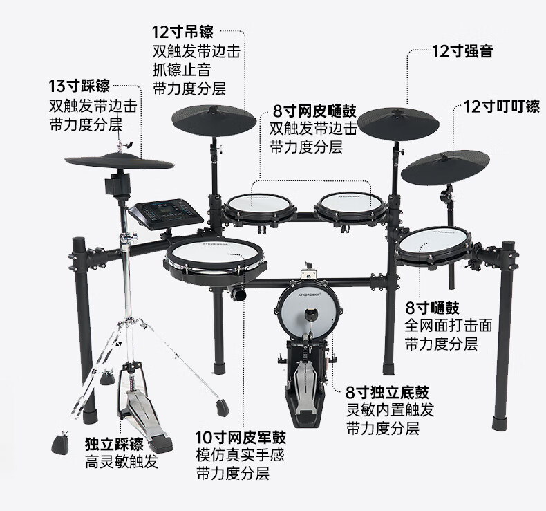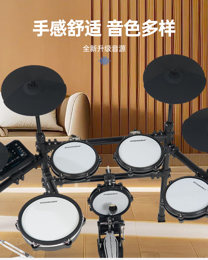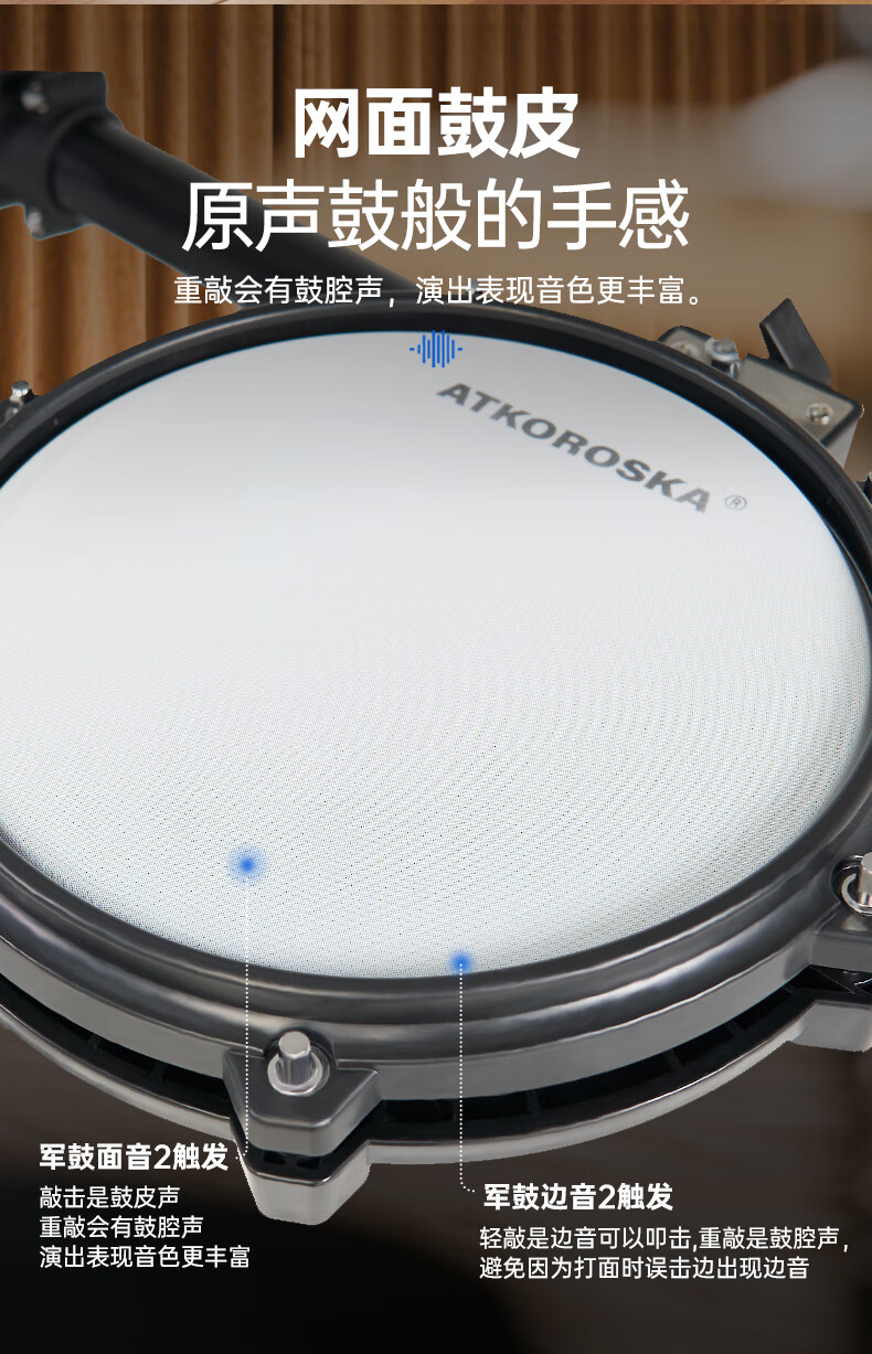 克罗恩顿(ATKOROSKA)电子鼓架子鼓成人法国音源家庭演奏专用儿童通用乐器 DK52五鼓三镲+joyo品牌音响