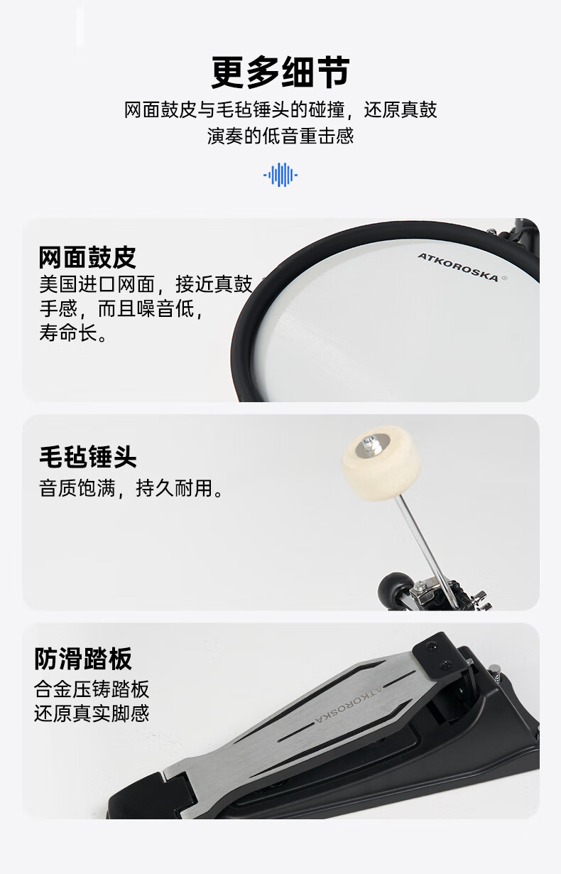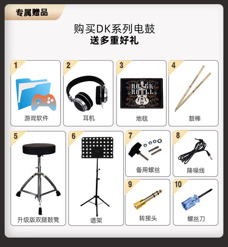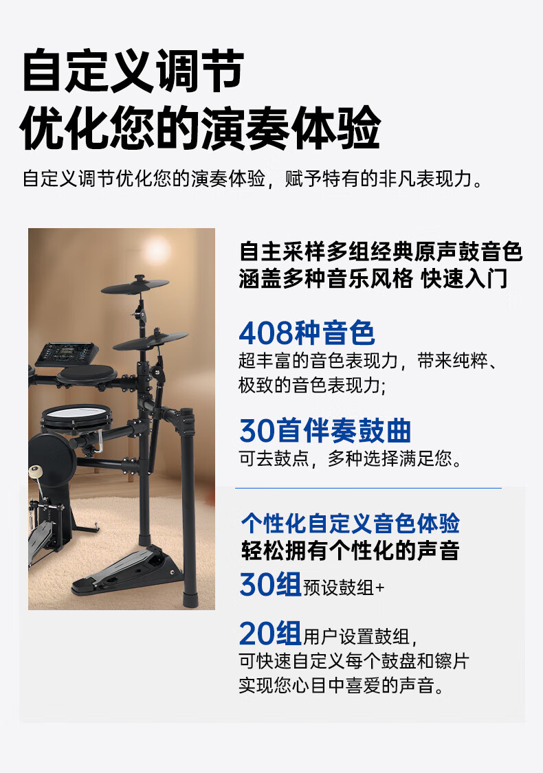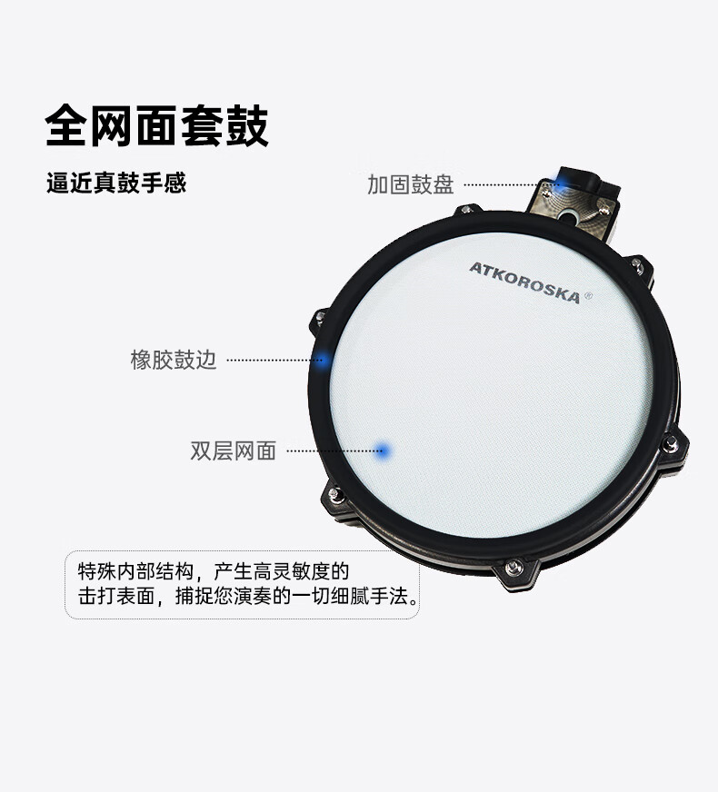 克罗恩顿(ATKOROSKA)电子鼓架子鼓成人法国音源家庭演奏专用儿童通用乐器 DK52五鼓三镲+joyo品牌音响