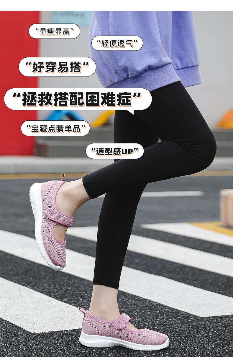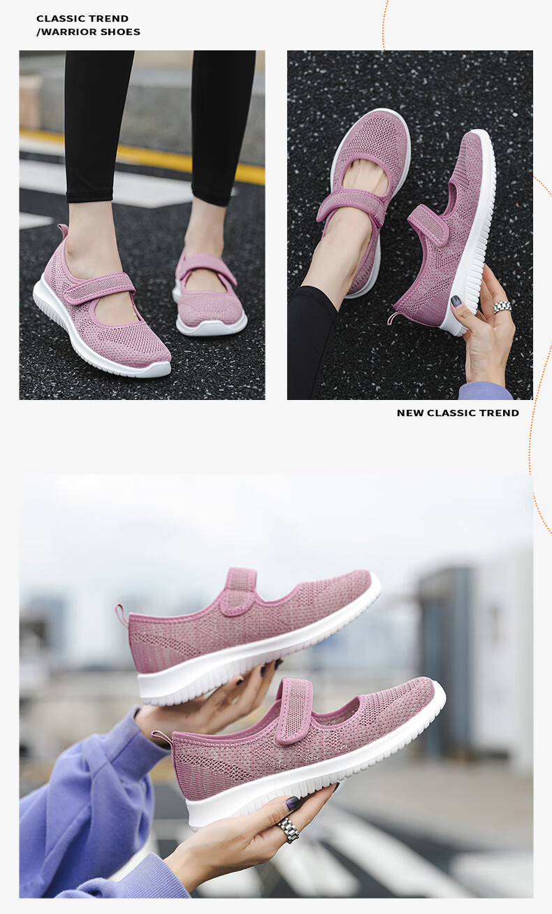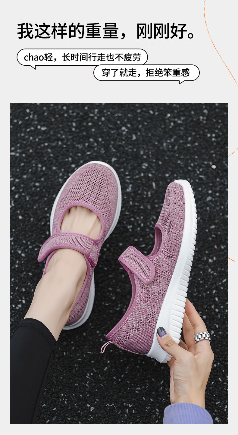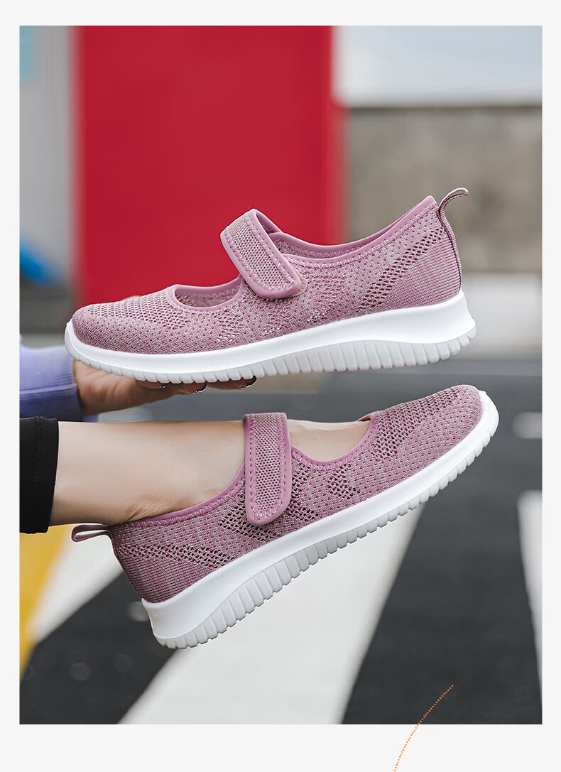 Zapatos de tela viejos de Beijing de malla transpirable de primavera y verano para mujeres de mediana edad y ancianas, zapatos cómodos para caminar para madres mayores, estilo velcro rosa 38