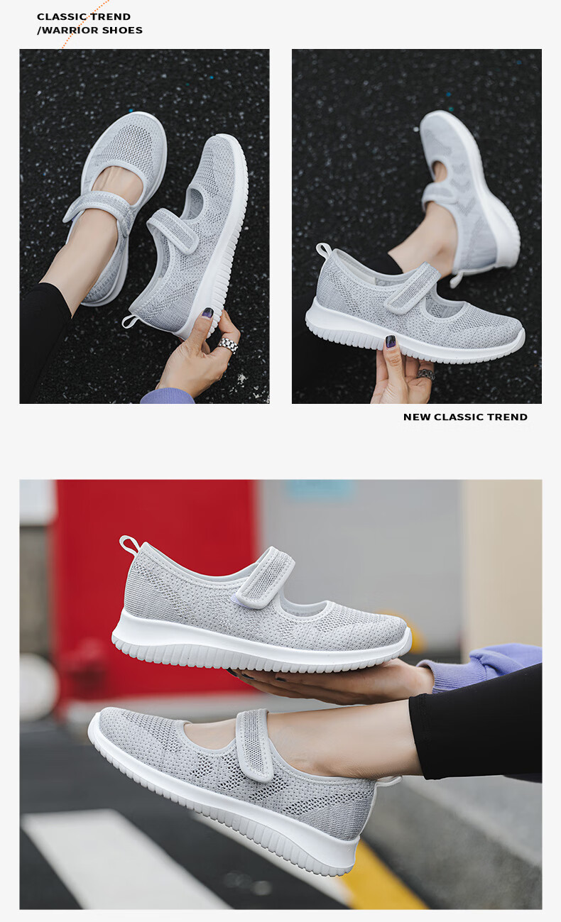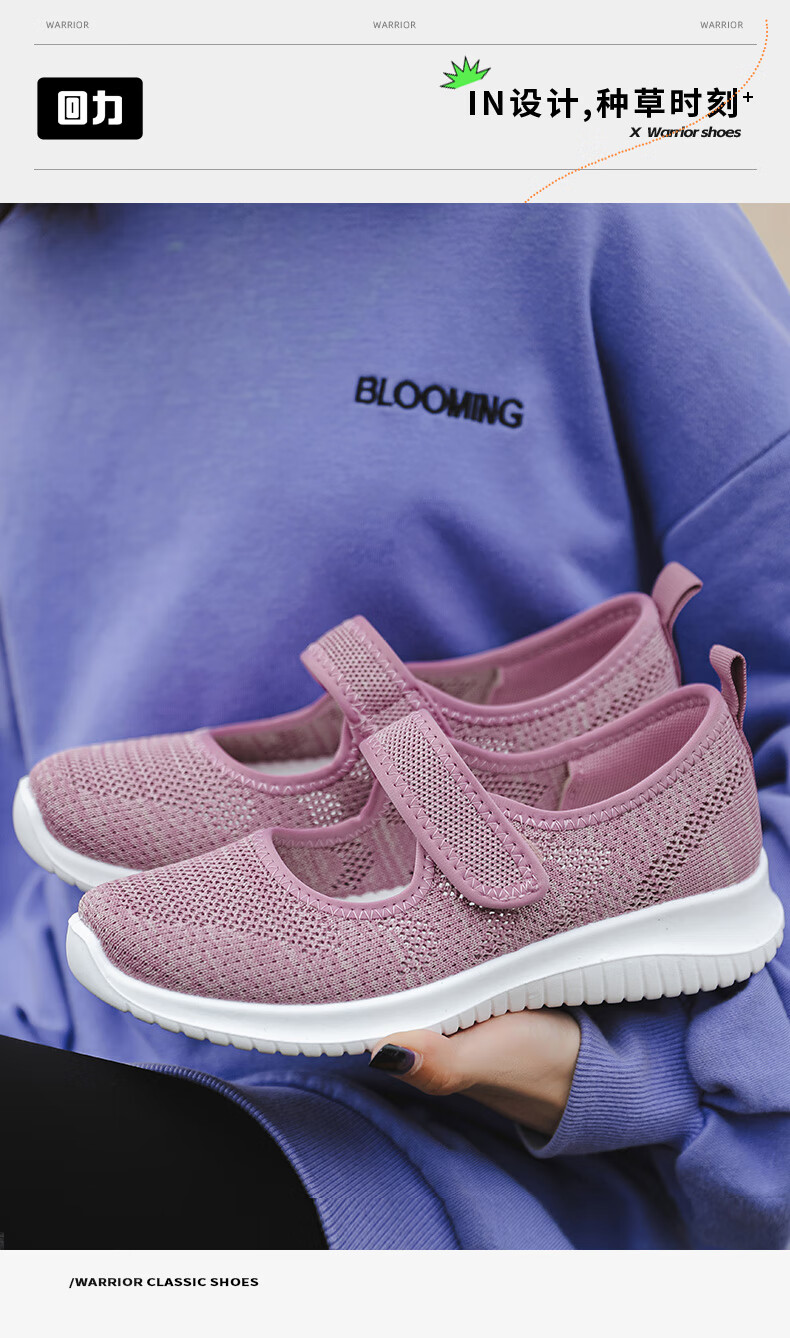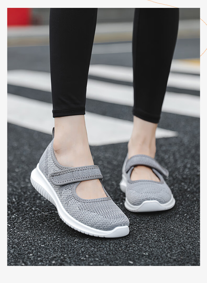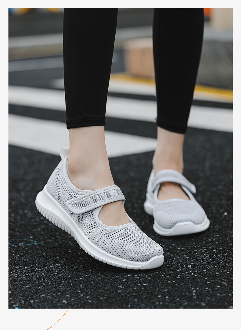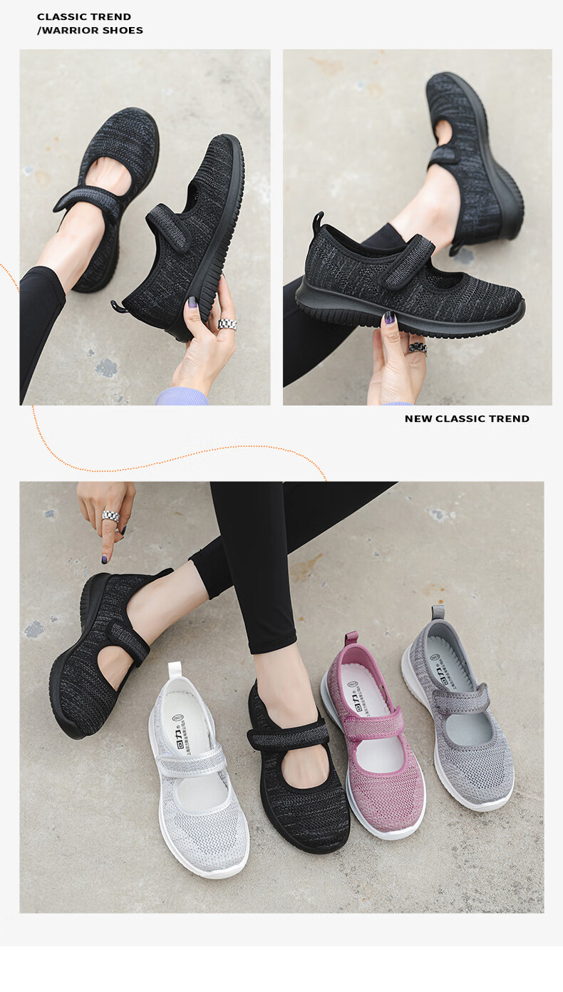 Zapatos de tela viejos de Beijing de malla transpirable de primavera y verano para mujeres de mediana edad y ancianas, zapatos cómodos para caminar para madres mayores, estilo velcro rosa 38