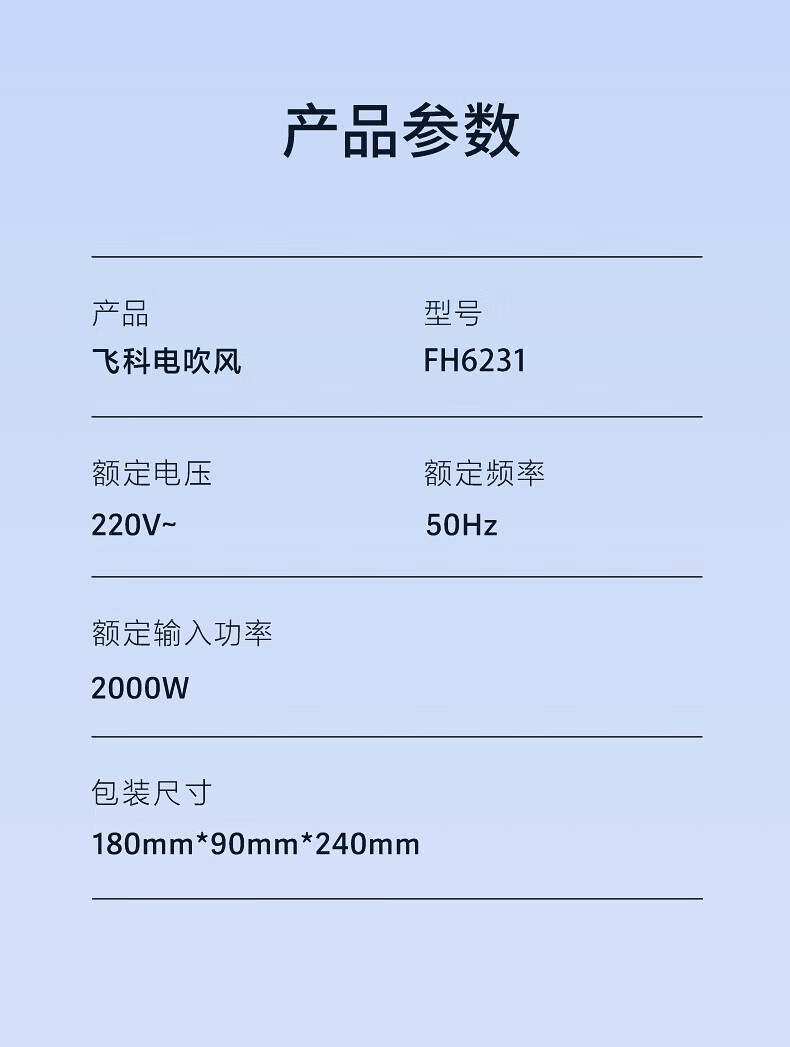 飞科(FLYCO)电吹风机家用宿舍大功率冷热负离子护发便携电吹风筒酒店用电风筒 飞科FH6296 1800W 带负离子