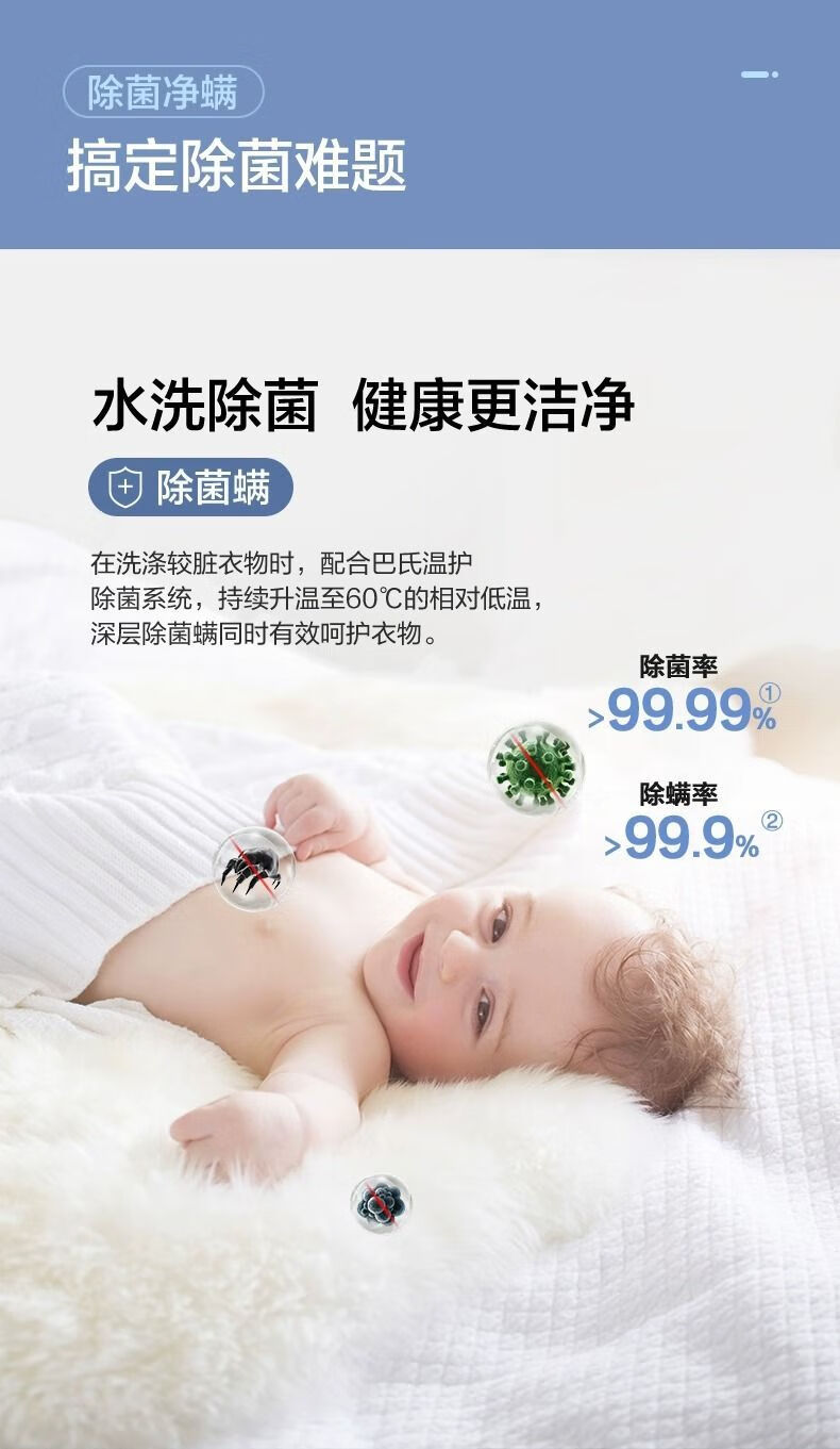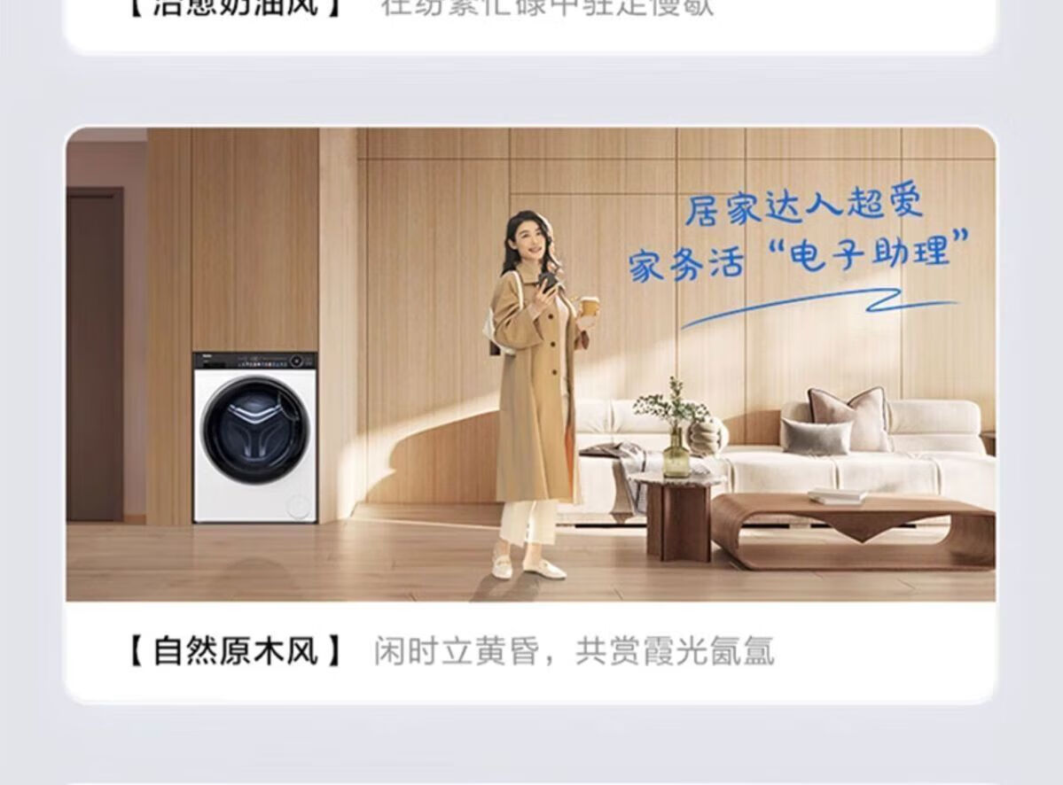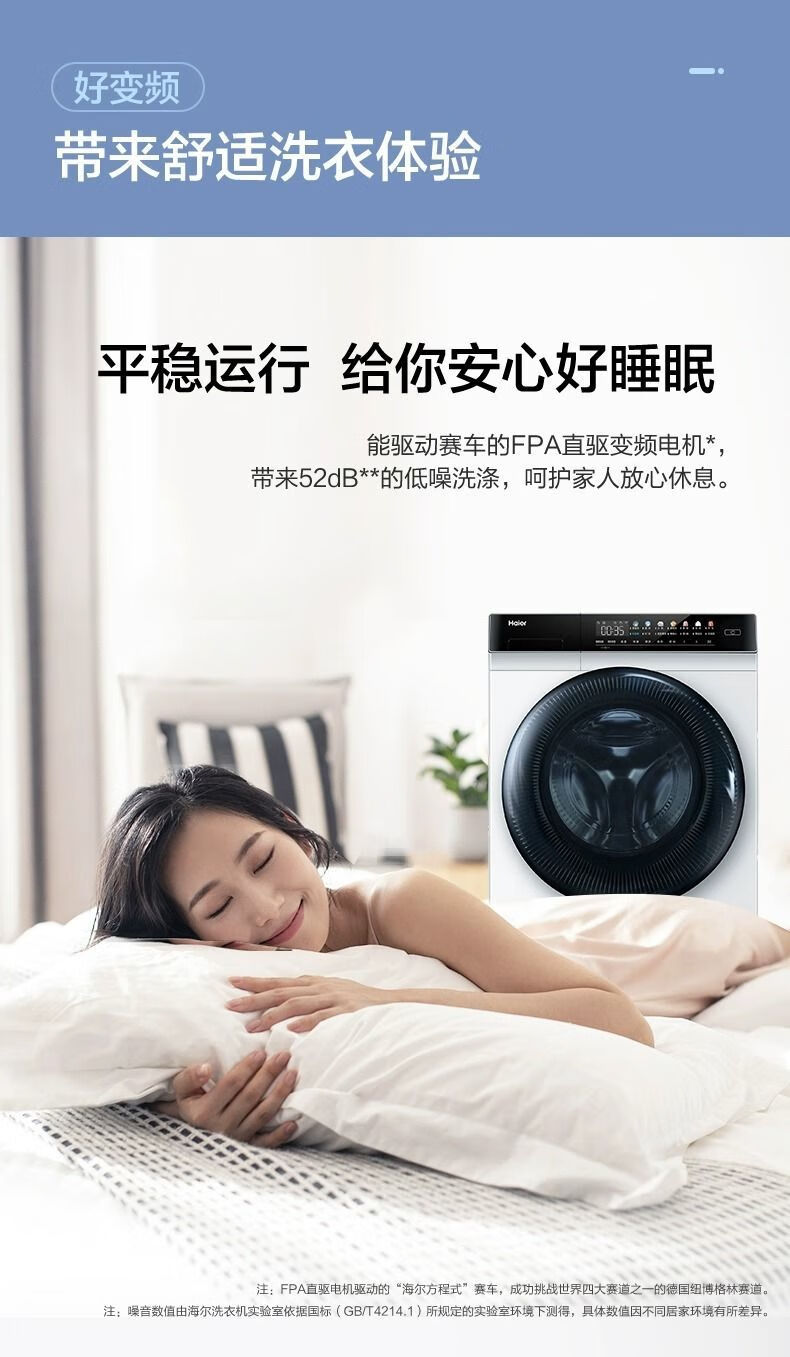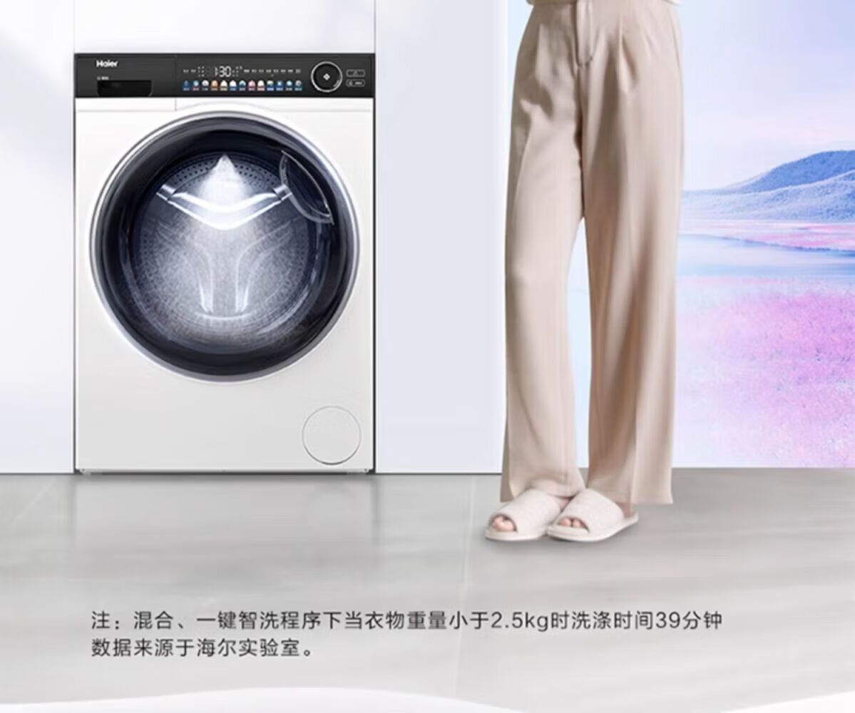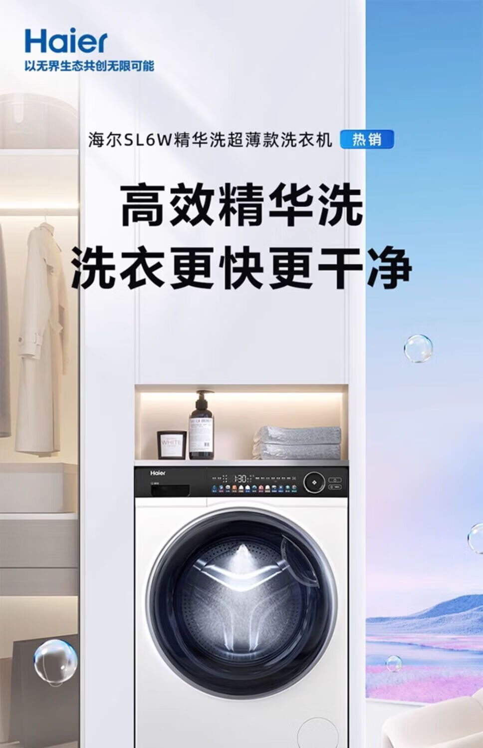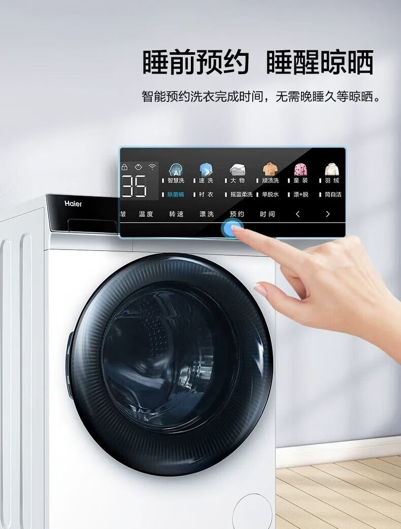 海尔超薄嵌入智能投放大筒径顽渍洗巴氏除菌螨防皱羊毛羽绒滚筒洗衣机 XQG100-B12176WU1 雪山白