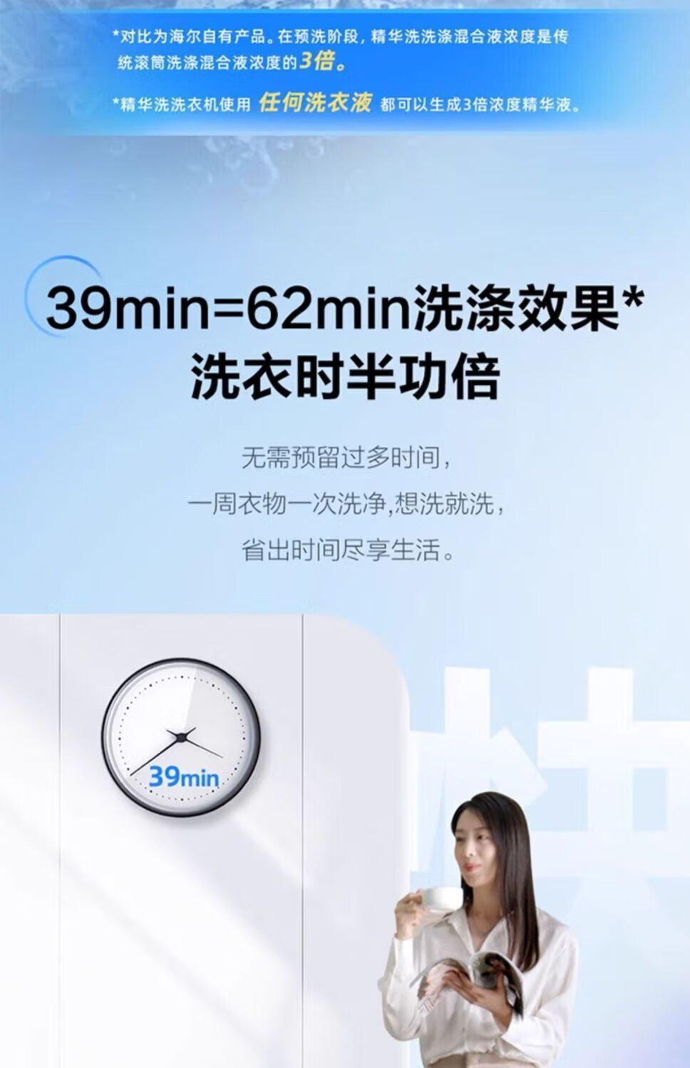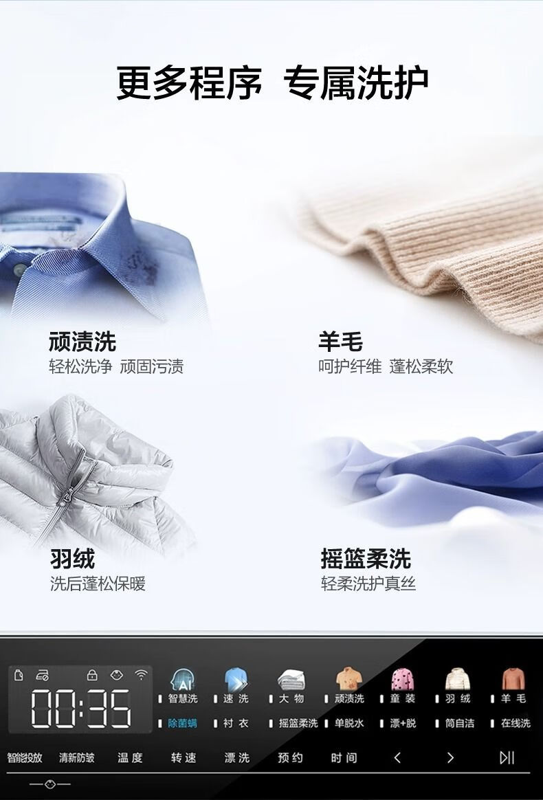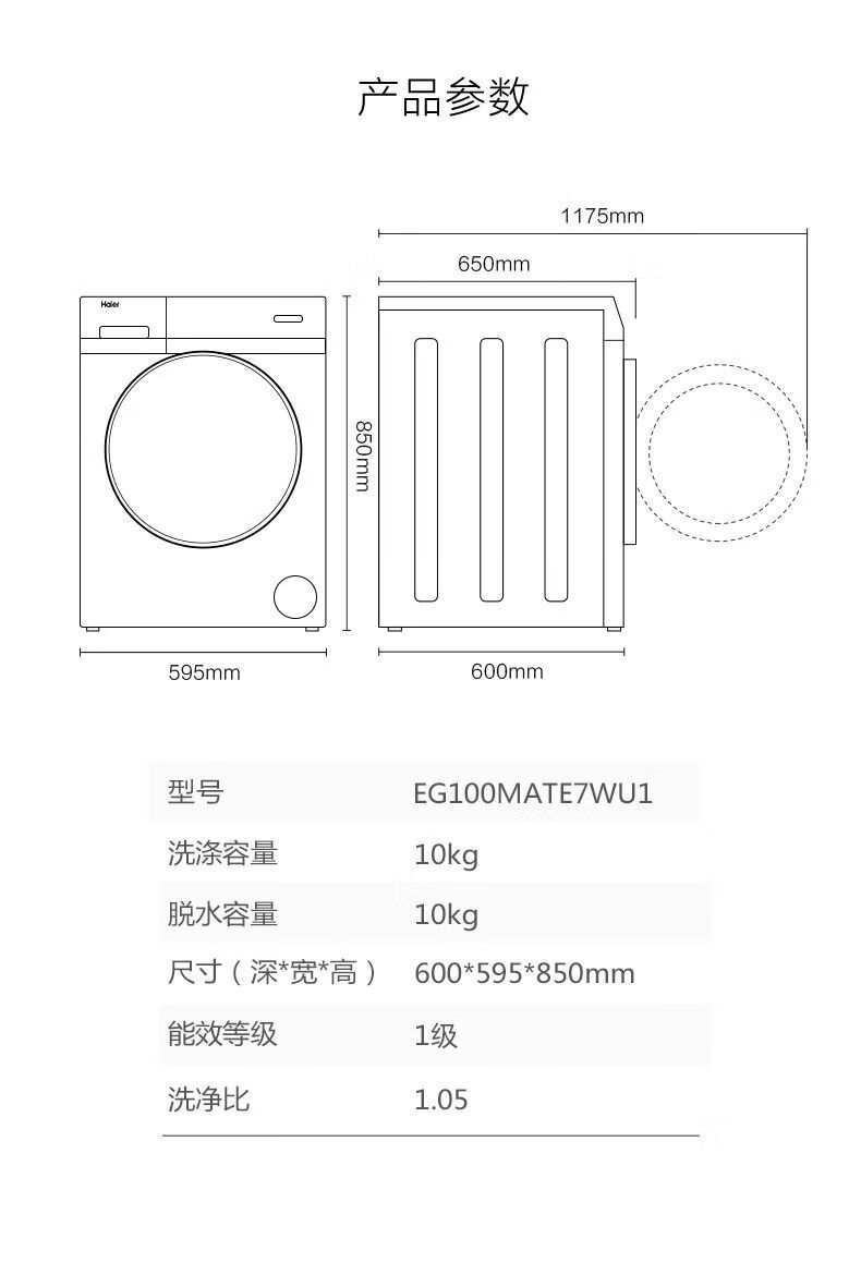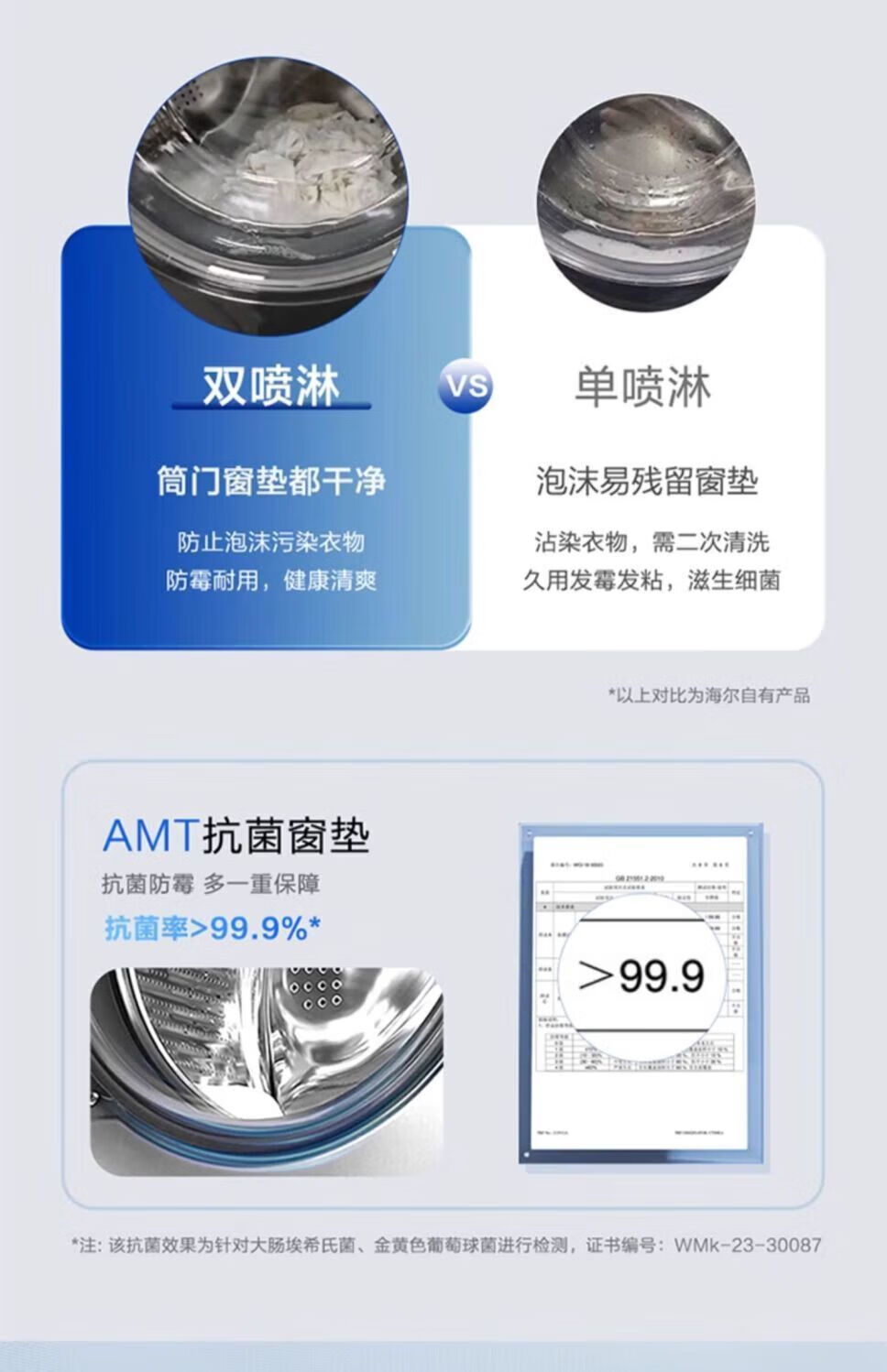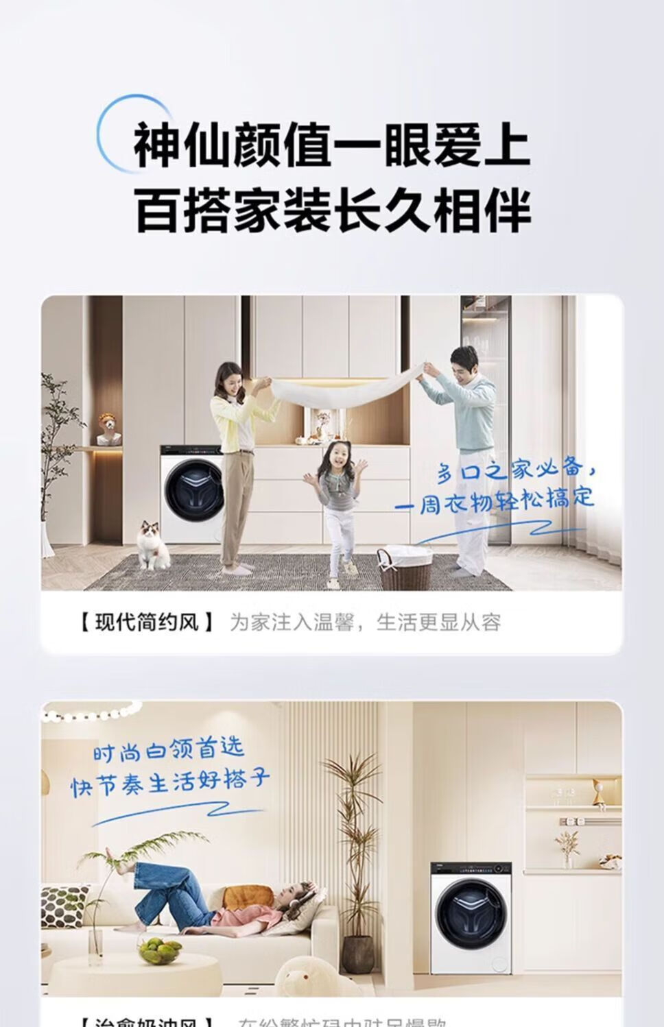 海尔超薄嵌入智能投放大筒径顽渍洗巴氏除菌螨防皱羊毛羽绒滚筒洗衣机 XQG100-B12176WU1 雪山白