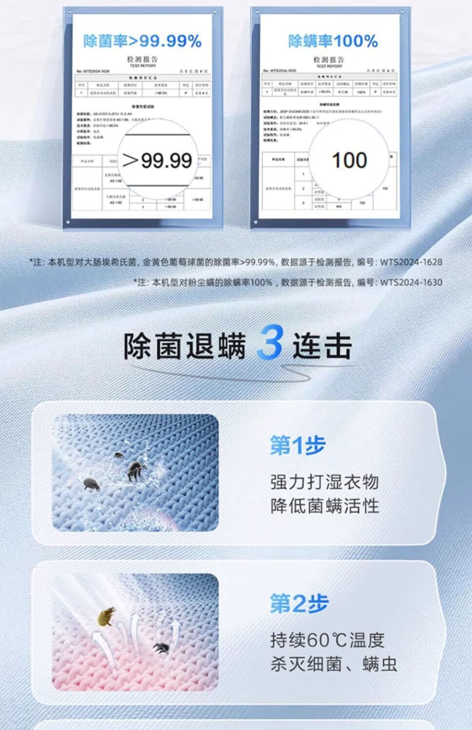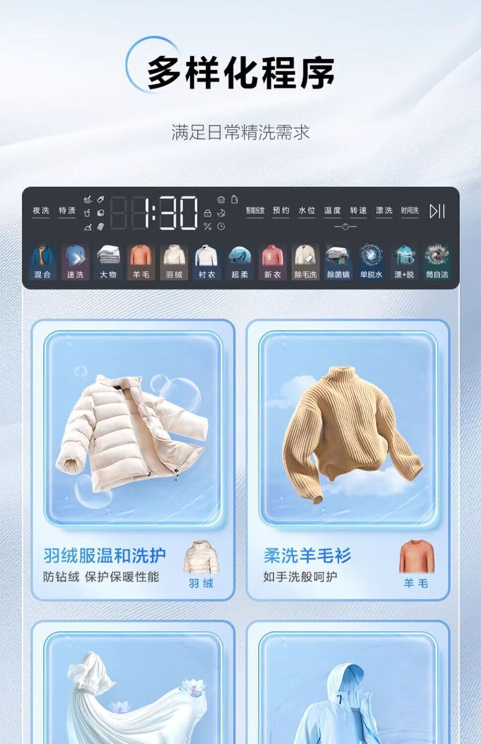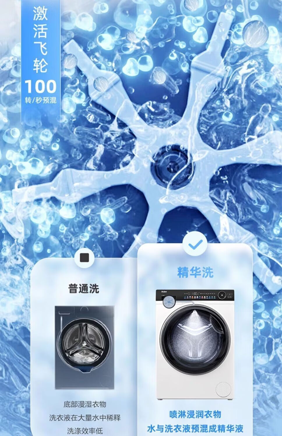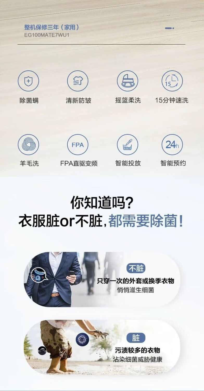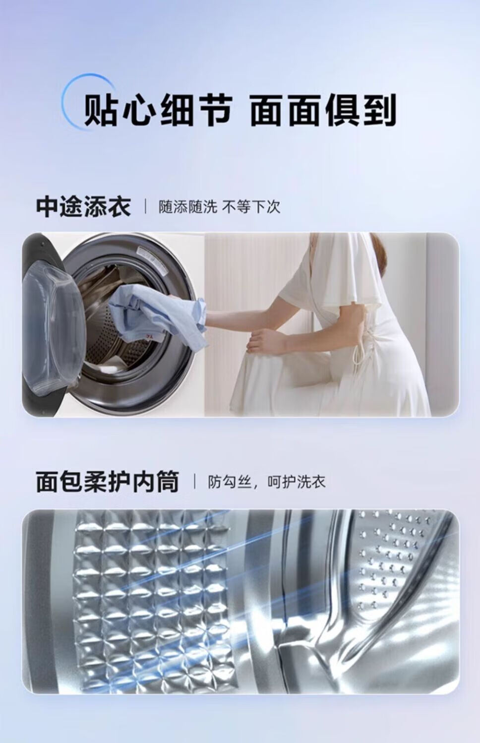 海尔超薄嵌入智能投放大筒径顽渍洗巴氏除菌螨防皱羊毛羽绒滚筒洗衣机 XQG100-B12176WU1 雪山白