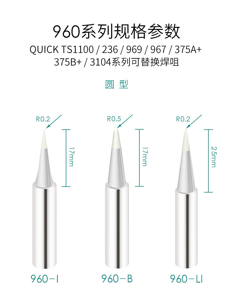 Punta de cautín para estación de soldadura RÁPIDA punta de soldadura serie 960 TS1100/236/969/967/375A+/3104 960-SK (1 pieza)