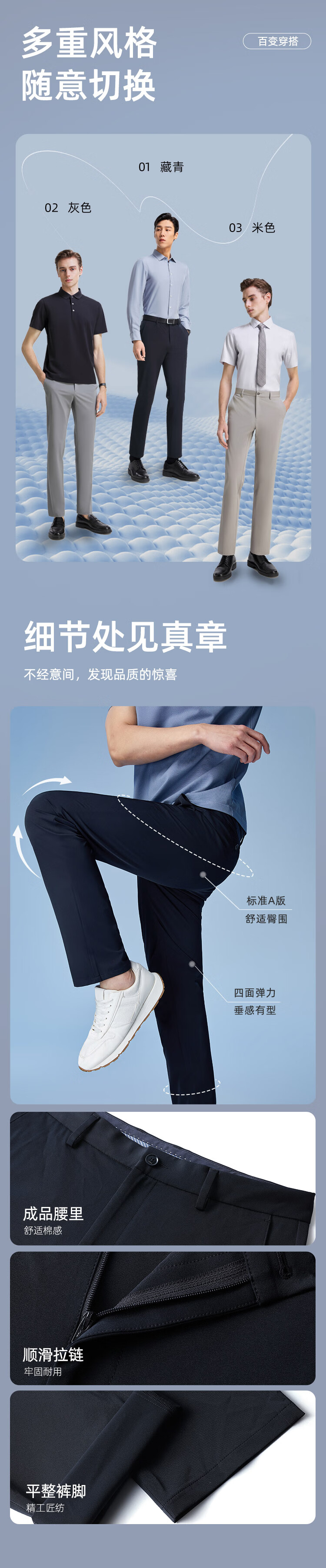 雅戈尔(YOUNGOR)休闲裤男冰丝裤四面弹轻盈透气清凉顺滑平整有型 灰色VCSX323010RWA 32 175/80A 标准版