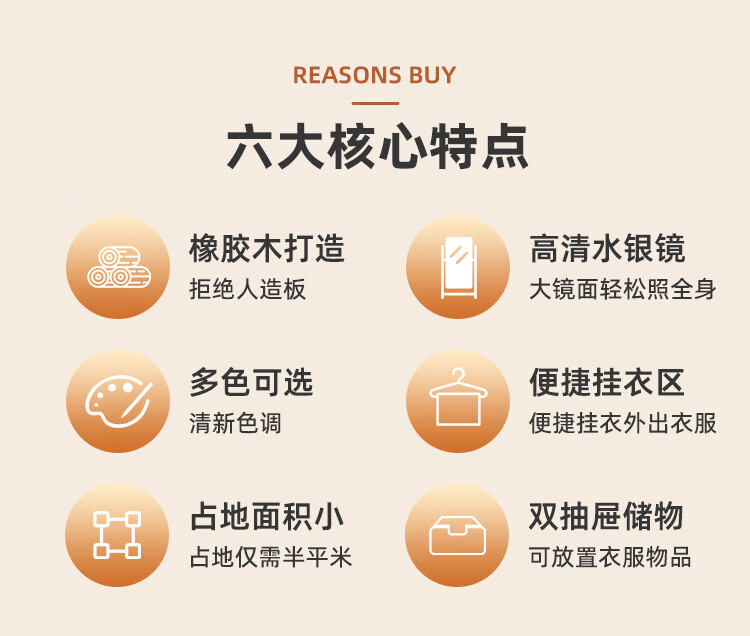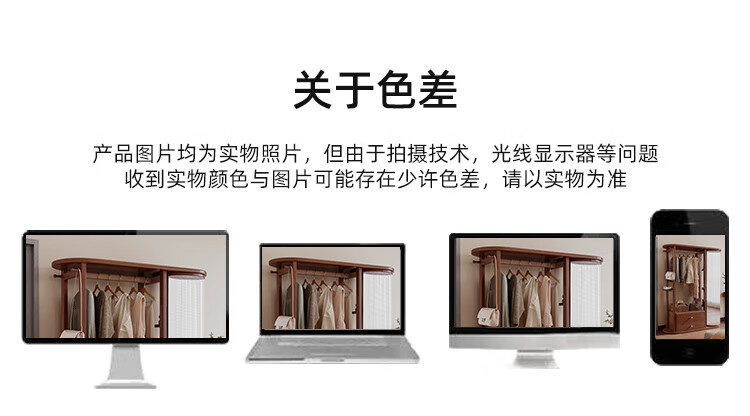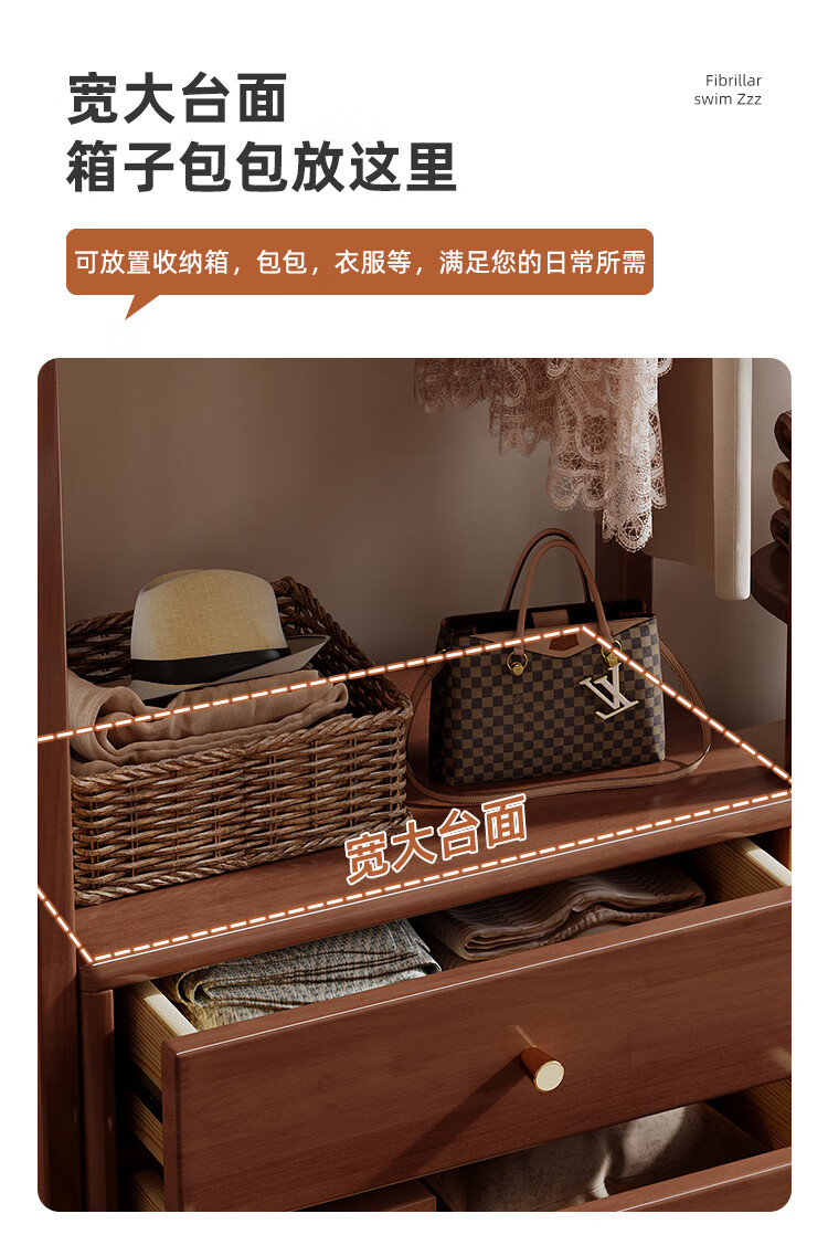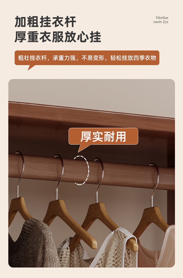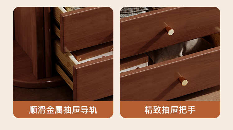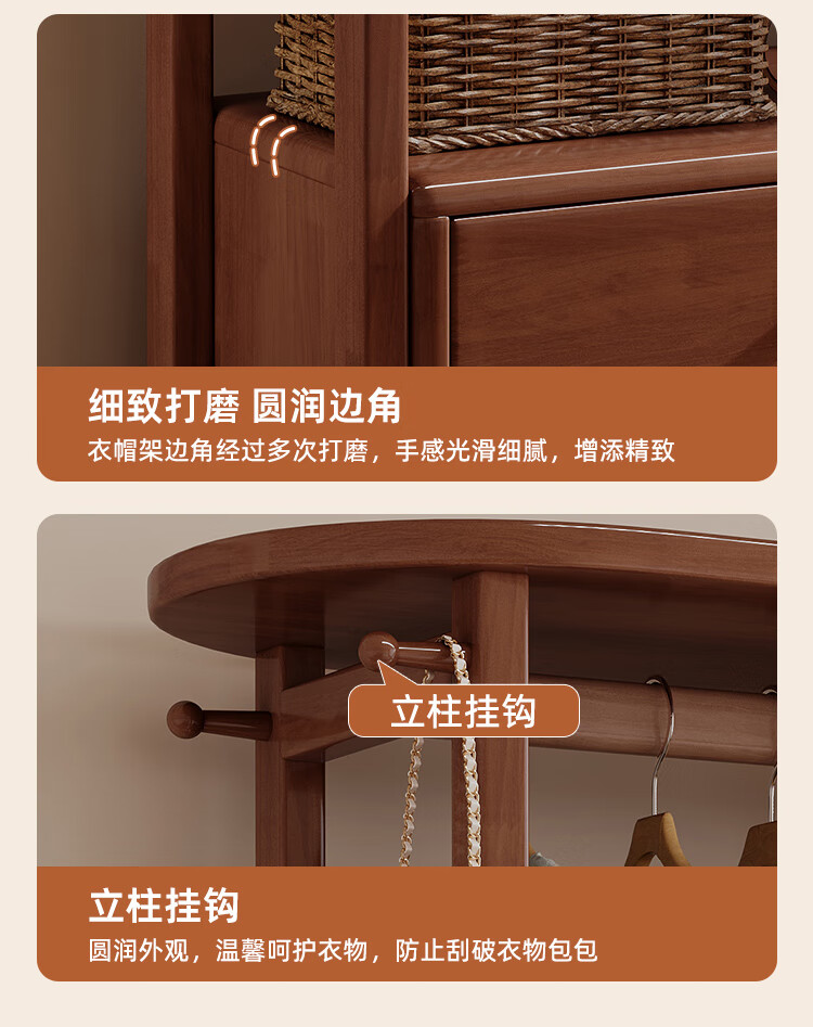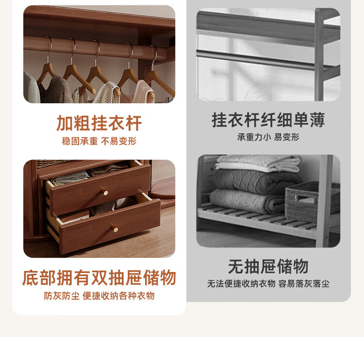 福岚实木衣帽架全身镜一体家用可旋转穿衣镜落地挂衣架卧室收纳置物架 胡桃色(送货上门包安装)