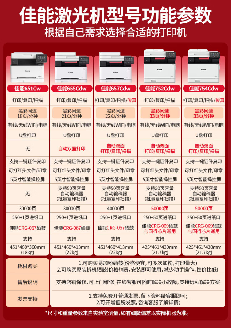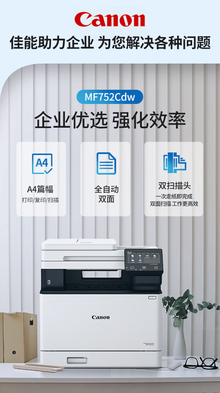 佳能(Canon)A4彩色激光打印机 MF655Cdw/657Cdw/752cdw/754CDW 复印扫描传真仪一体机无线家用办公商务 MF657cdw【无线四合一+全自动双面】 标配【原装硒鼓1套】不支持加粉