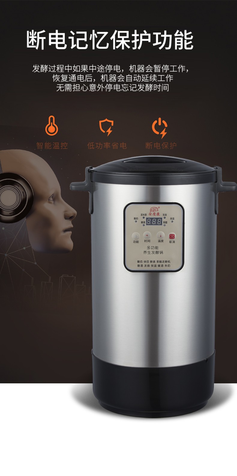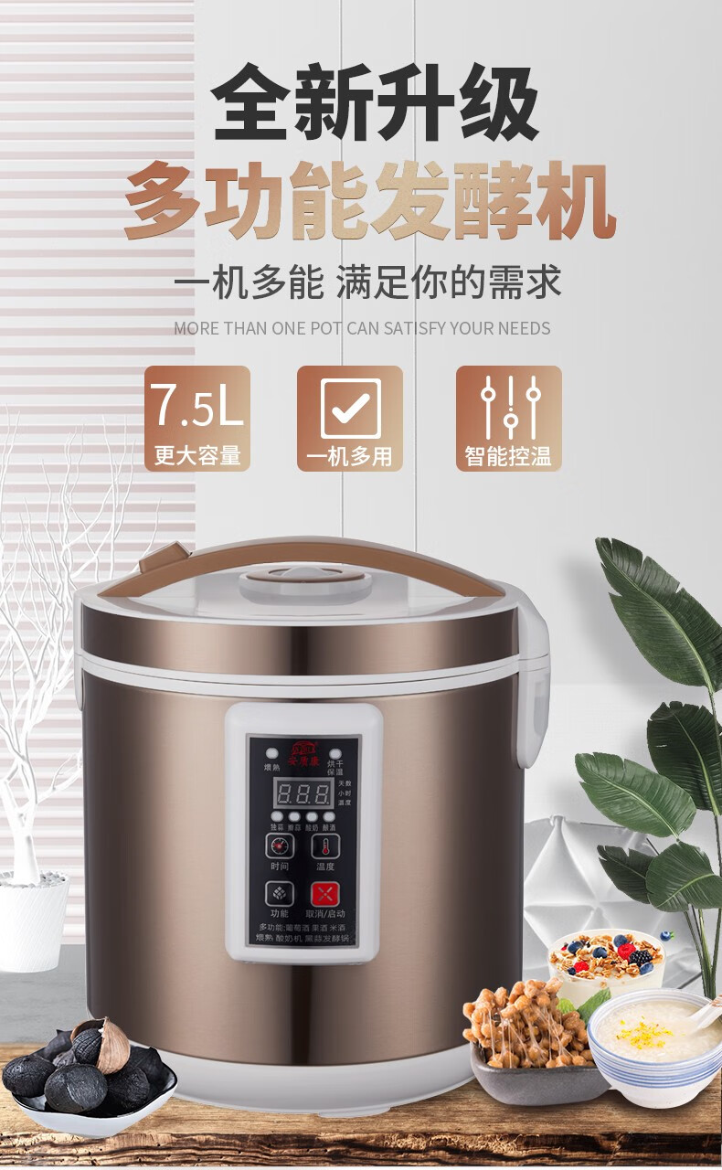 安质康(AN ZHI K) 酸奶机商用大容量全自动甜米酒醪糟多功能自制水果捞家用酵素发酵机送礼物品全自动酸奶机 不锈钢 7.5L 酸奶机发酵机