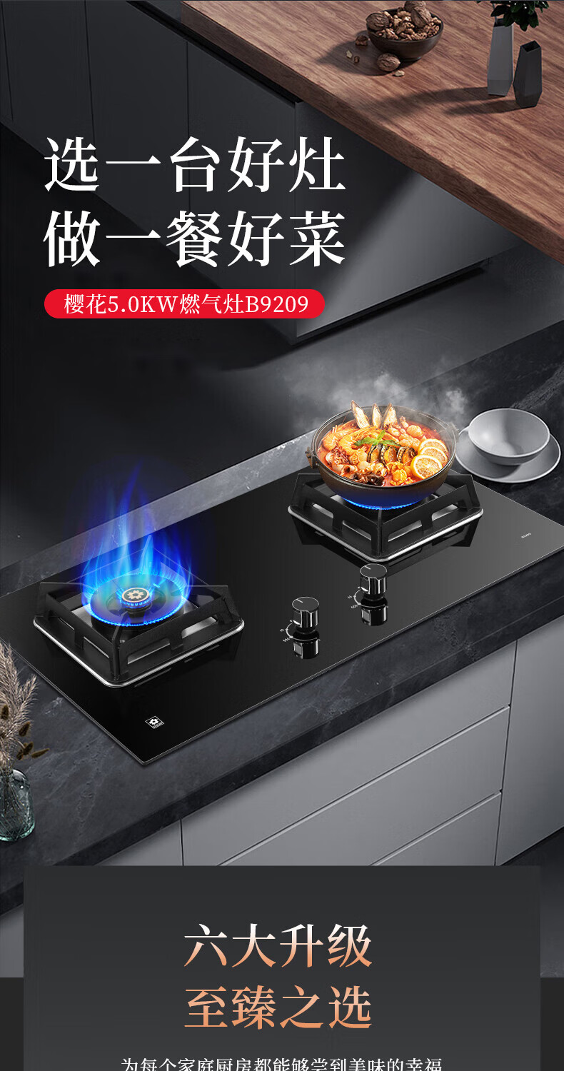 樱花(SAKURA)油烟机燃气灶套装 20方大吸力挥手启停自动清洗双层净滤油网5KW猛火燃气灶宽开孔熄火保护烟灶套装 TA01烟机+B9209燃气灶【天然气】5.0KW