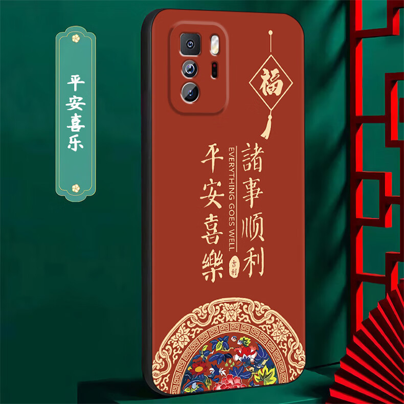 Uweimai geeignet für Redmi Note10Pro Handyhülle Silikon Anti-Fall Note10Pro Handyhülle für Männer und Frauen Frosted Chinese Style Dragon Year New All-Inclusive ultradünne Softshell J967 Ping An Fu Redmi Note10Pro Einzelschale