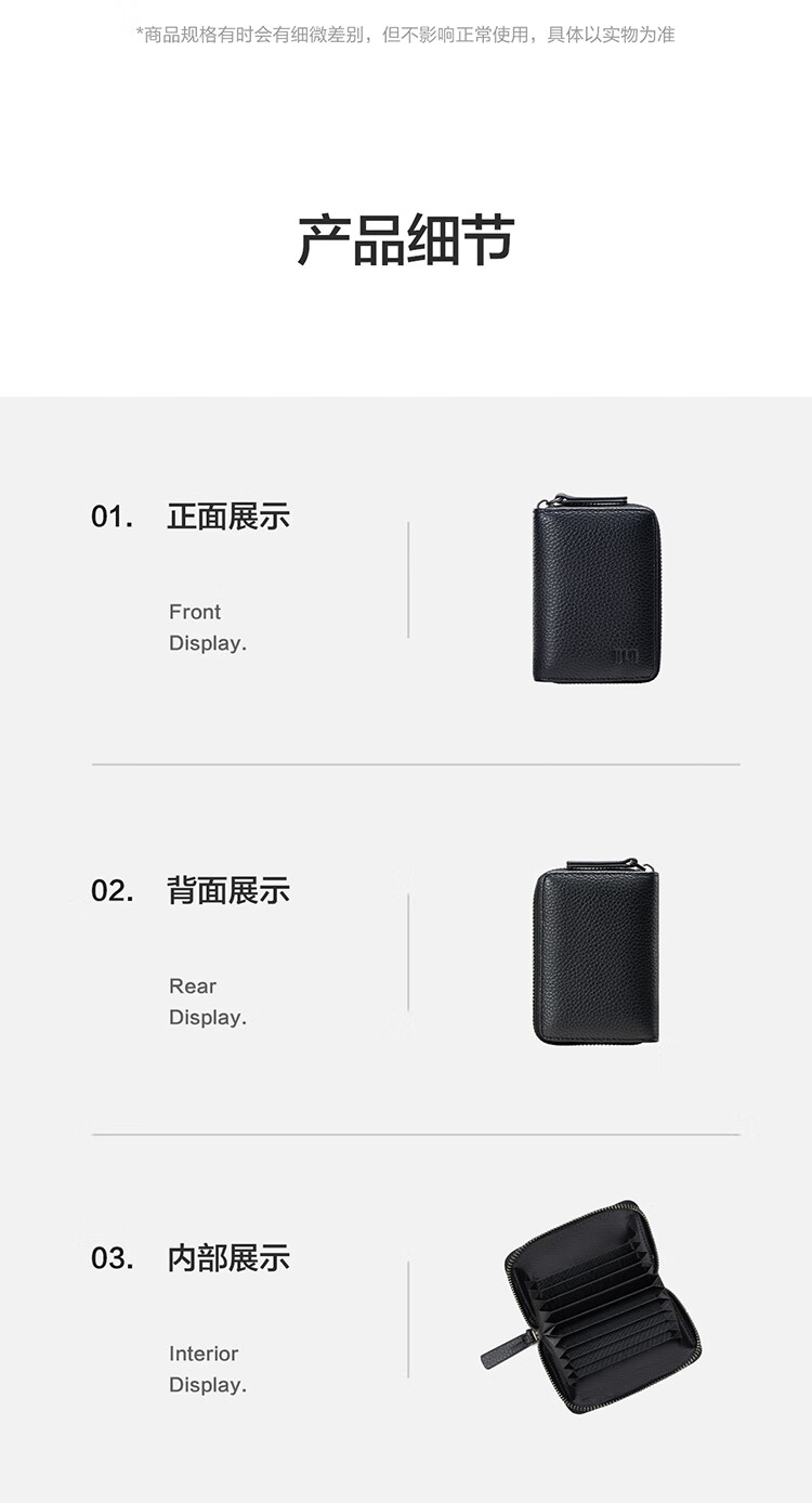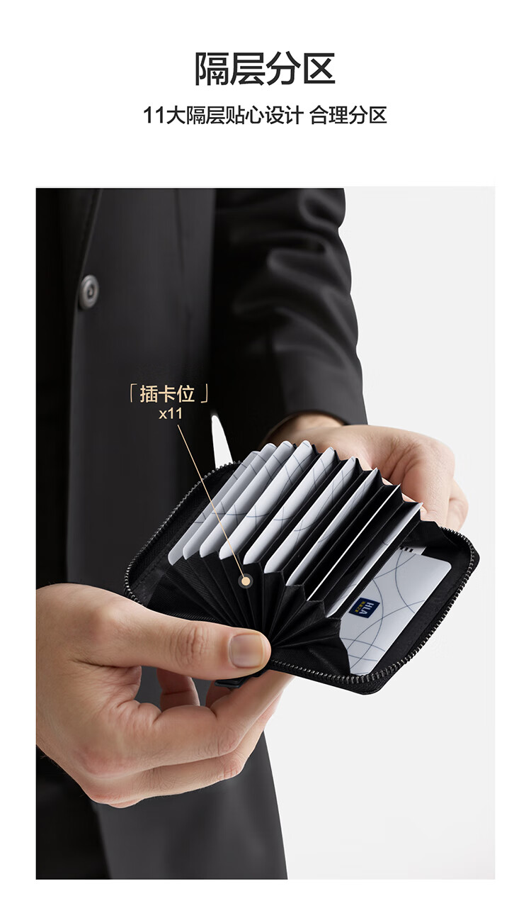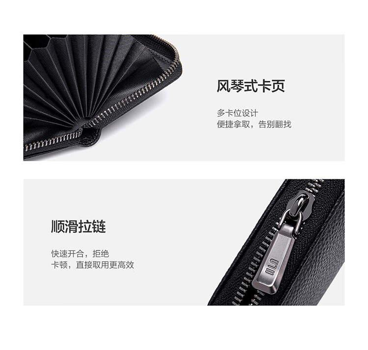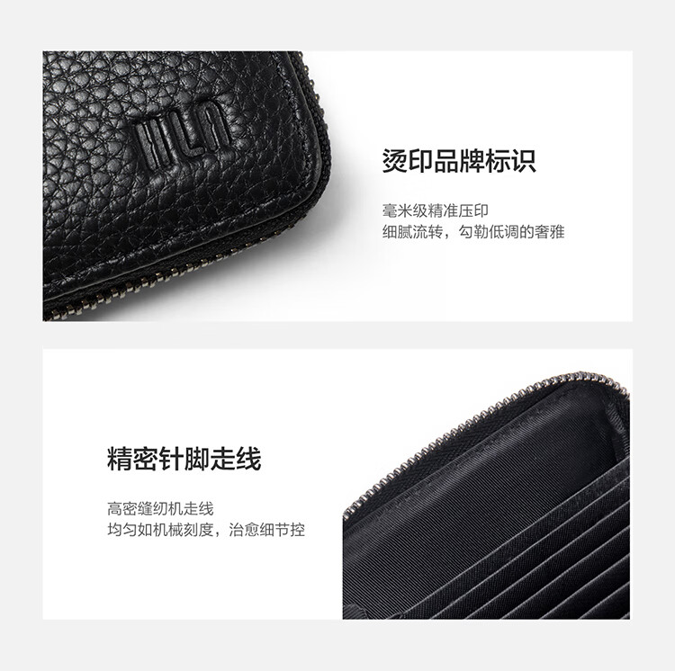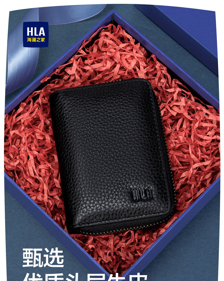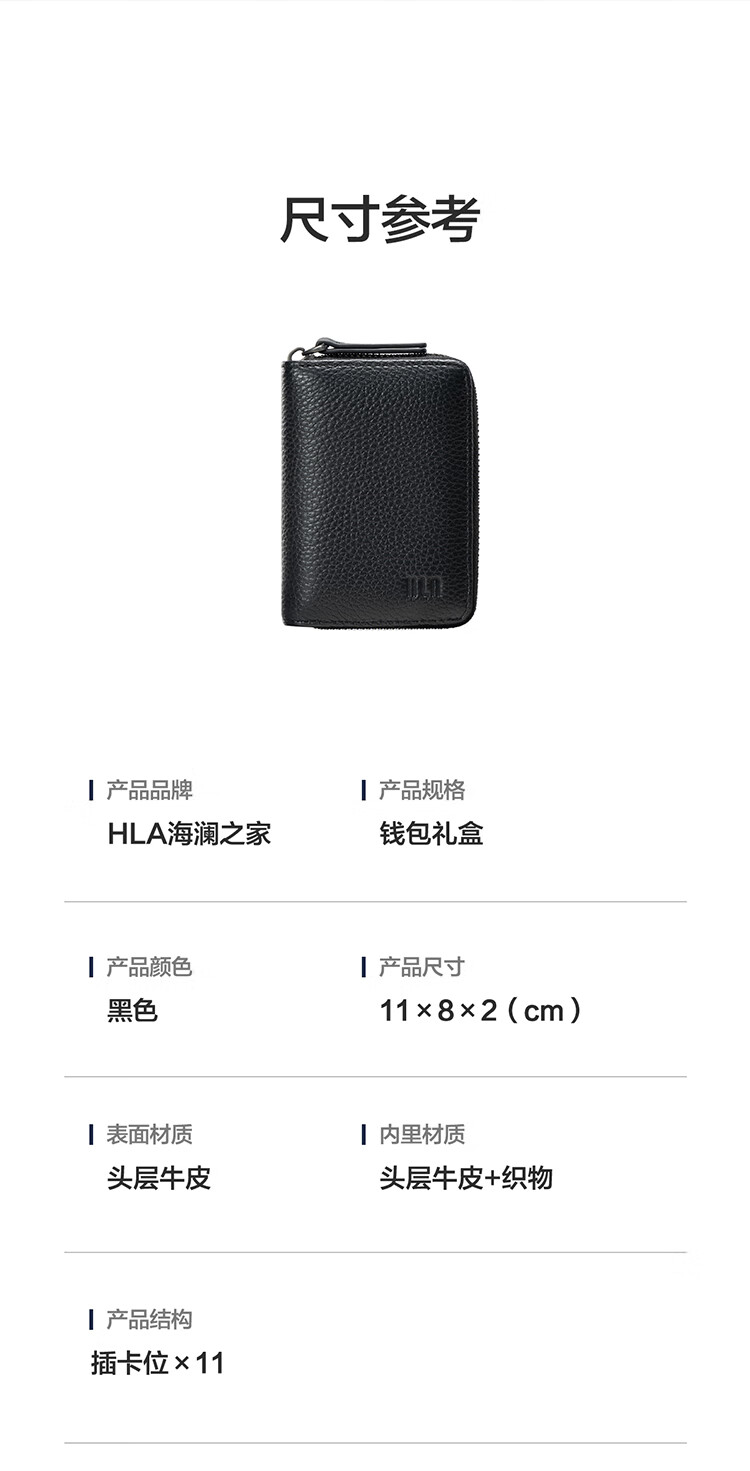 Heilan House Sac à main en cuir à fermeture éclair pour carte bancaire, sac d'identité, sac d'affaires en cuir pour homme, portefeuille, boîte cadeau pour la journée de l'enseignant, noir