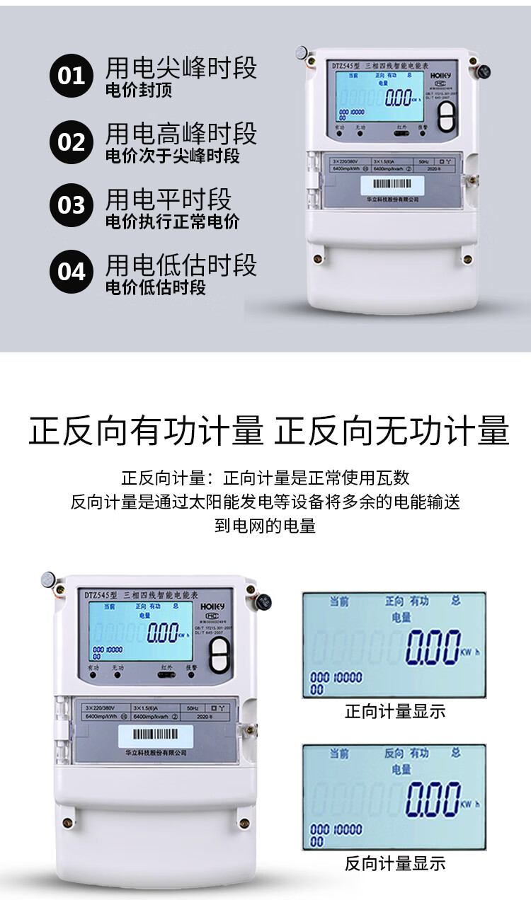 华立DTZ545/535三相四线峰谷平电表 科陆三相三线DSZ719高压0.2S 华立220/380V 3X1.5-6A