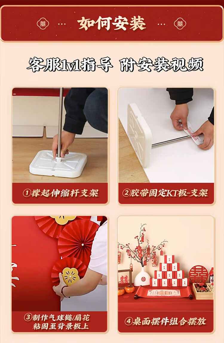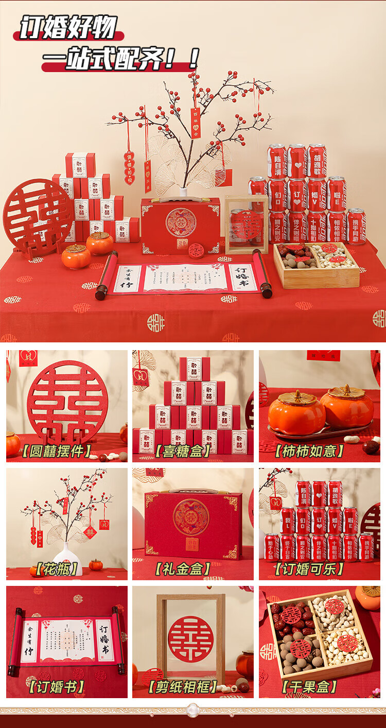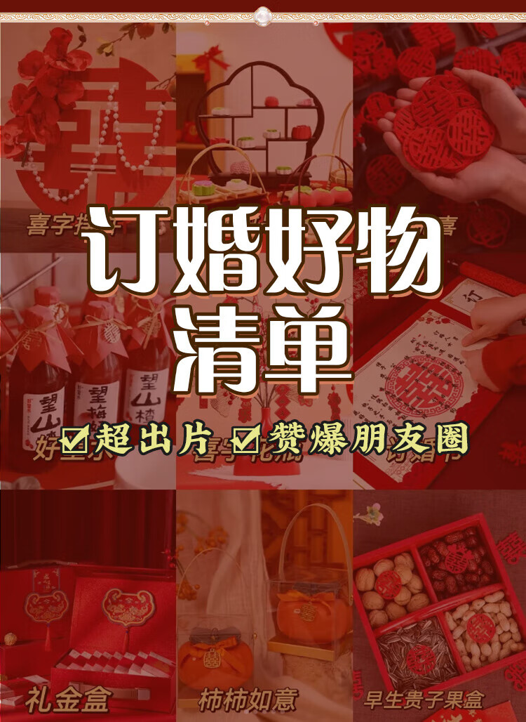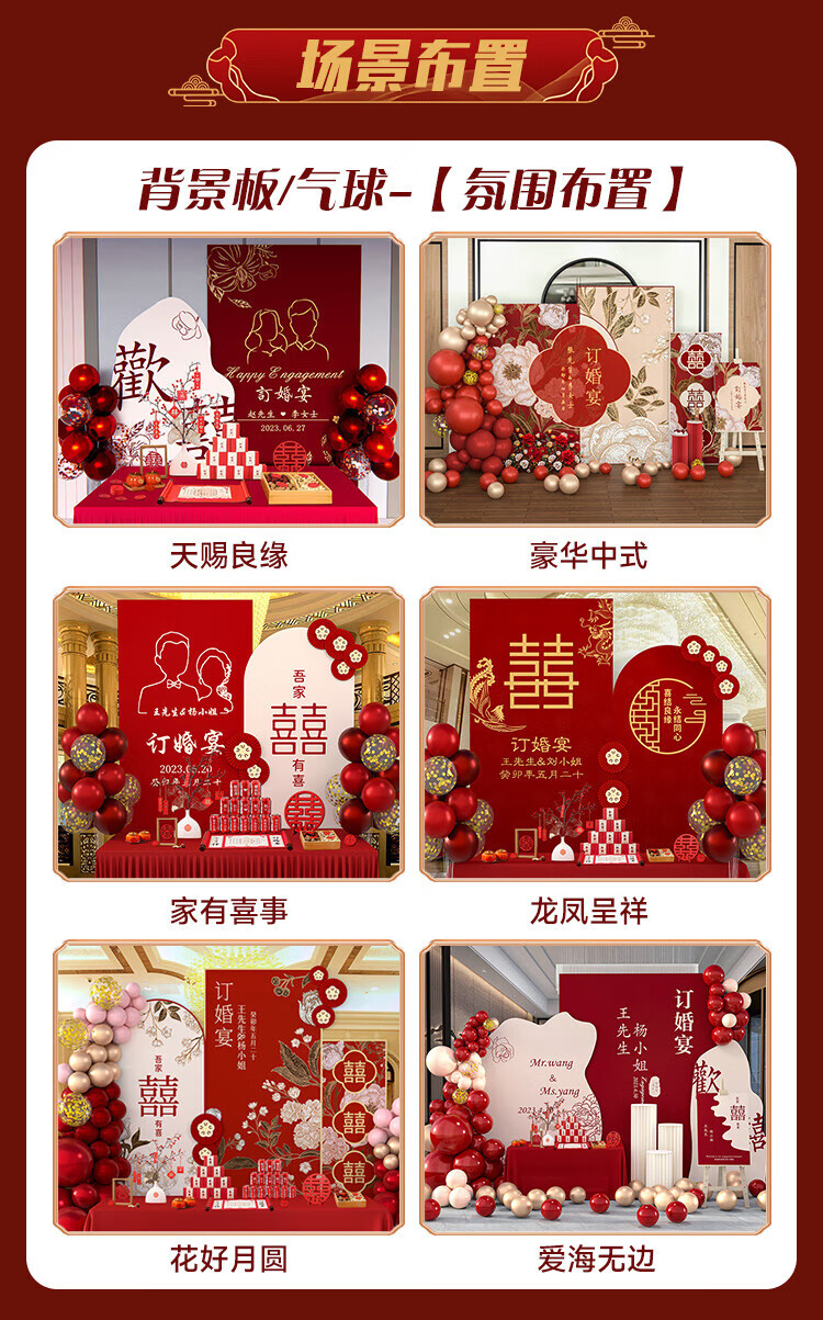 抓周订婚布置全套订婚宴摆件结婚回门宴婚礼酒店客厅布置背景墙KT板 七仓速发—订婚摆件[糖盒八件套]