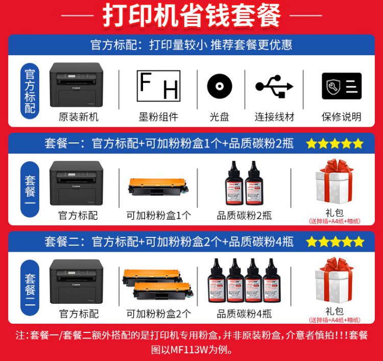 Canon MF113W 232W Impresora láser blanco y negro WIFI inalámbrico Imprimir Copiar Escanear Oficina en casa Negocios Máquina multifunción todo en uno MF232W Conexión inalámbrica/Imprimir Copiar Escanear 23 páginas/minuto Paquete 2 estándar oficial + 2 cajas de tóner recargables + 4 botellas de tóner