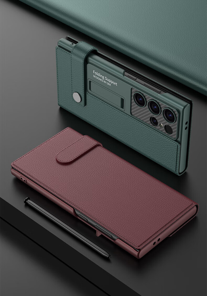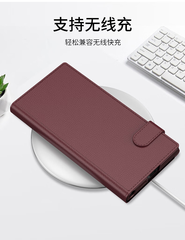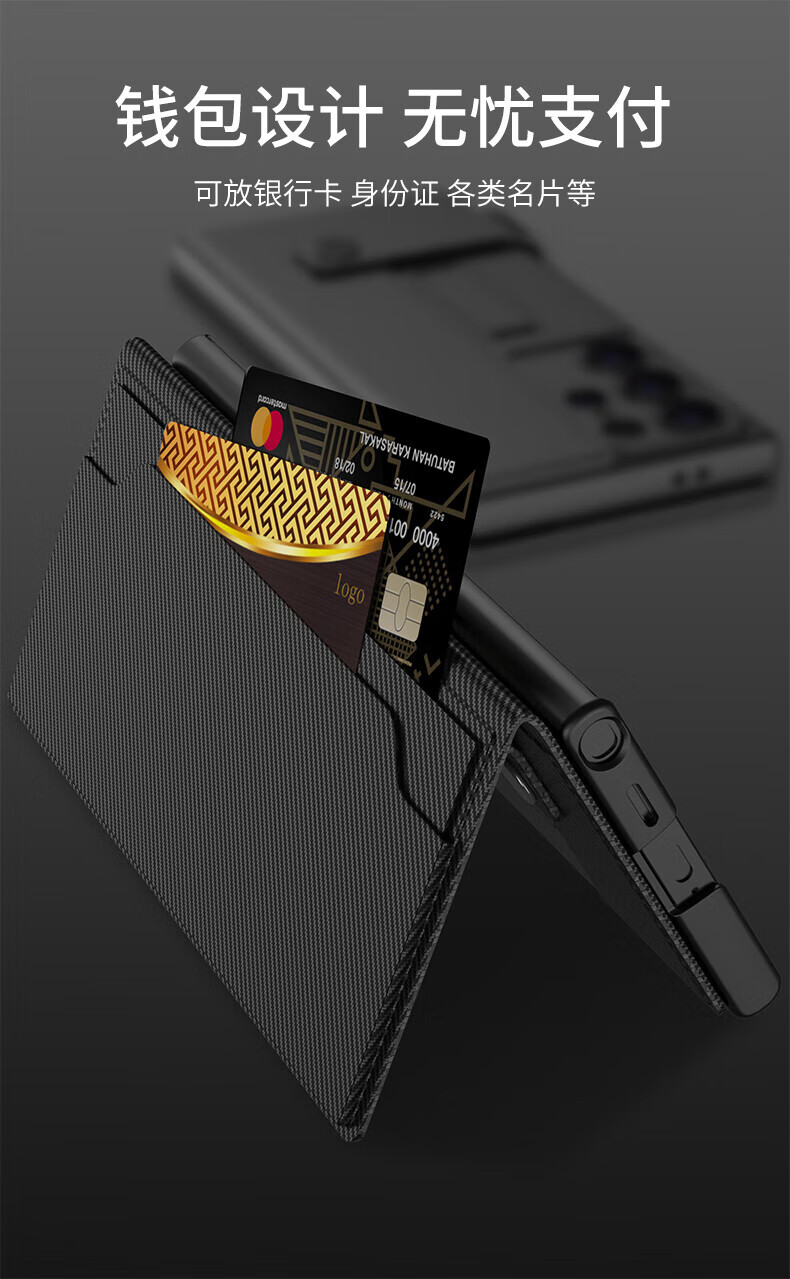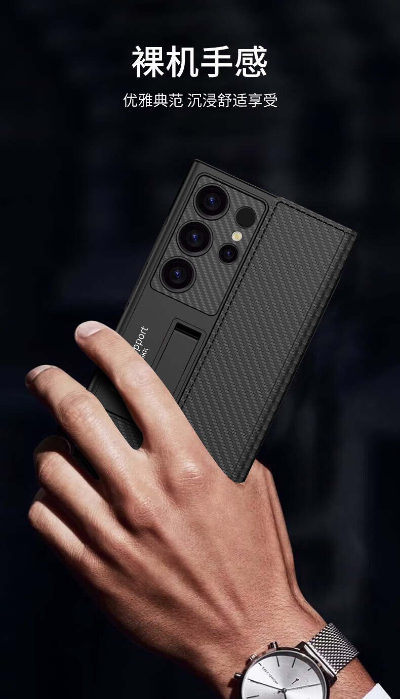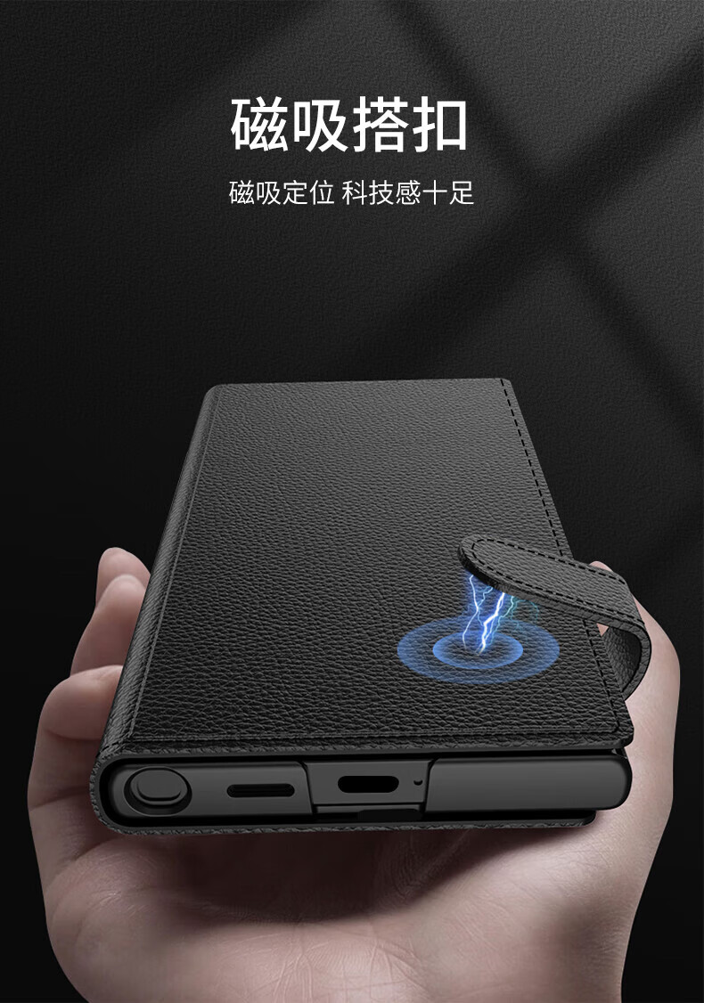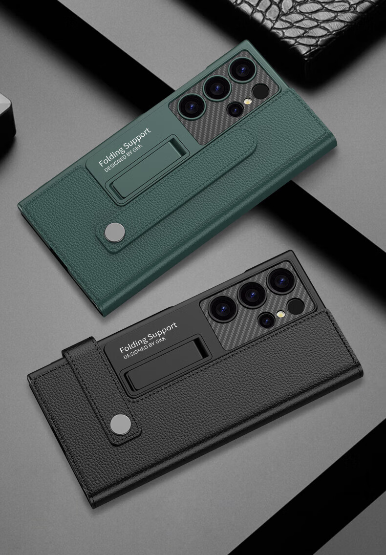 屏蓬 适用三星s24ultra手机壳翻盖s23ultra全包防摔保护套钱包款SM-S9280支架磁吸素皮皮套 碳纤纹黑 三星s24ultra