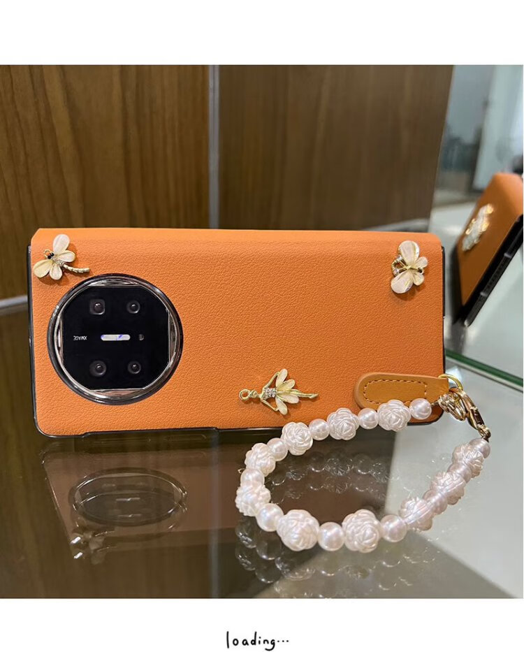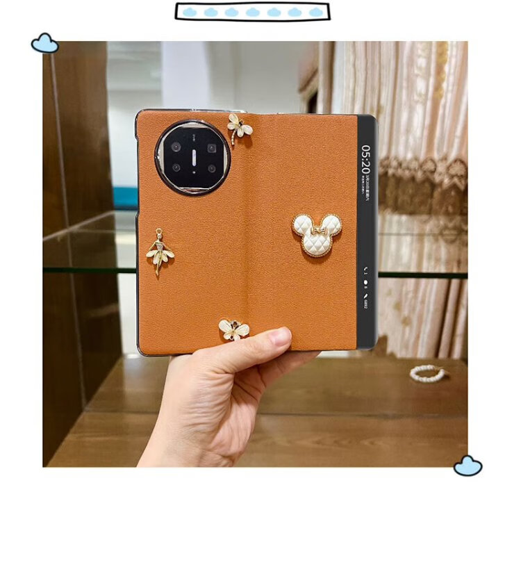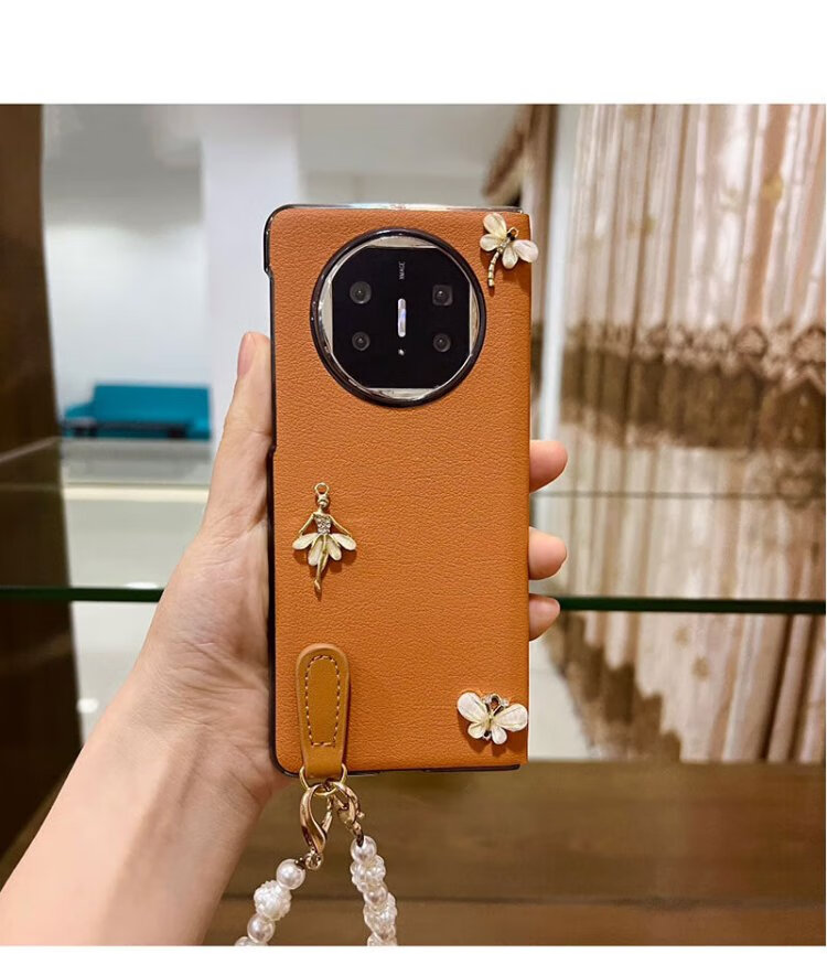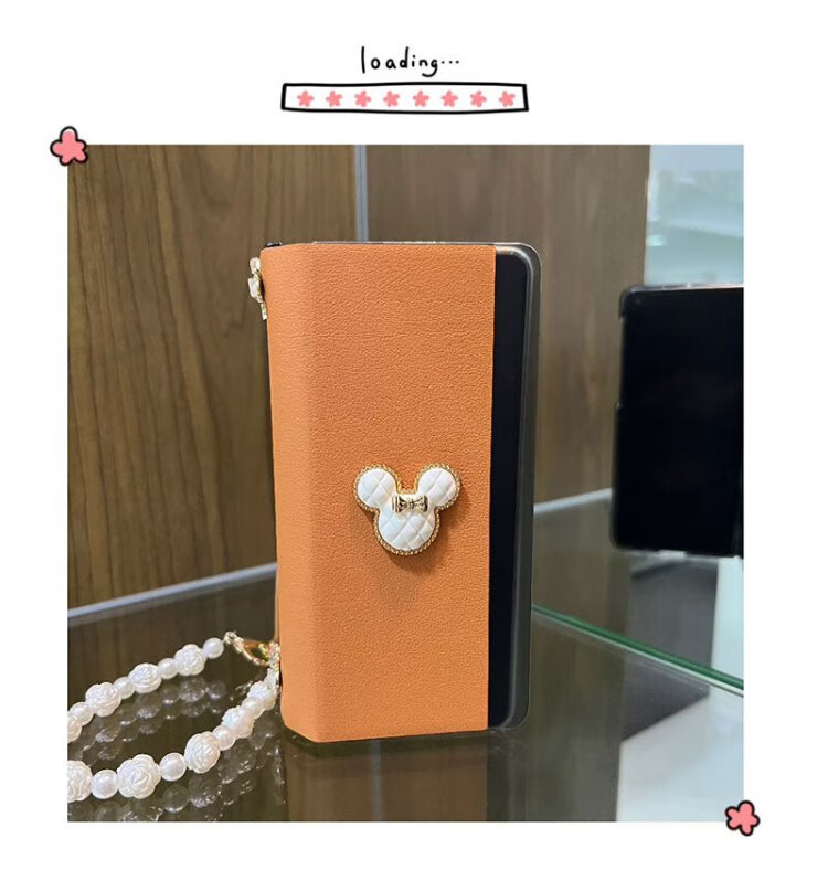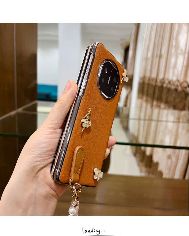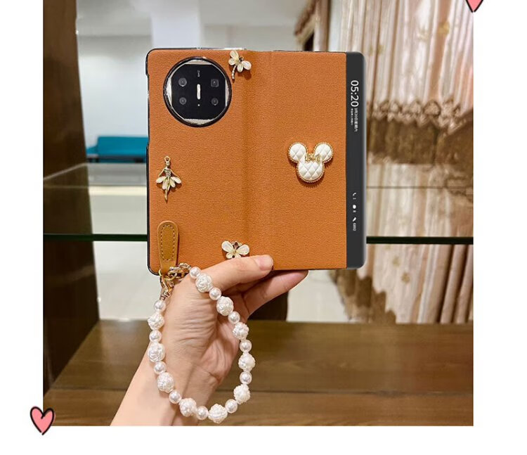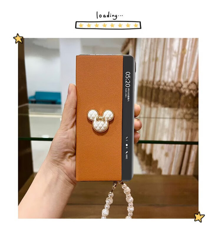 狮凯盾【智能视窗 | 免翻盖接听】华为MateX7手机壳全包matex6典藏版折叠屏高档皮套超薄X5防摔带手链女 【枫叶橙-全包翻盖】芭蕾女孩+金属米妮+玫瑰花手链 华为 Mate X5