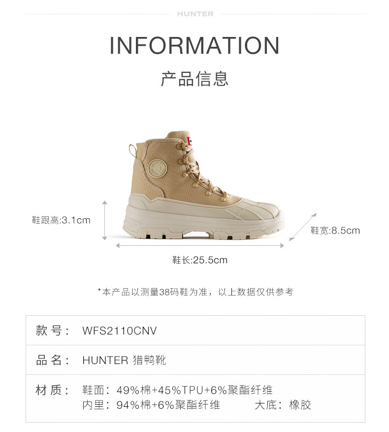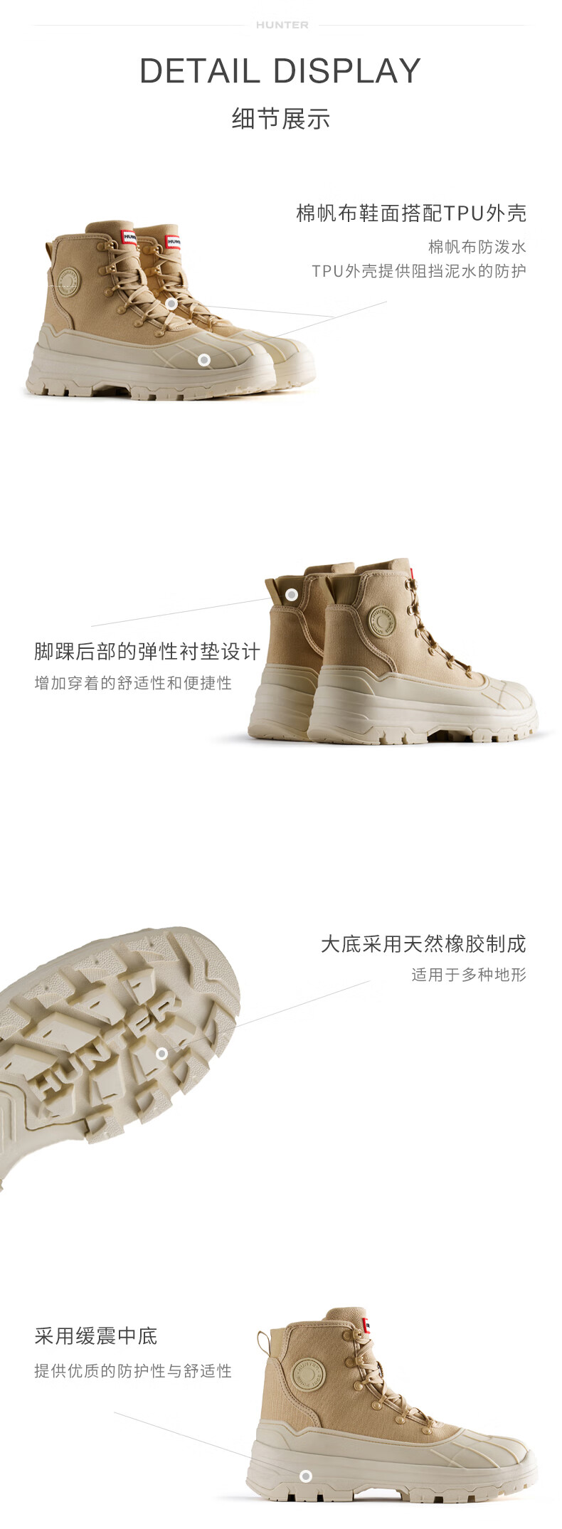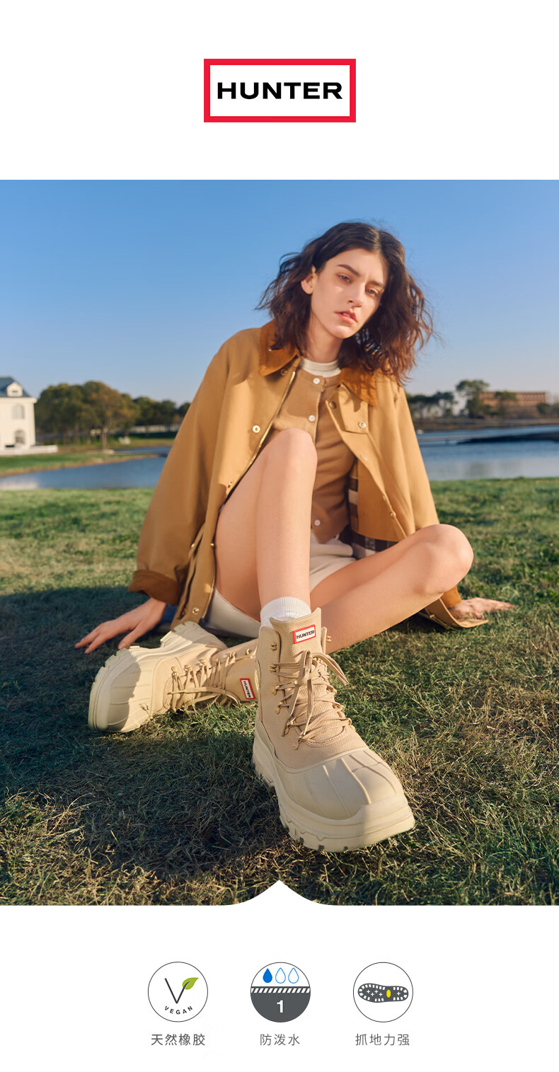 HUNTER女鞋猎鸭靴高帮靴户外防泼水防滑徒步登山鞋休闲马丁靴女靴 沙褐色/SCC 36
