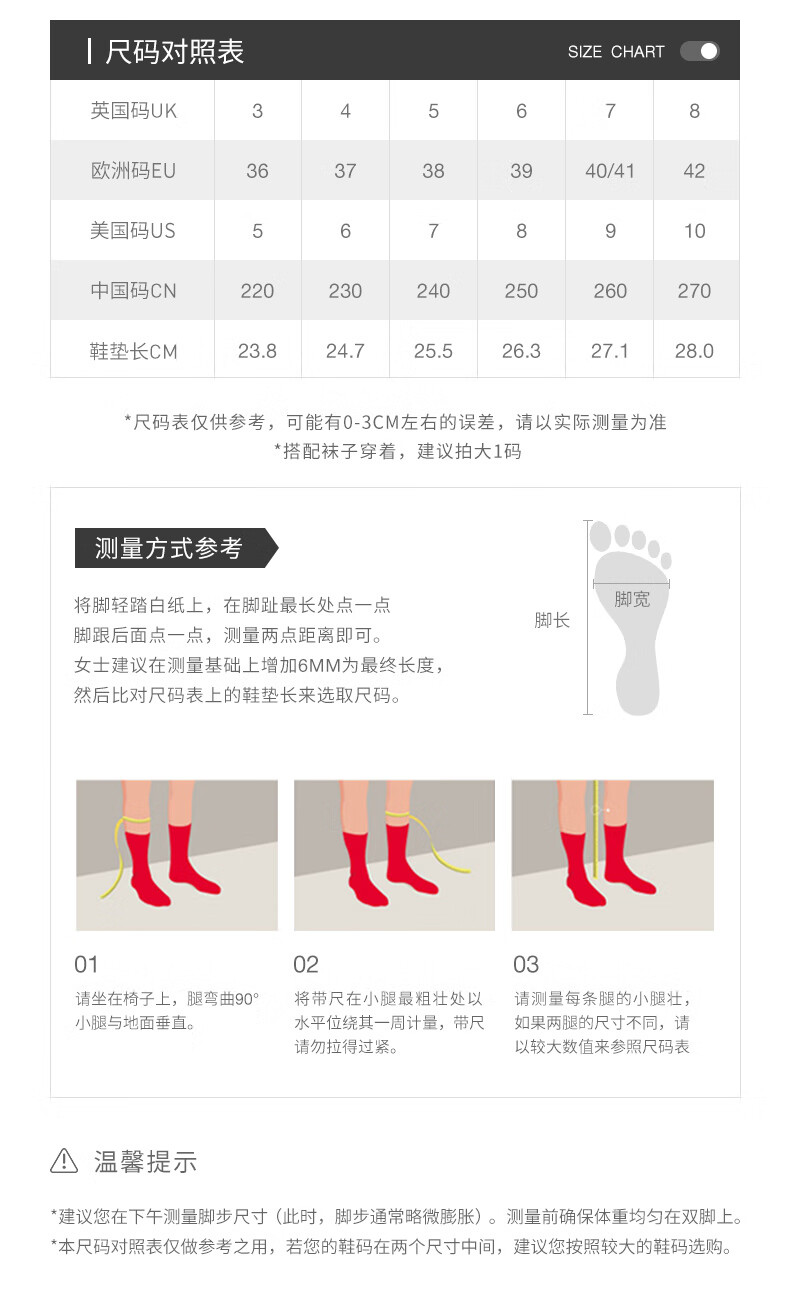 China (cm) 36 - 37 38 - 39 40 - 42 43 - 44 45 - 47