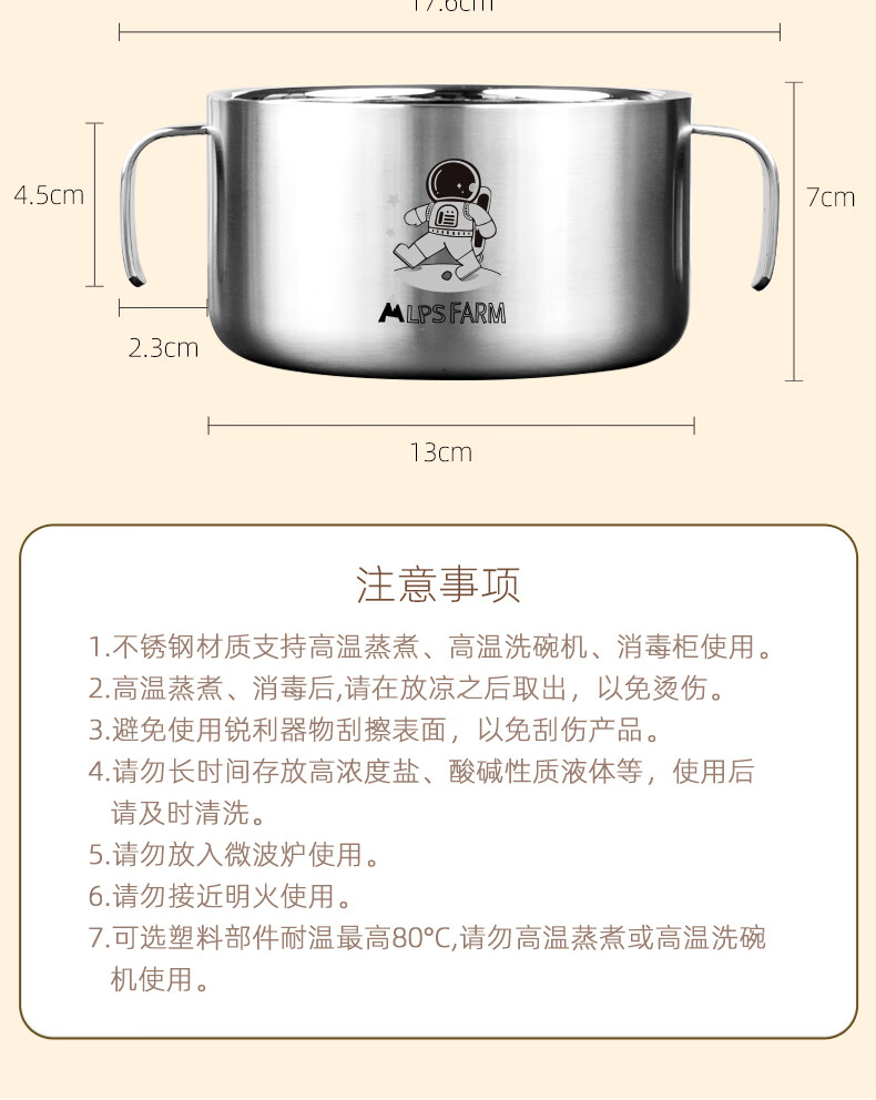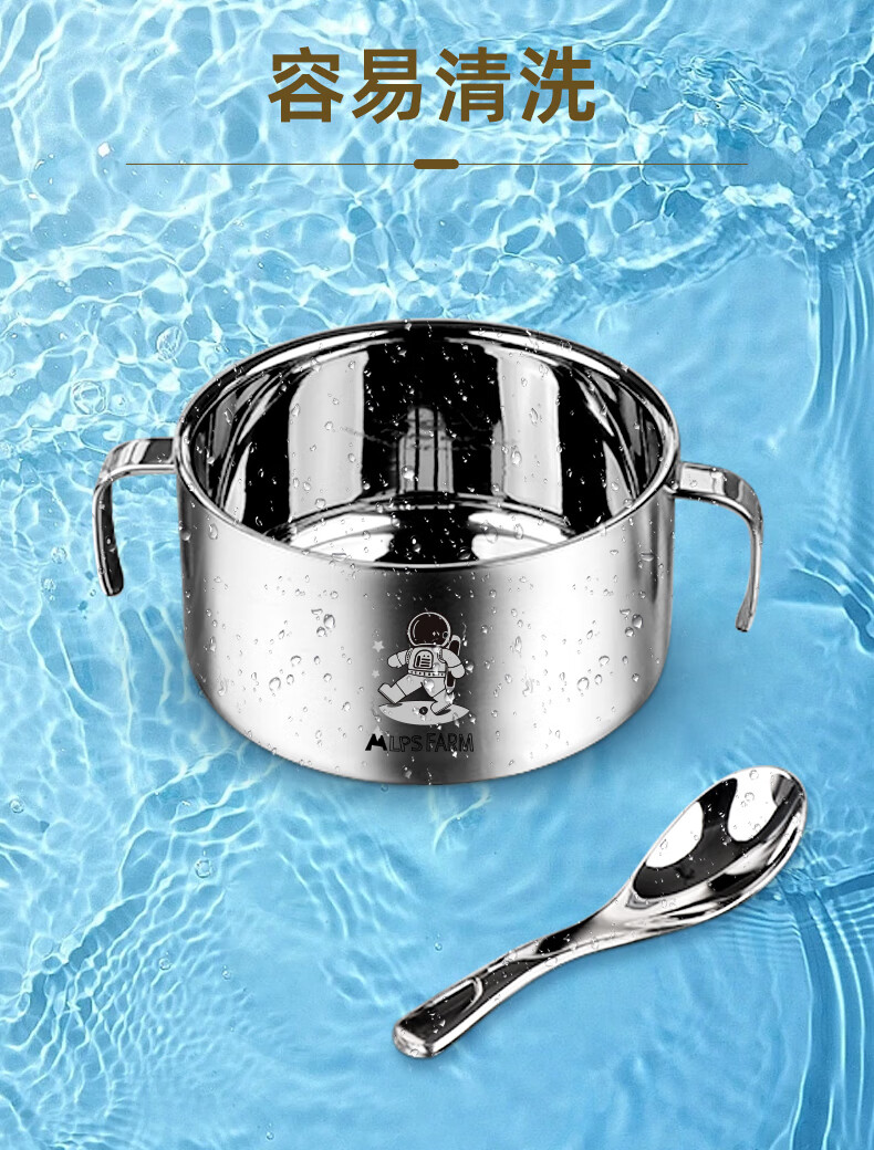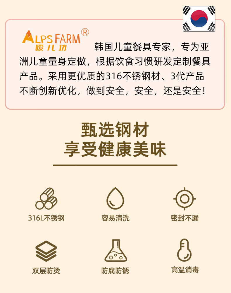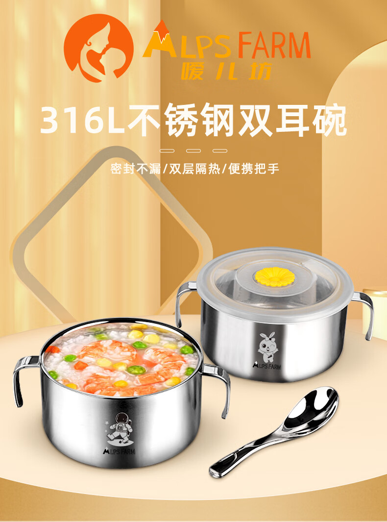 嗳儿坊韩国ALPSFARM小学生316不锈钢双层防烫双耳碗密封汤碗儿童吃饭碗 12生肖图案下单备注生肖