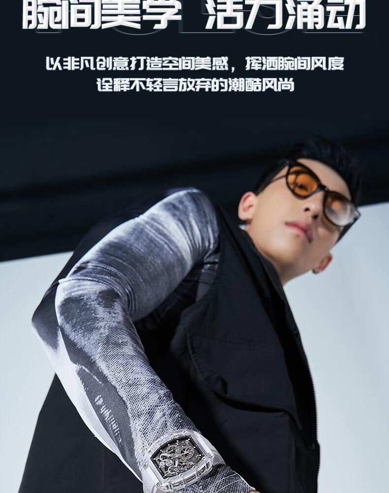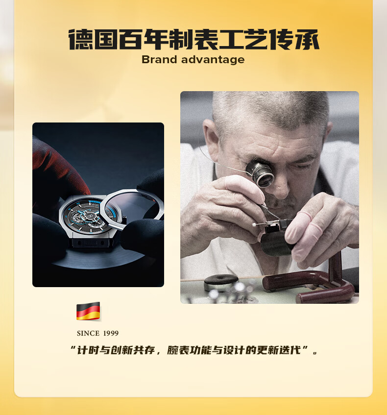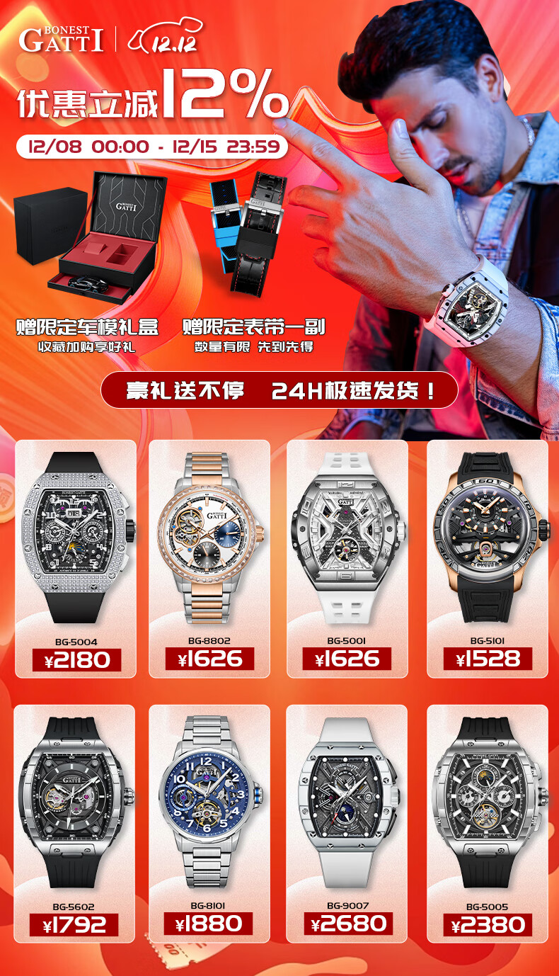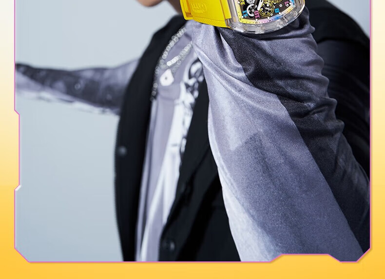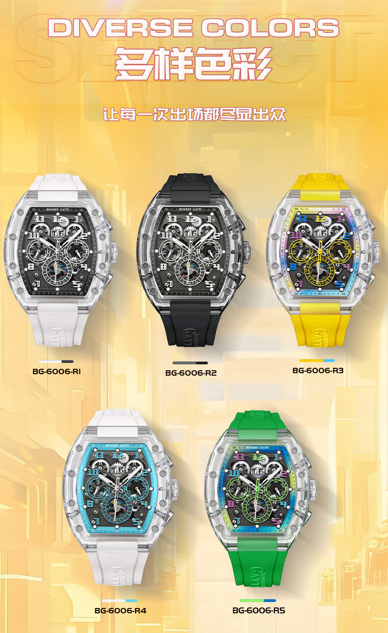 Bugatti (BONEST GATTI) German men's hollow fully automatic mechanical watch crystal case luminous watch Valentine's Day birthday gift for boyfriend BG9920-A3 transparent case yellow surface yellow tape