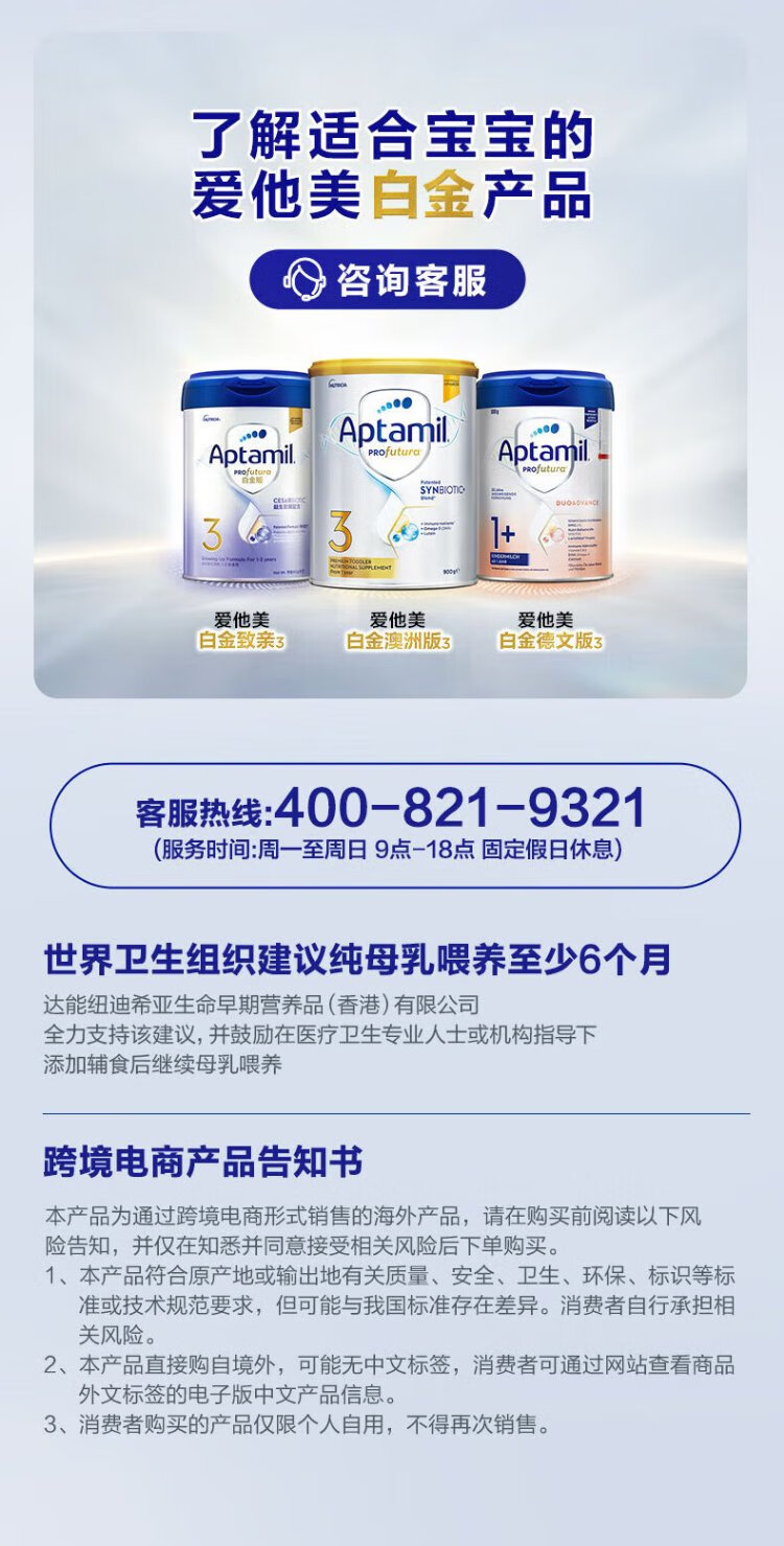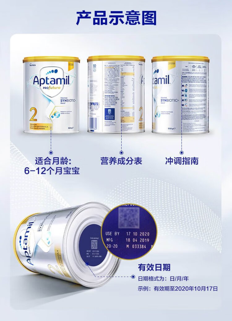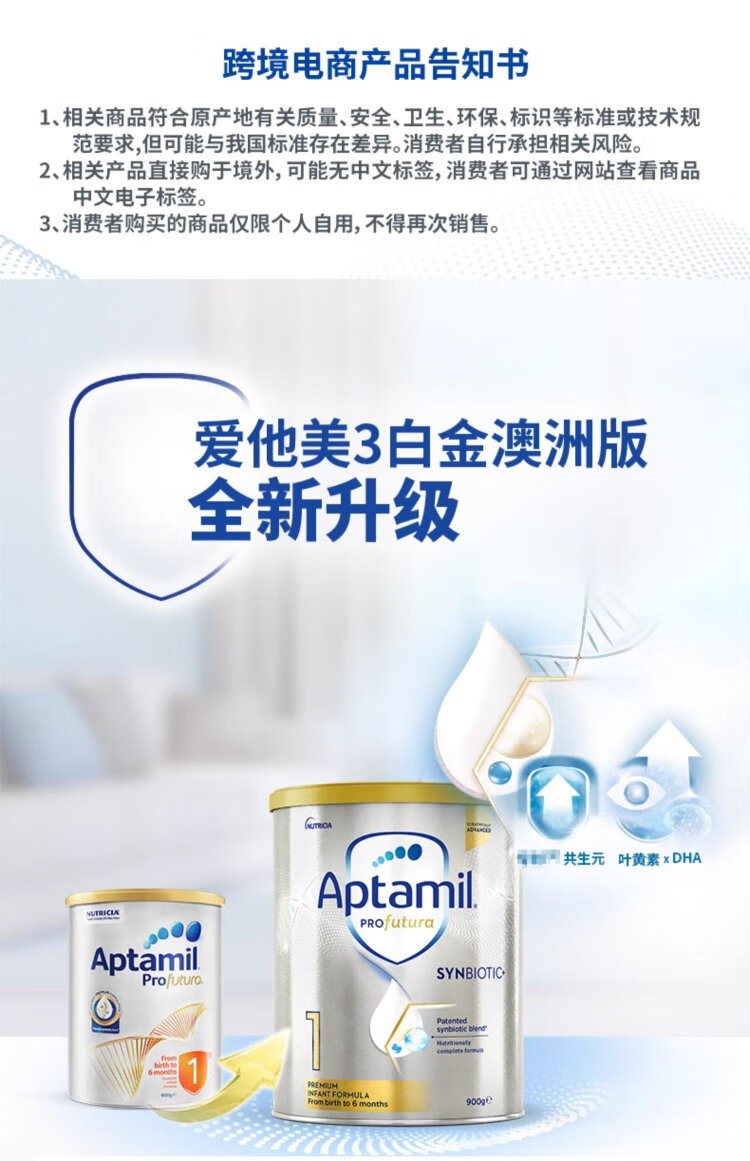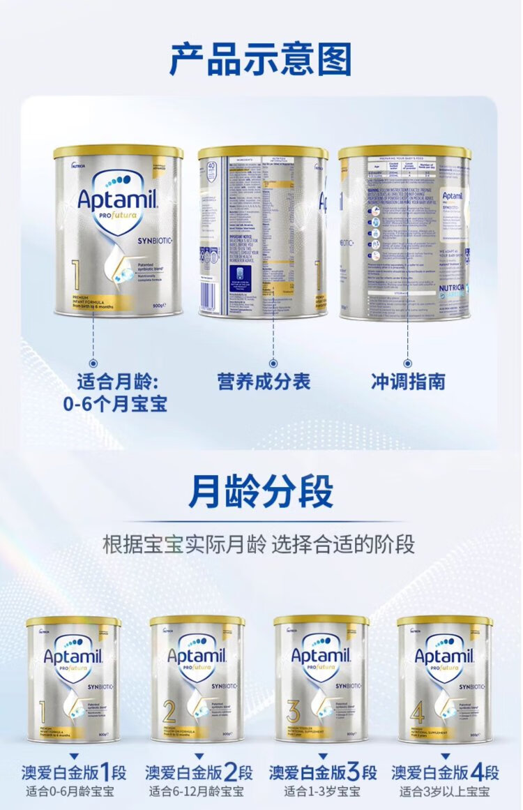 爱他美(Aptamil)澳洲白金版12DHA段叶黄素婴幼儿配方奶粉铂金装0-6月900g新西兰 2段 6罐【膨胀金满1000赠40元】