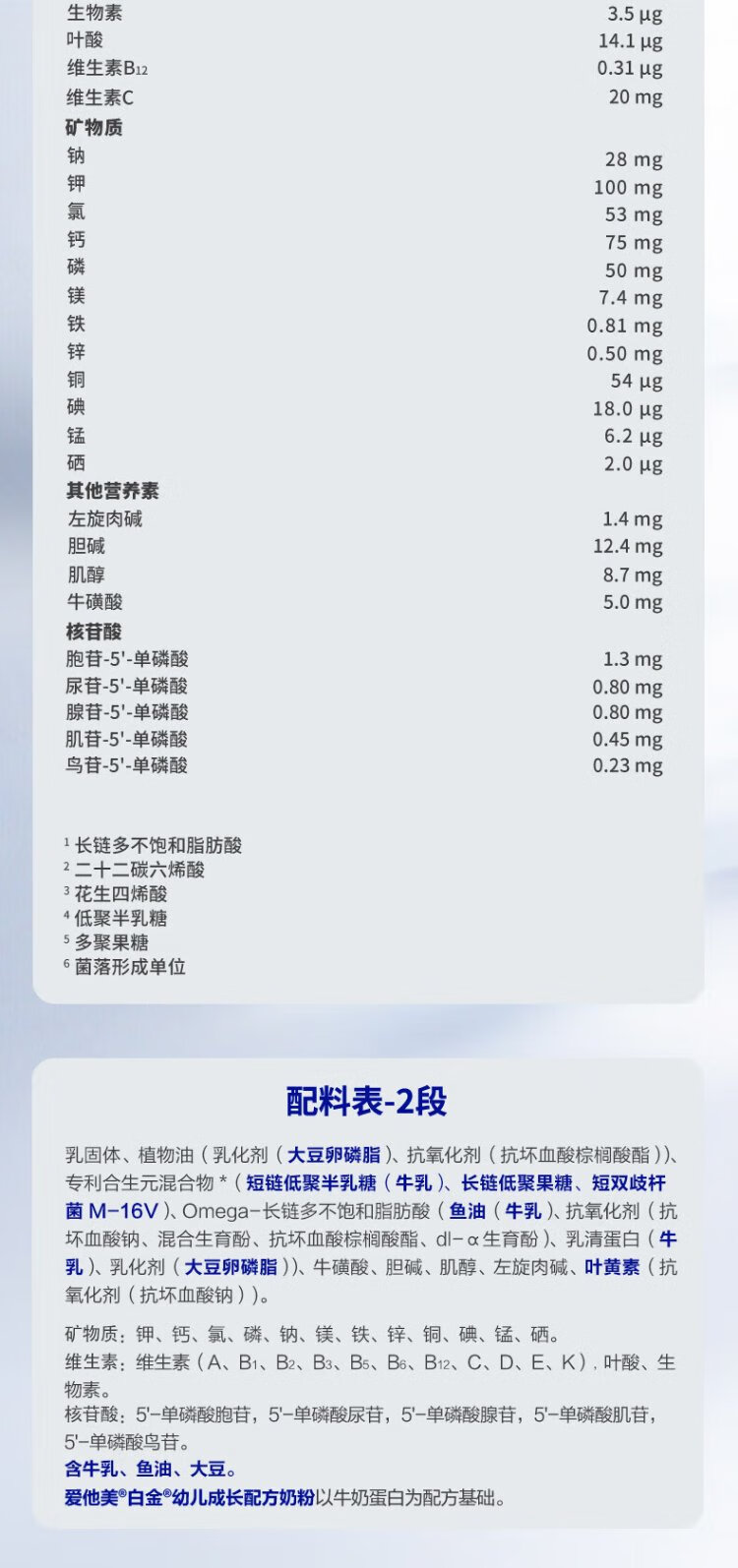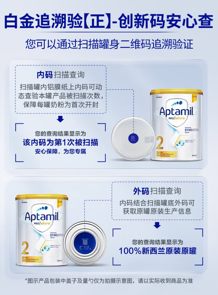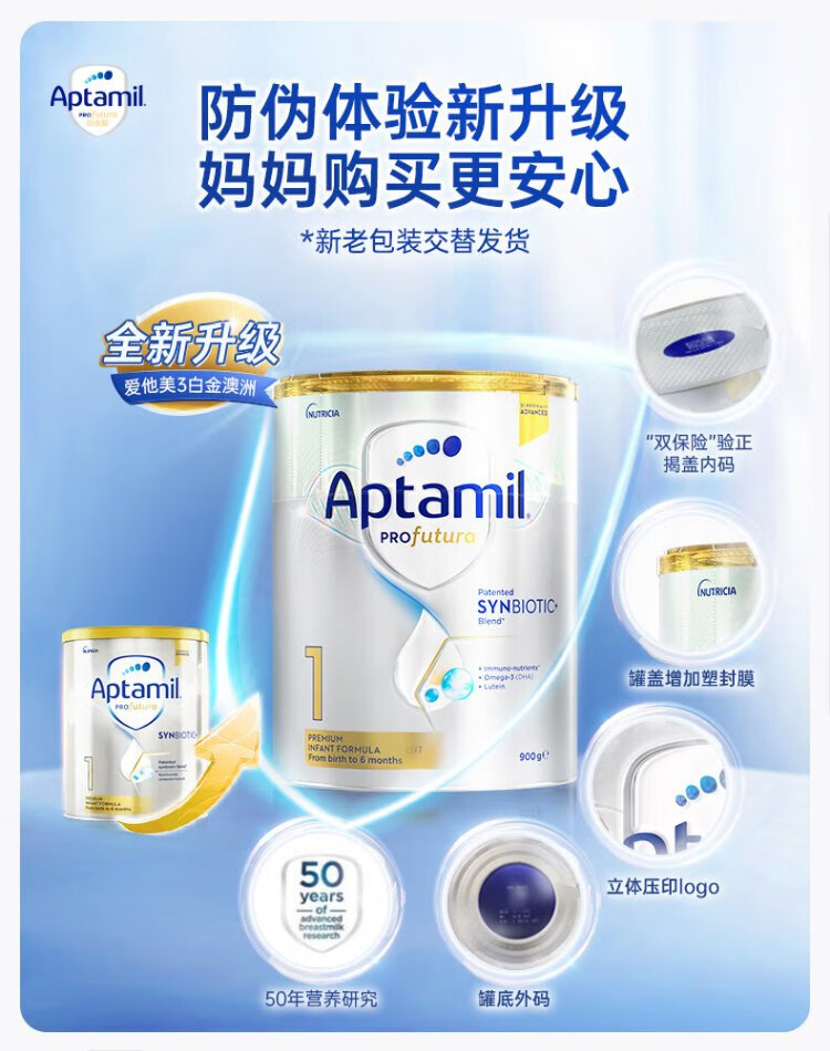 爱他美(Aptamil)澳洲白金版12DHA段叶黄素婴幼儿配方奶粉铂金装0-6月900g新西兰 2段 6罐【膨胀金满1000赠40元】