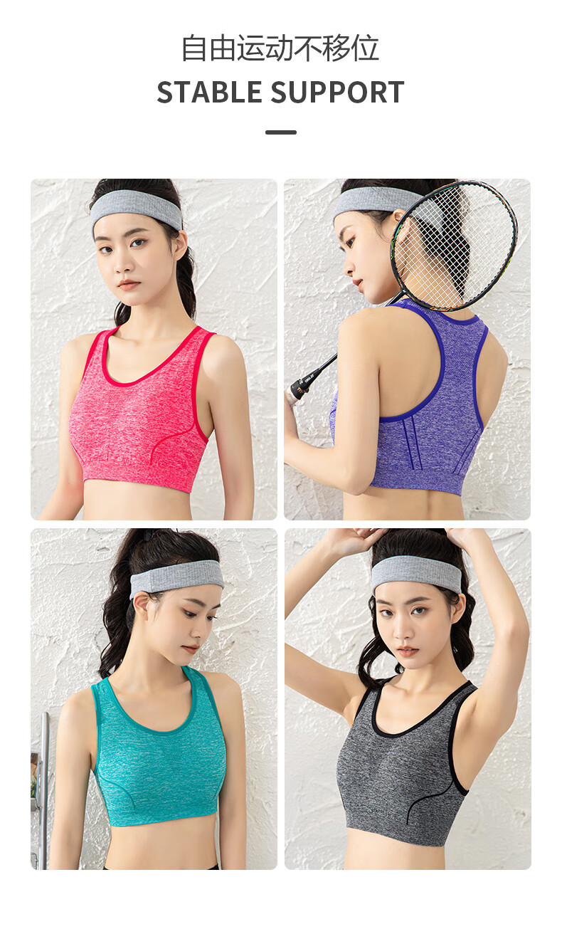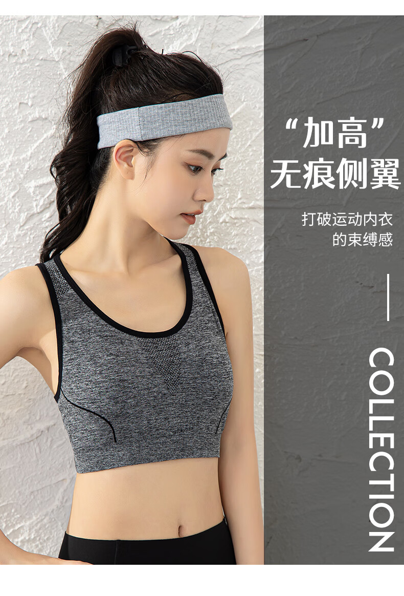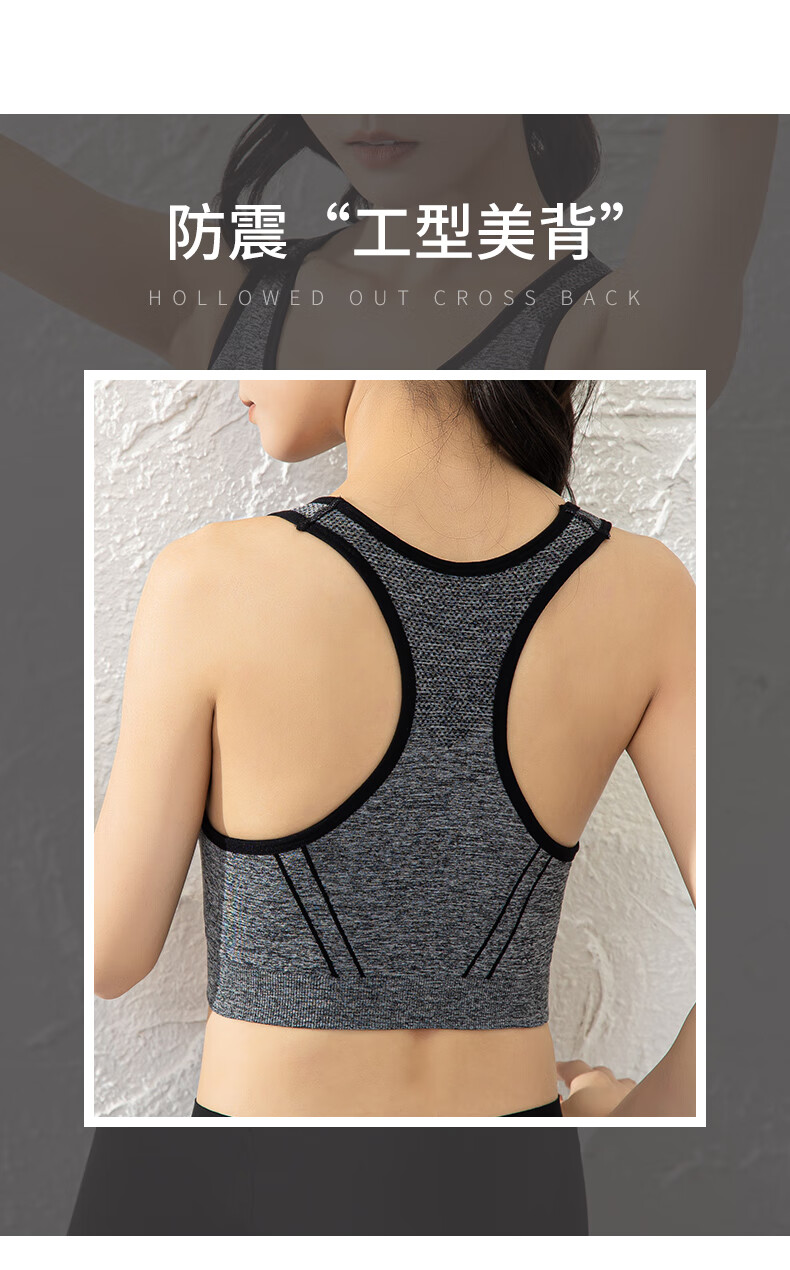 莫代尔运动内衣女夏天跑步防震防下垂高强度瑜伽美背心式文胸罩健身上衣 蓝色 S/M(90-130斤)