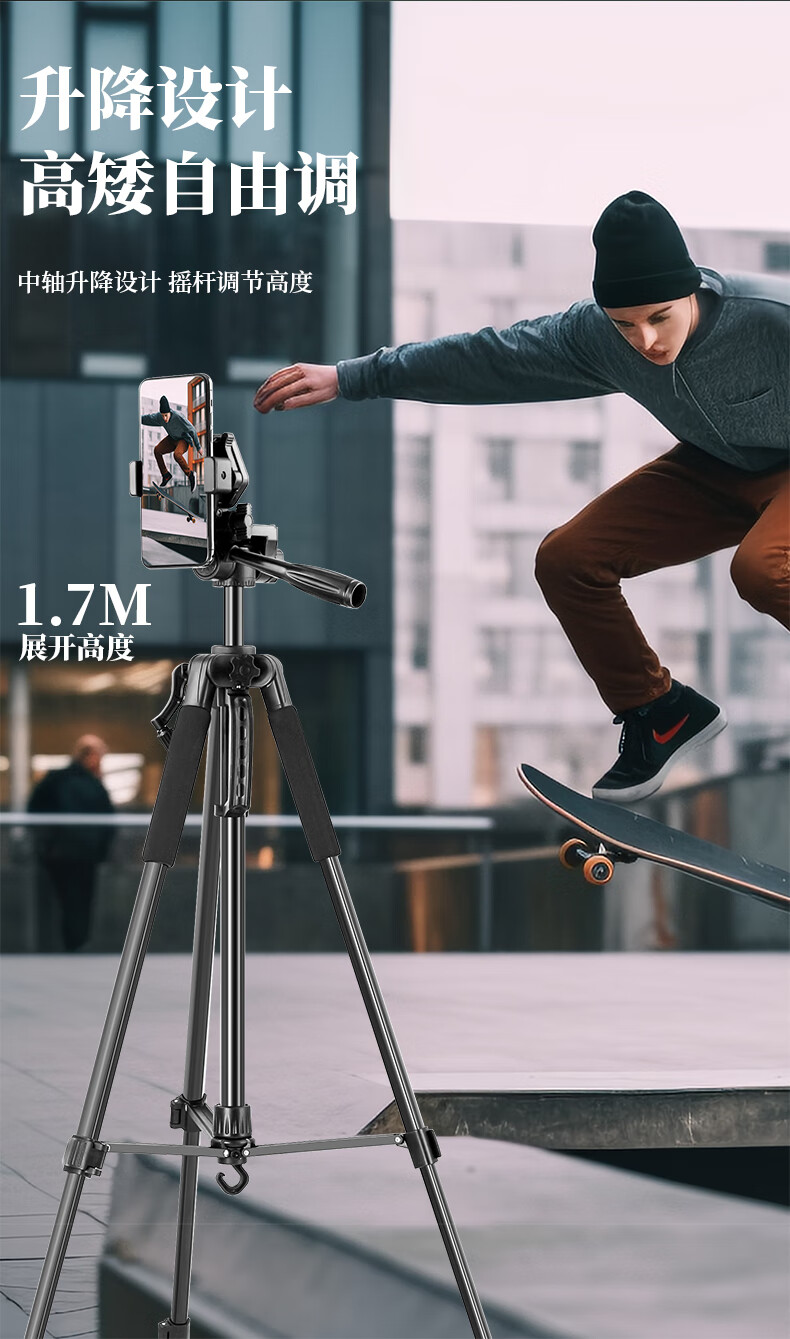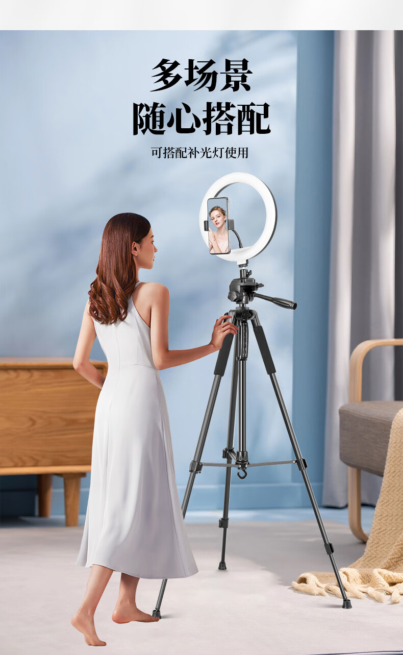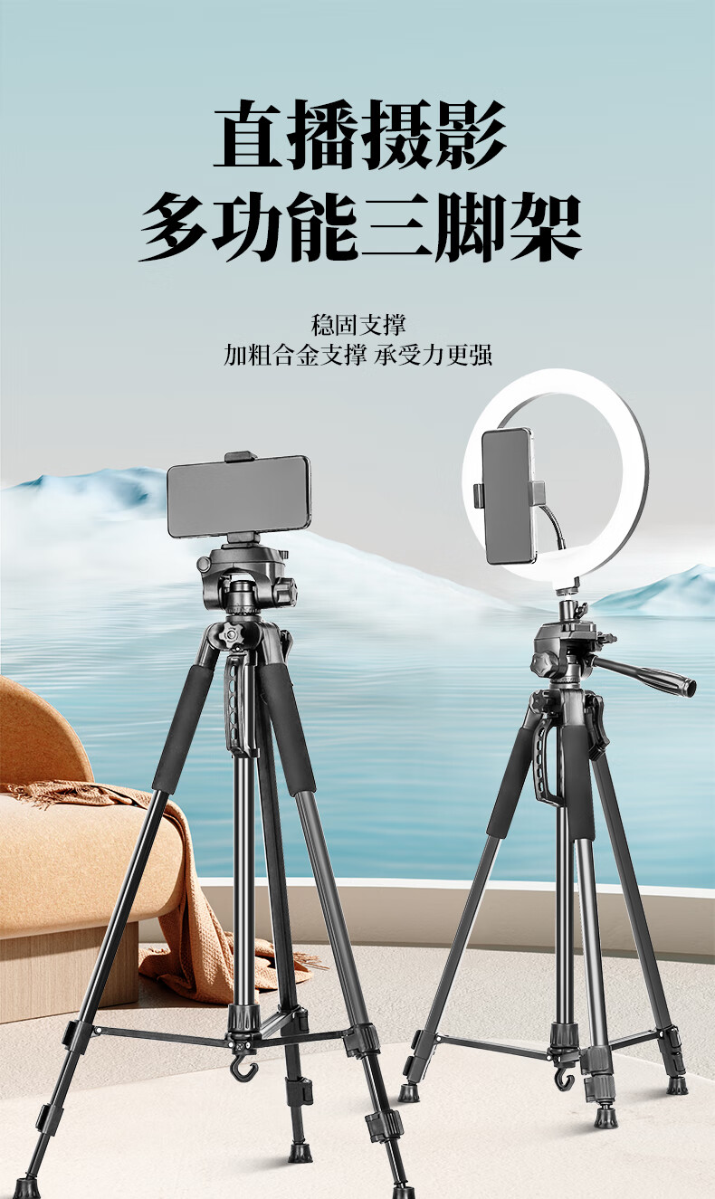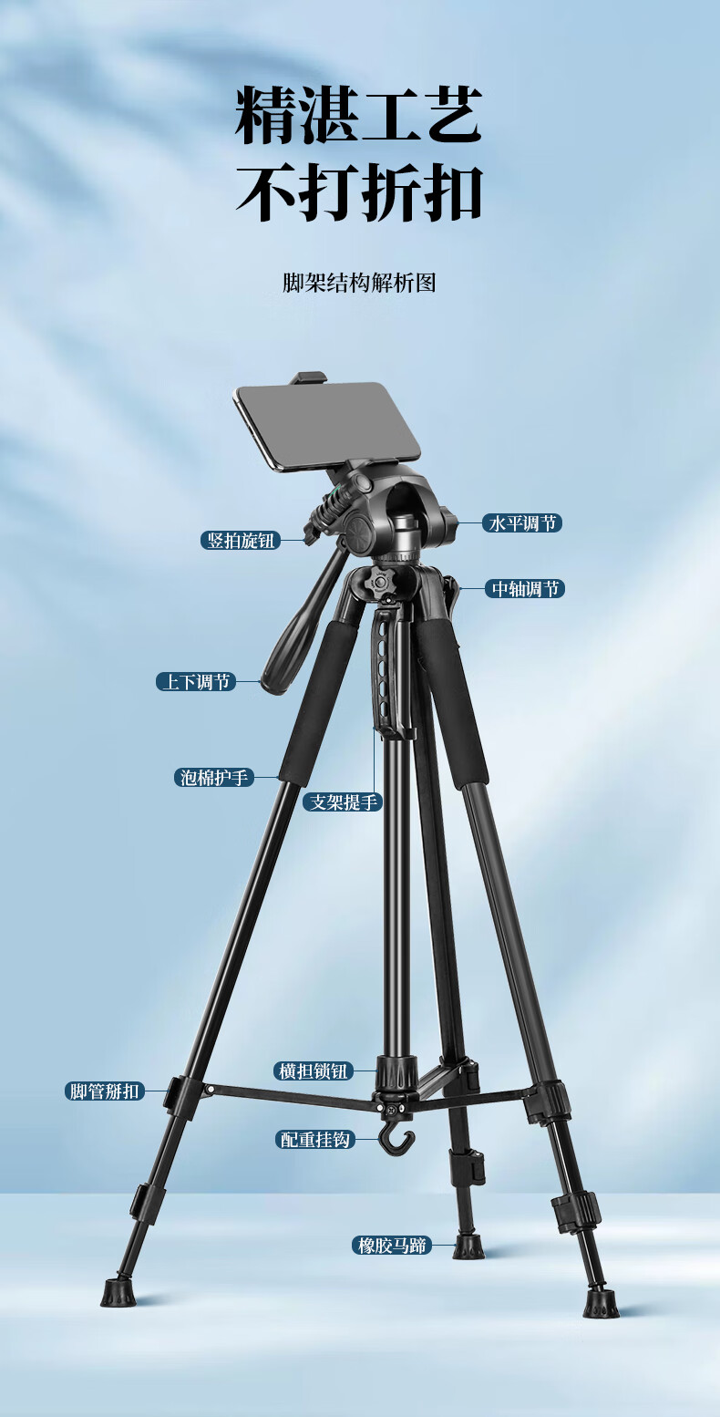 金蝌灵跃手机支架直播三脚架通用网红主播拍摄拍照自拍多功能落地式支撑架便携户外三角架网课短视频用 140cm升级款支架+手机夹
