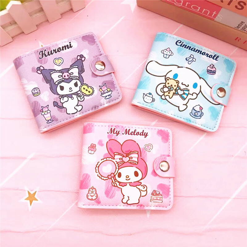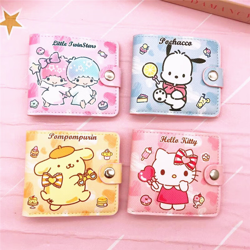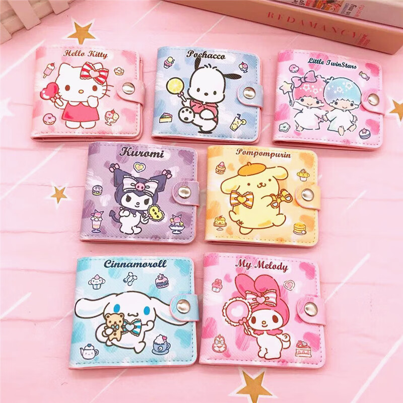 Tanbeiman Portefeuille pour Enfants Filles Dessin Animé Mignon Court Demi-plié Pu Souple Porte-Monnaie Étudiant Multifonction Porte-Monnaie Porte-Carte Rose KT Chat Portefeuille de Dessin animé pour Enfants