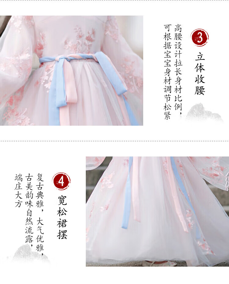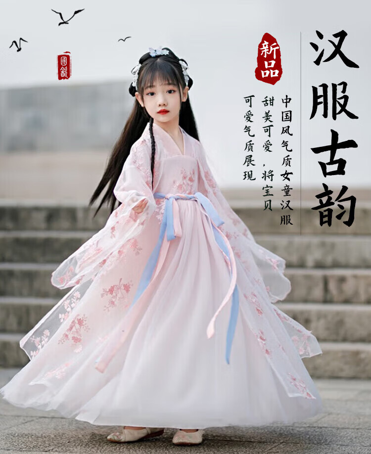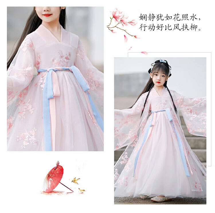 欧育儿童汉服女童秋季温柔仙连衣裙新款洋气国风女孩生日礼物演出服 粉色超仙刺绣连衣裙 常规 B1517 120 【建议身高110-120cm】
