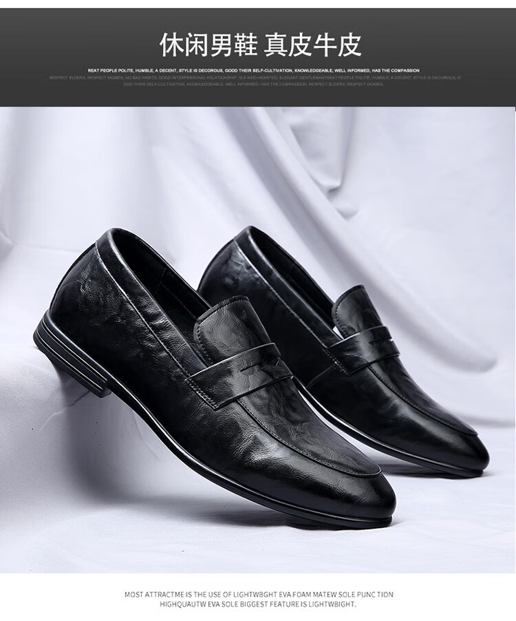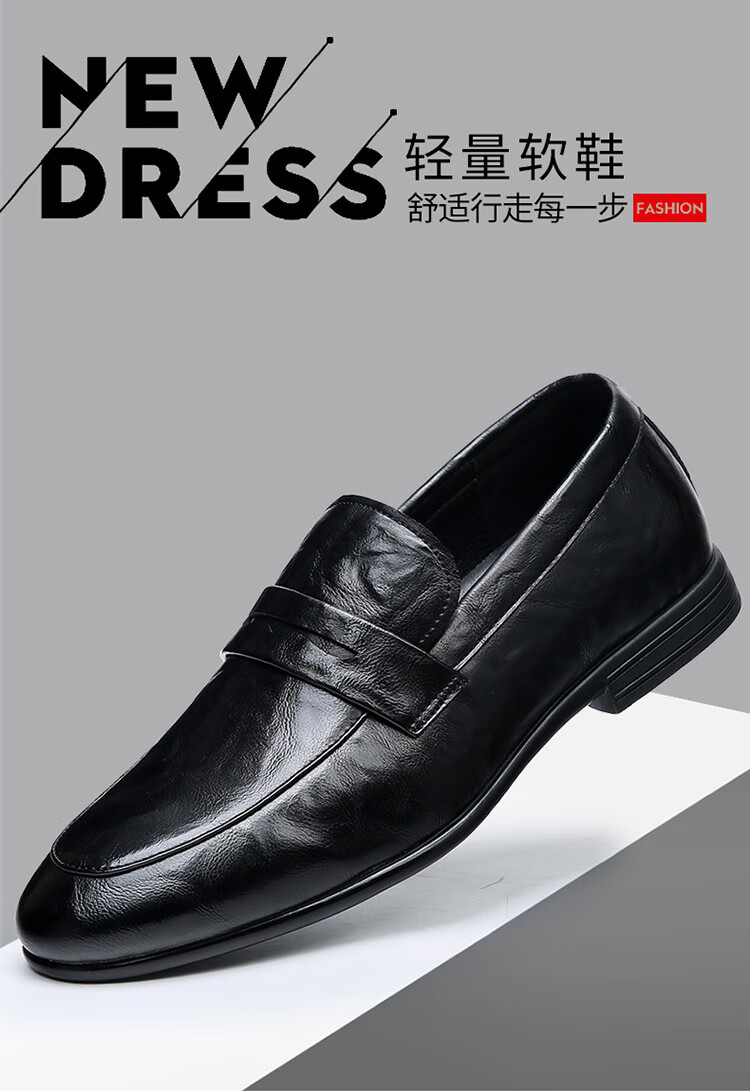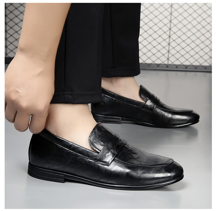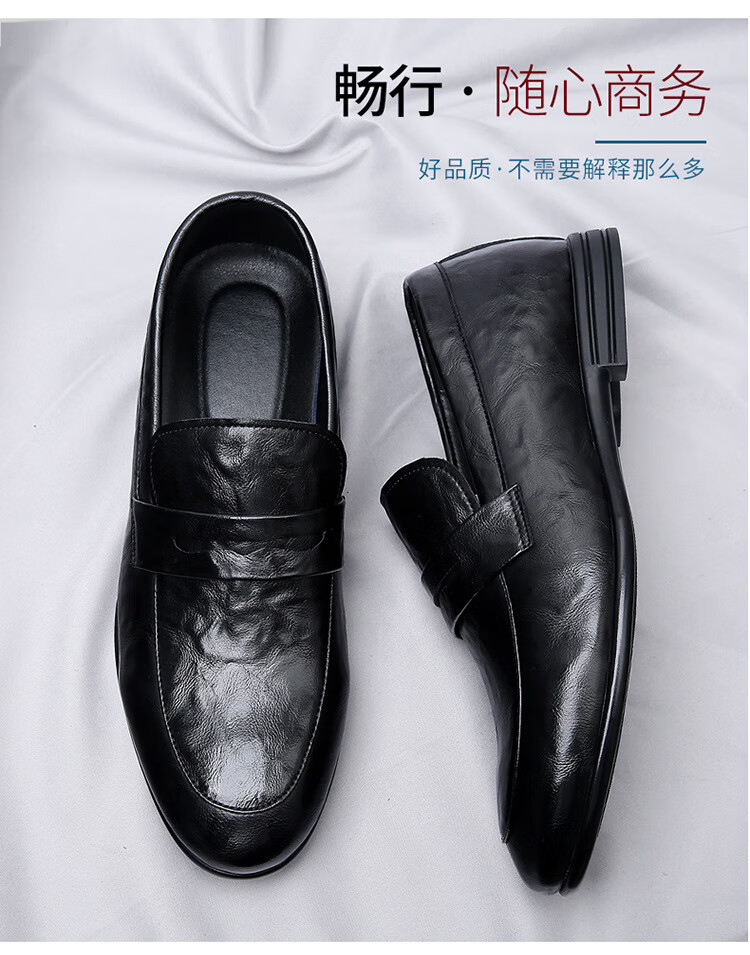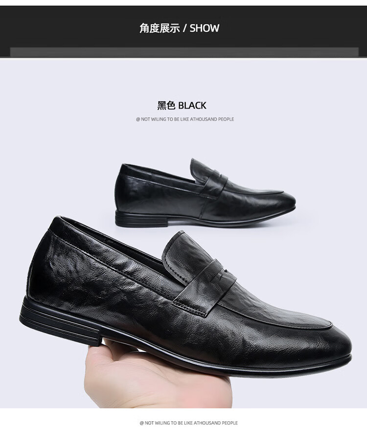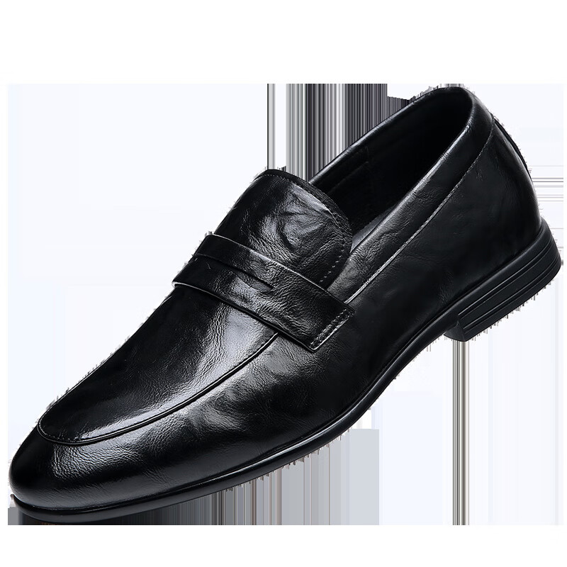 卡帝乐鳄鱼(CARTELO)豆豆鞋男真皮2025春夏新款透气英伦百搭懒人鞋黑色商务正装皮鞋男 华伦-6996黑色 43