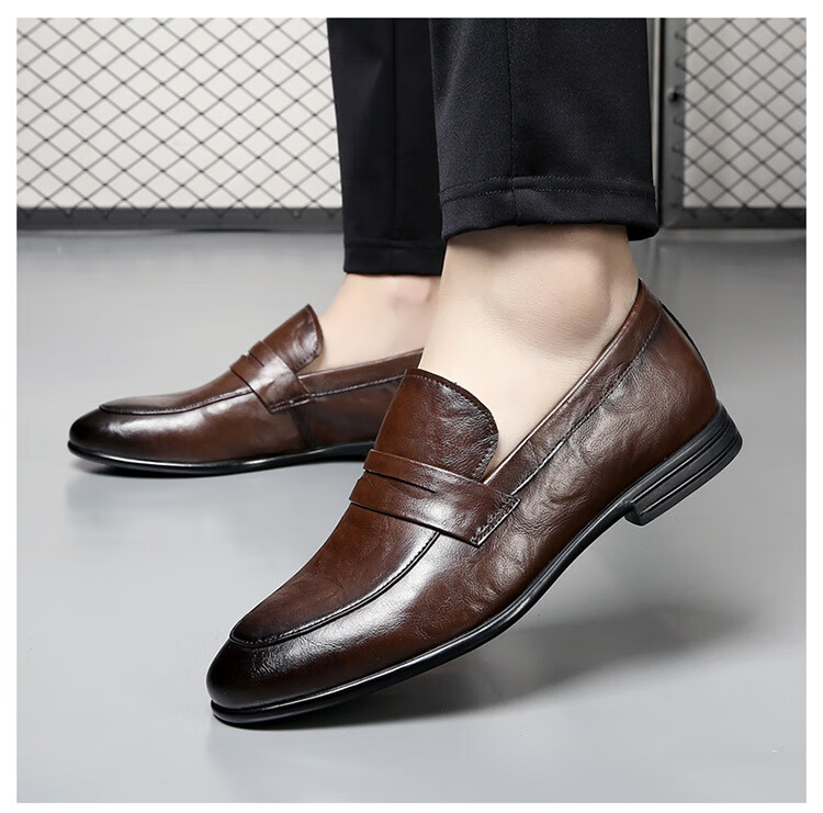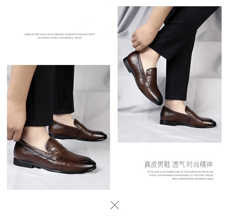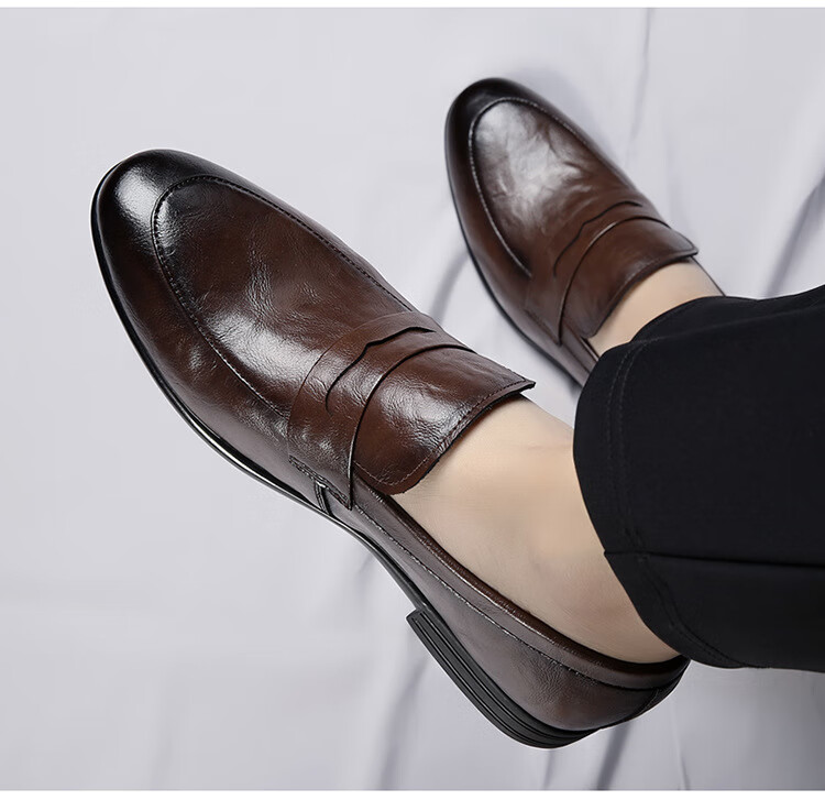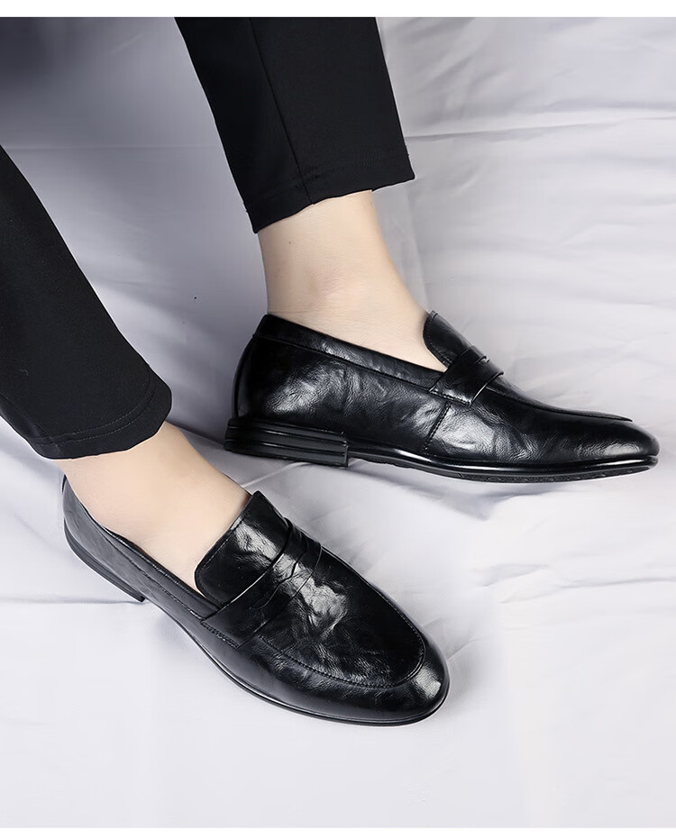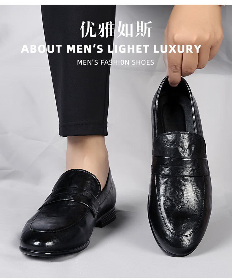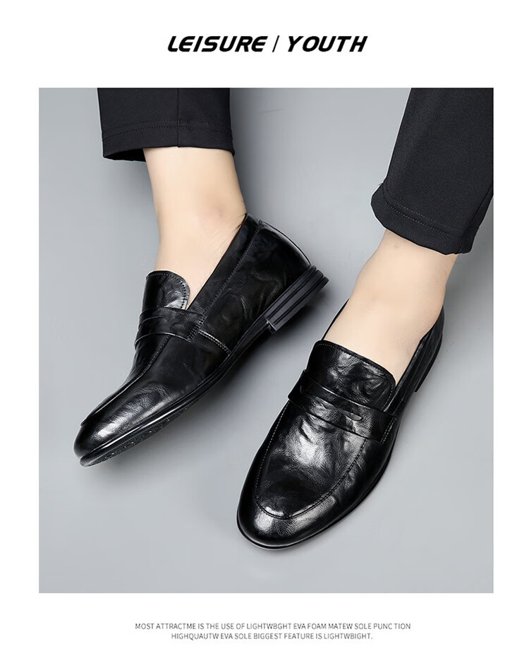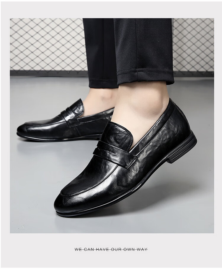 卡帝乐鳄鱼(CARTELO)豆豆鞋男真皮2025春夏新款透气英伦百搭懒人鞋黑色商务正装皮鞋男 华伦-6996黑色 43