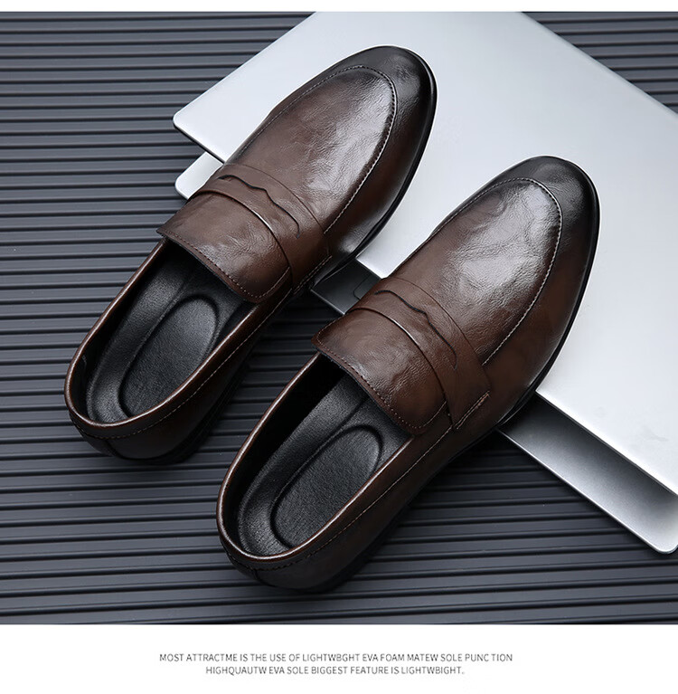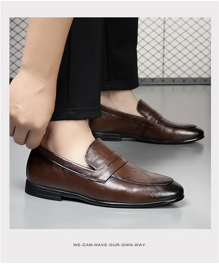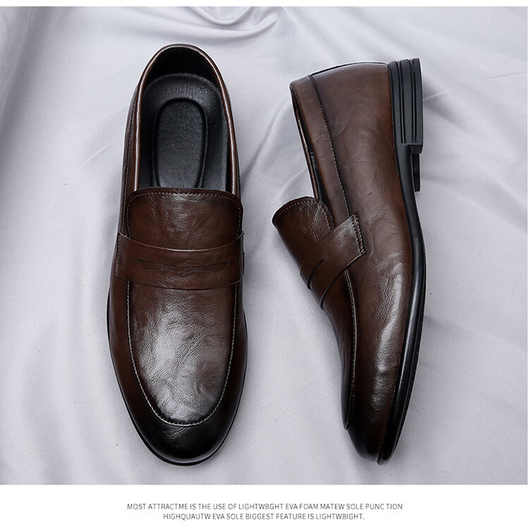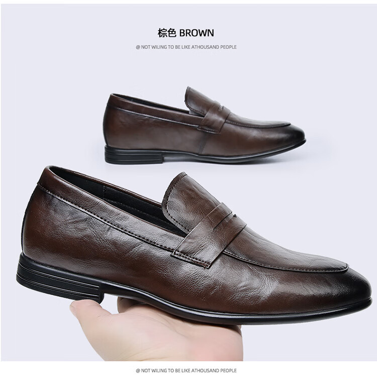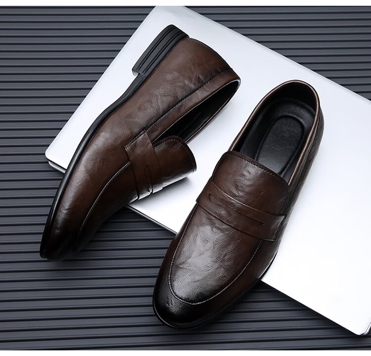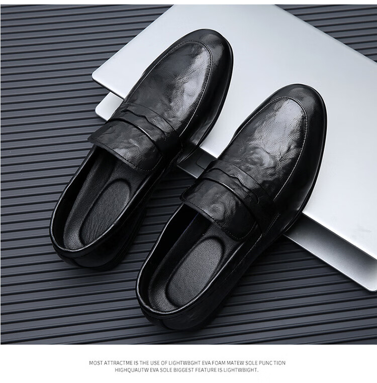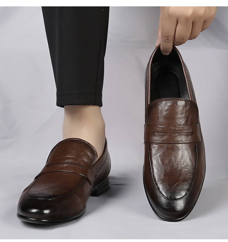 卡帝乐鳄鱼(CARTELO)豆豆鞋男真皮2025春夏新款透气英伦百搭懒人鞋黑色商务正装皮鞋男 华伦-6996黑色 43