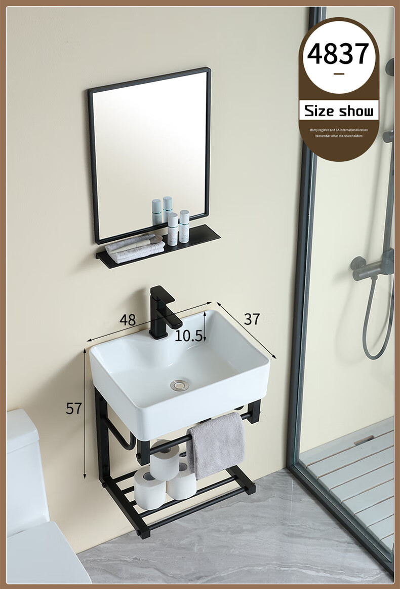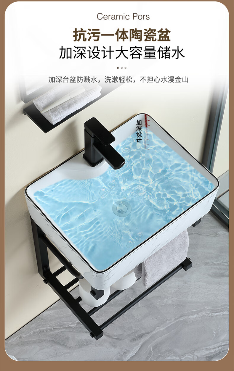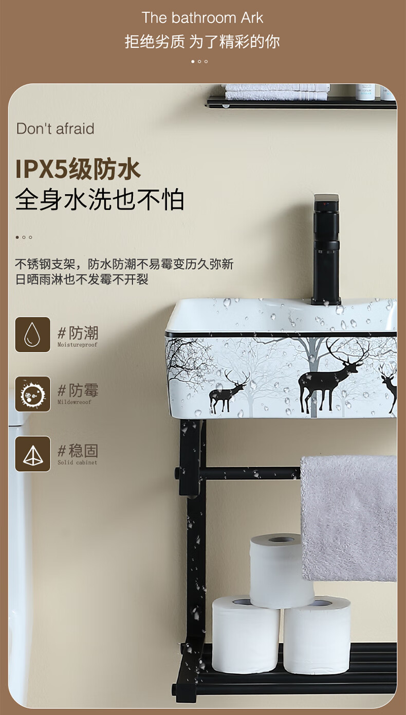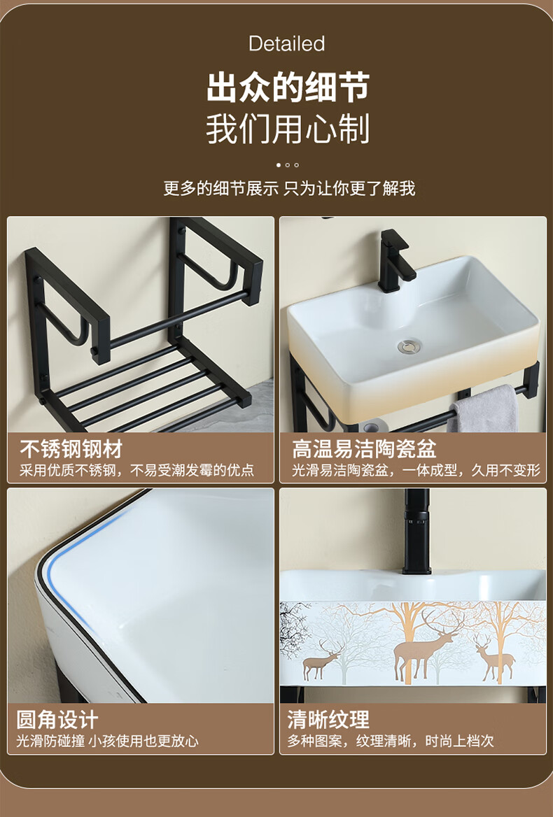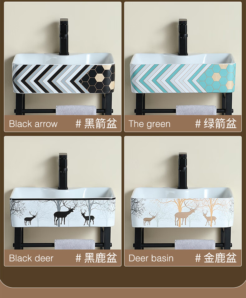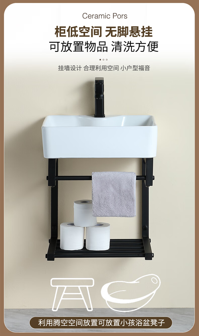 毅越挂墙式洗手盆简约陶瓷洗脸盆卫生间阳台支架挂盆家用面盆池洗漱台 D款+4837黑鹿盆(送龙头)